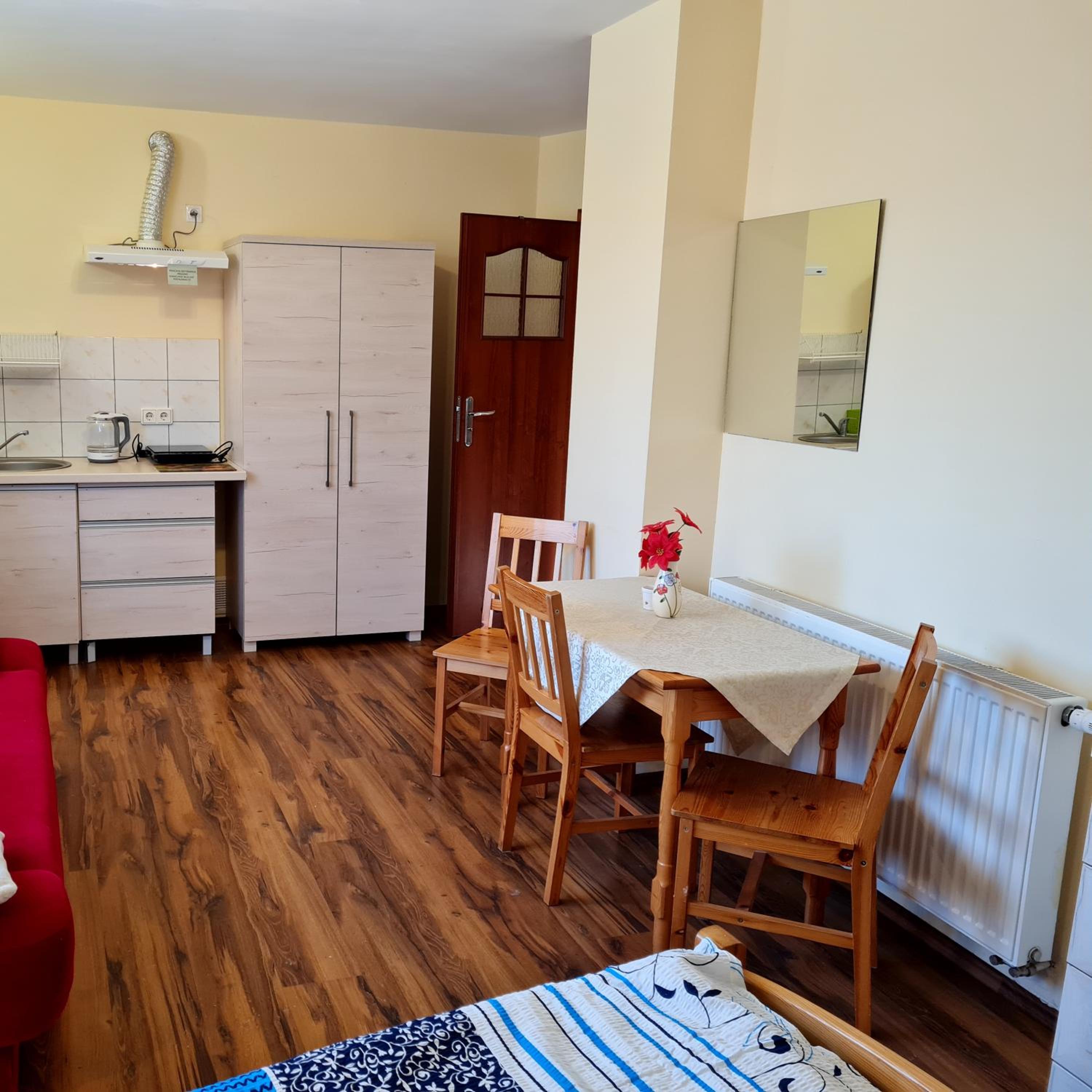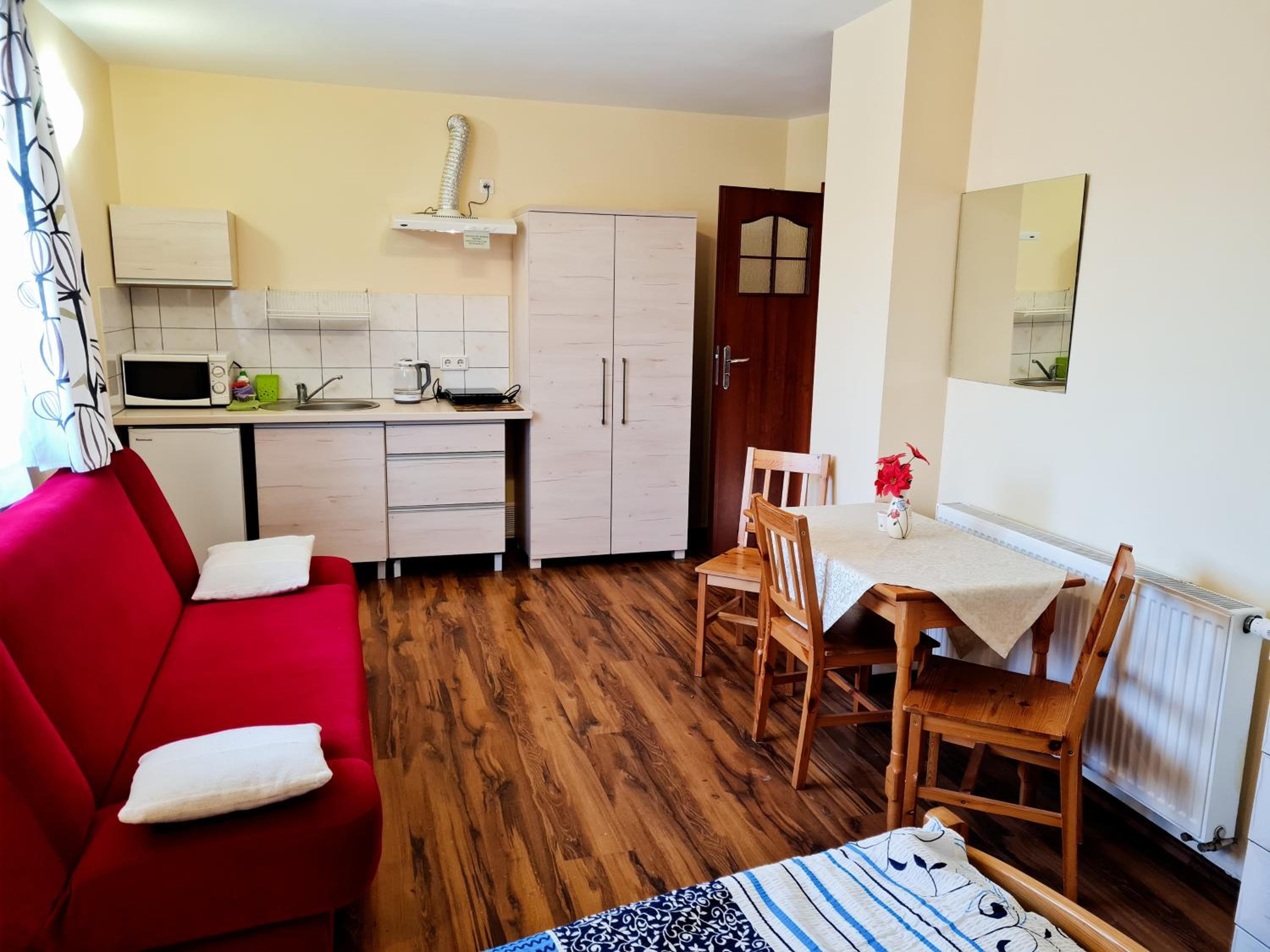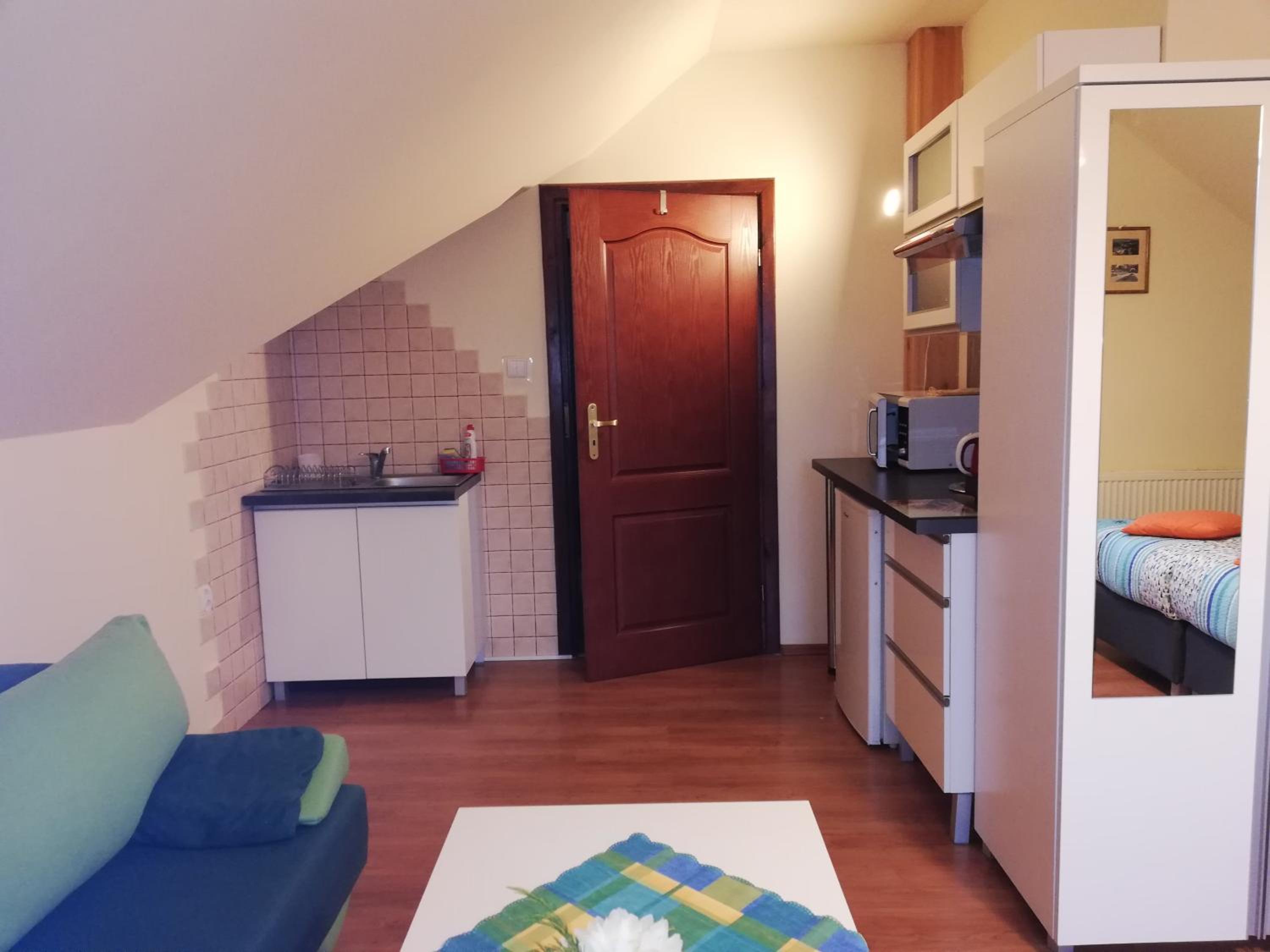 Dobra lokalizacja chwila i już byliśmy w centrum, czysto o wygodnie, bardzo miły i pomocny Pan właściciel. Miła atmosfera. Kuchnia w wyposażona jak trzeba.