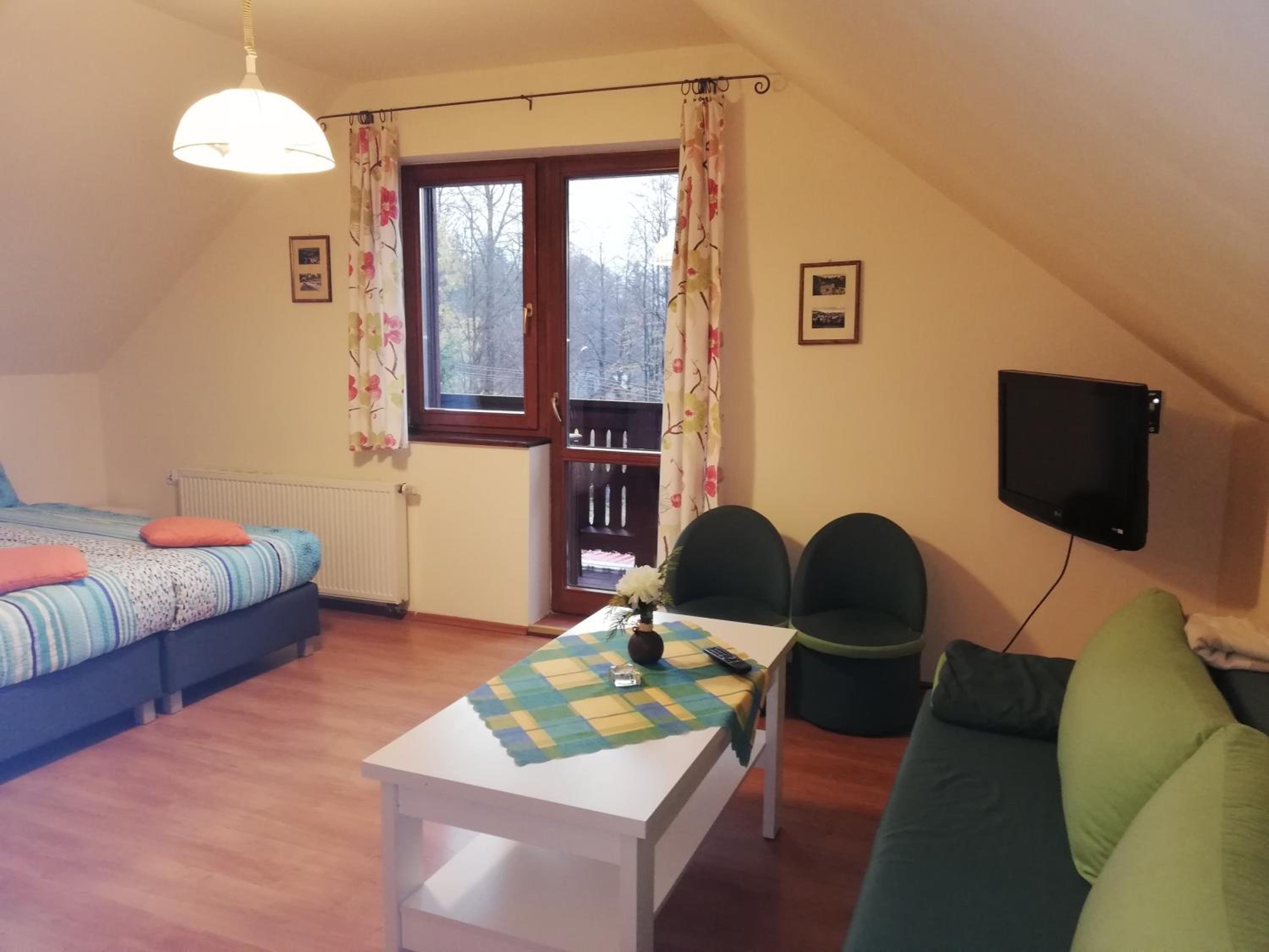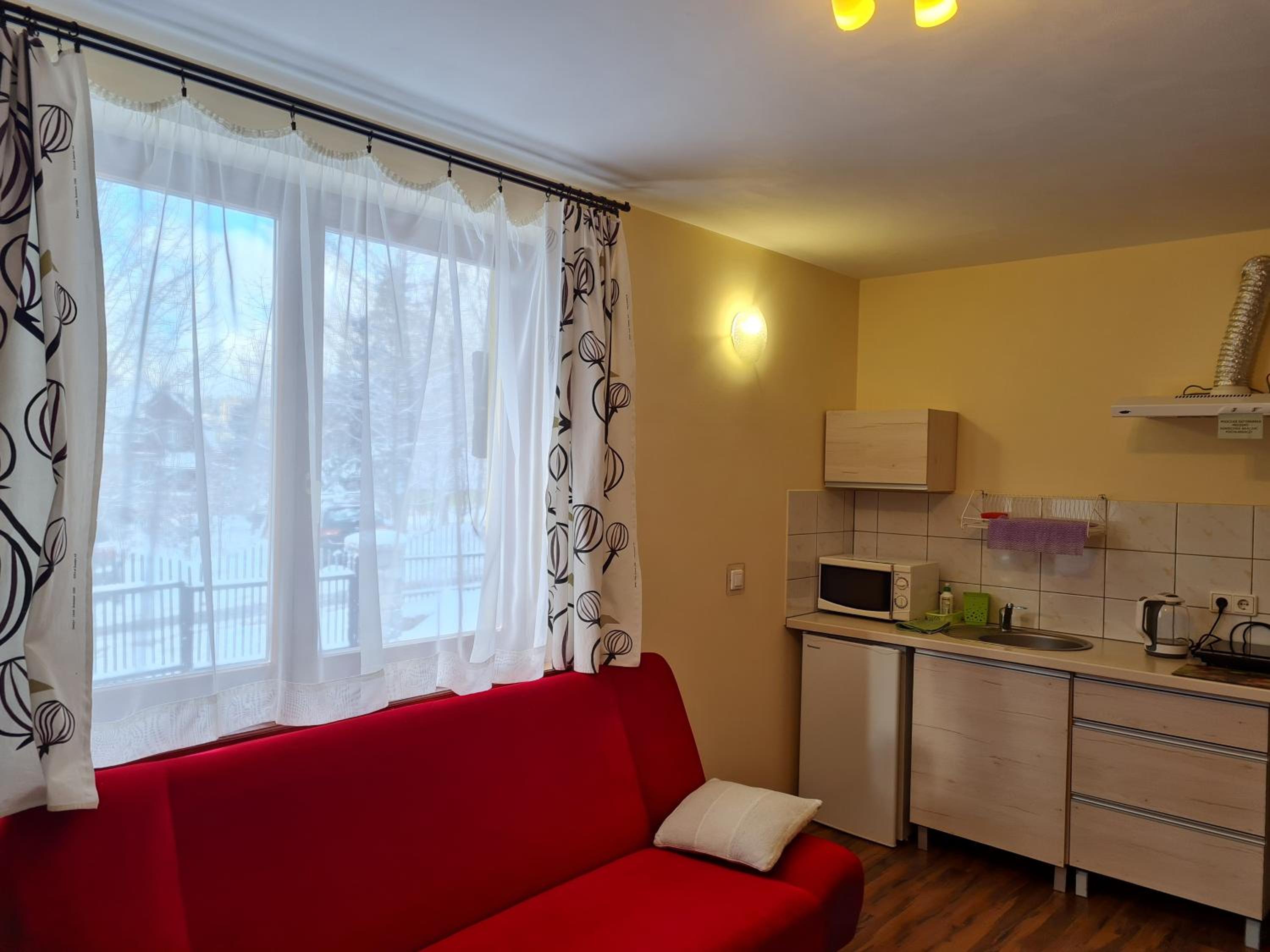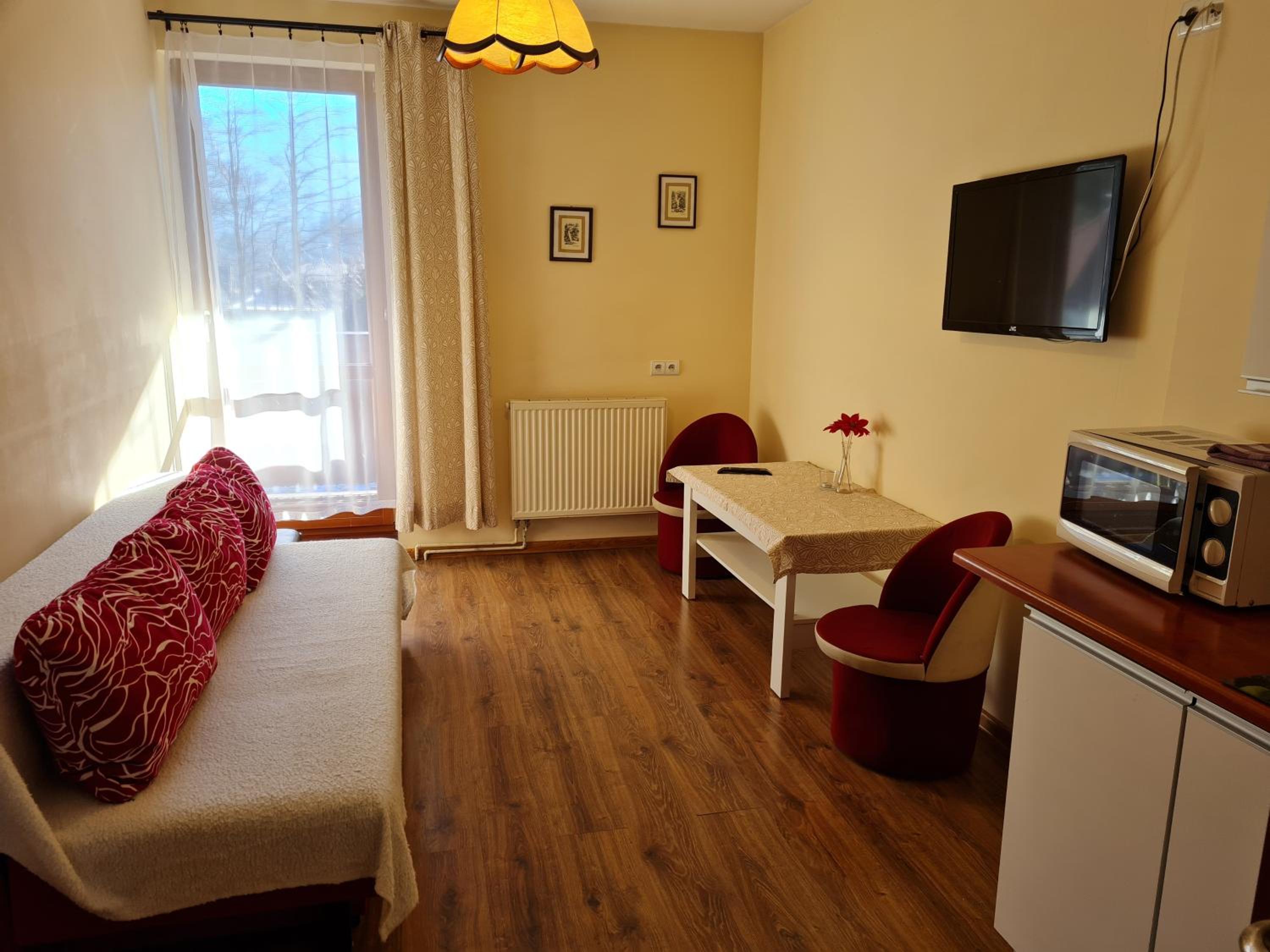 Wszystko super :). Gospodarze mili i pomocni :). Chętnie doradzają co zwiedzić. Studio z aneksem super wygodne i dobrze wyposażone, czyściutko. Piękny widok z balkonu na góry. Świetna lokalizacja, 10 minut do centrum piechotą, gdzie jest dużo restauracji, Netto, Lewiatan. Około 12 minut do PKS, skąd biura turystyczne wyjeżdzają na jednodniowe wycieczki. Bardzo polecam wycieczkę do Pragi i Drezna :). Podejście do obiektu też bardzo proste, co ma duże znaczenie dla osób o mniejszej kondycji. Jest dostępne miejsce parkingowe oraz różne ulotki i mapy turystyczne. Na kolejny pobyt w Szklarskiej Porębie na pewno wybiorę te miejsce :).
