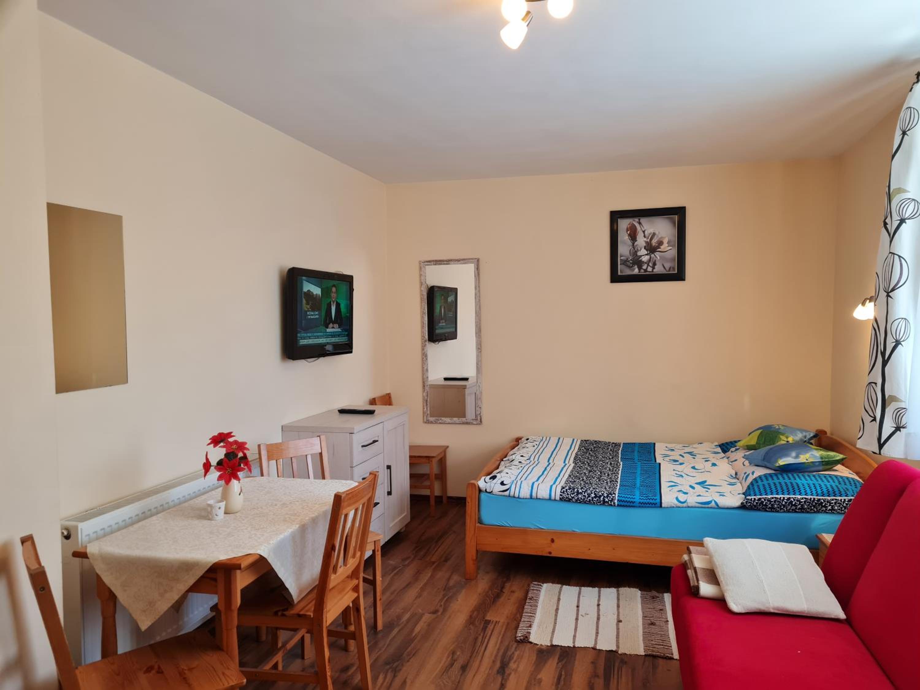 Super lokalizacja, właściciele wciąż na miejscu, bardzo pomocni i uprzejmi. W pokoju jest wszystko czego potrzeba. Mega Plus za akceptację zwierzątek 🐱