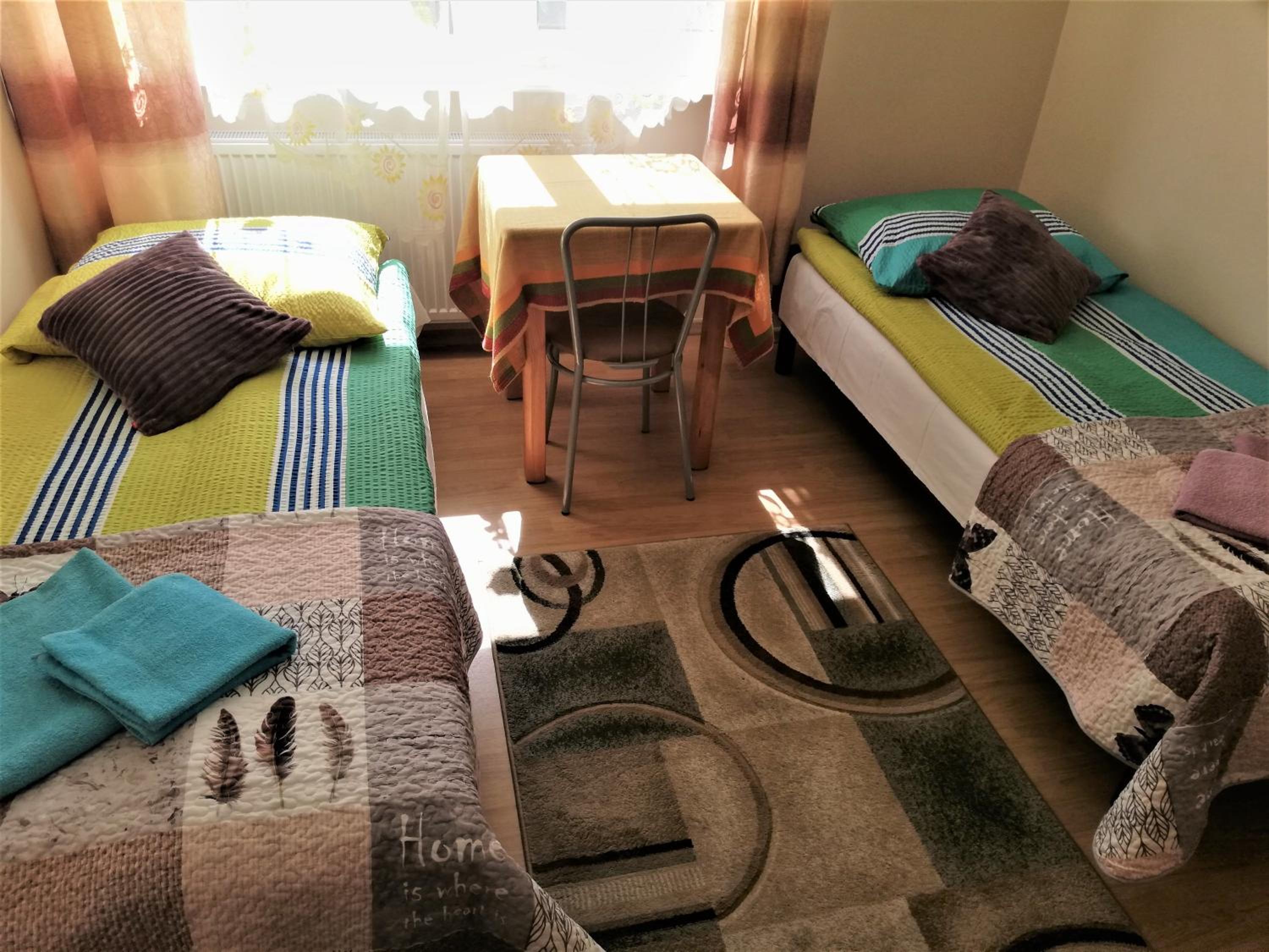 Czysta łazienka, kuchnia wyposażona w najpotrzebniejsze rzeczy. Czysto w pokojach. Świetna lokalizacja, szczególnie jesli chcesz zwiedzać Niemcy.