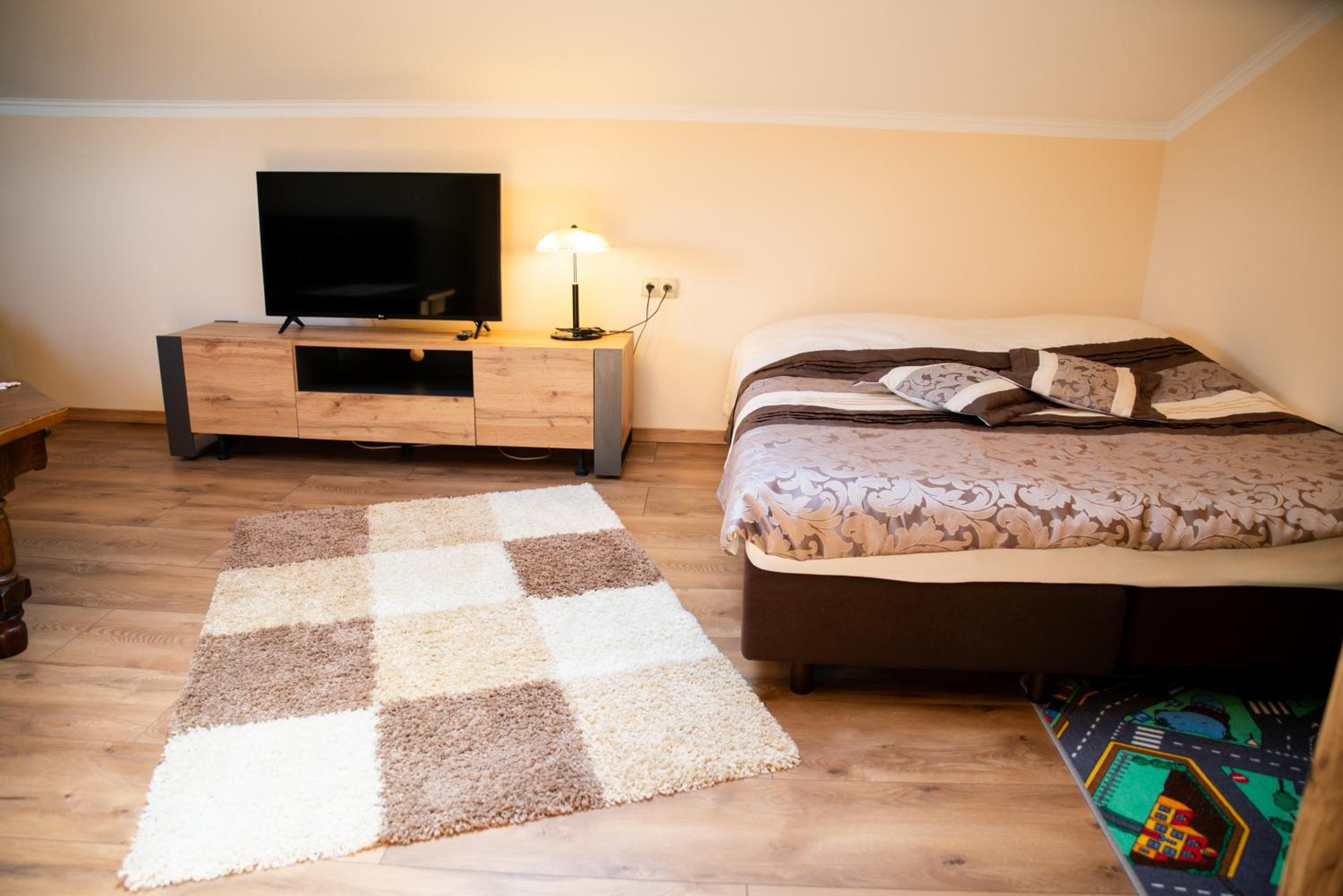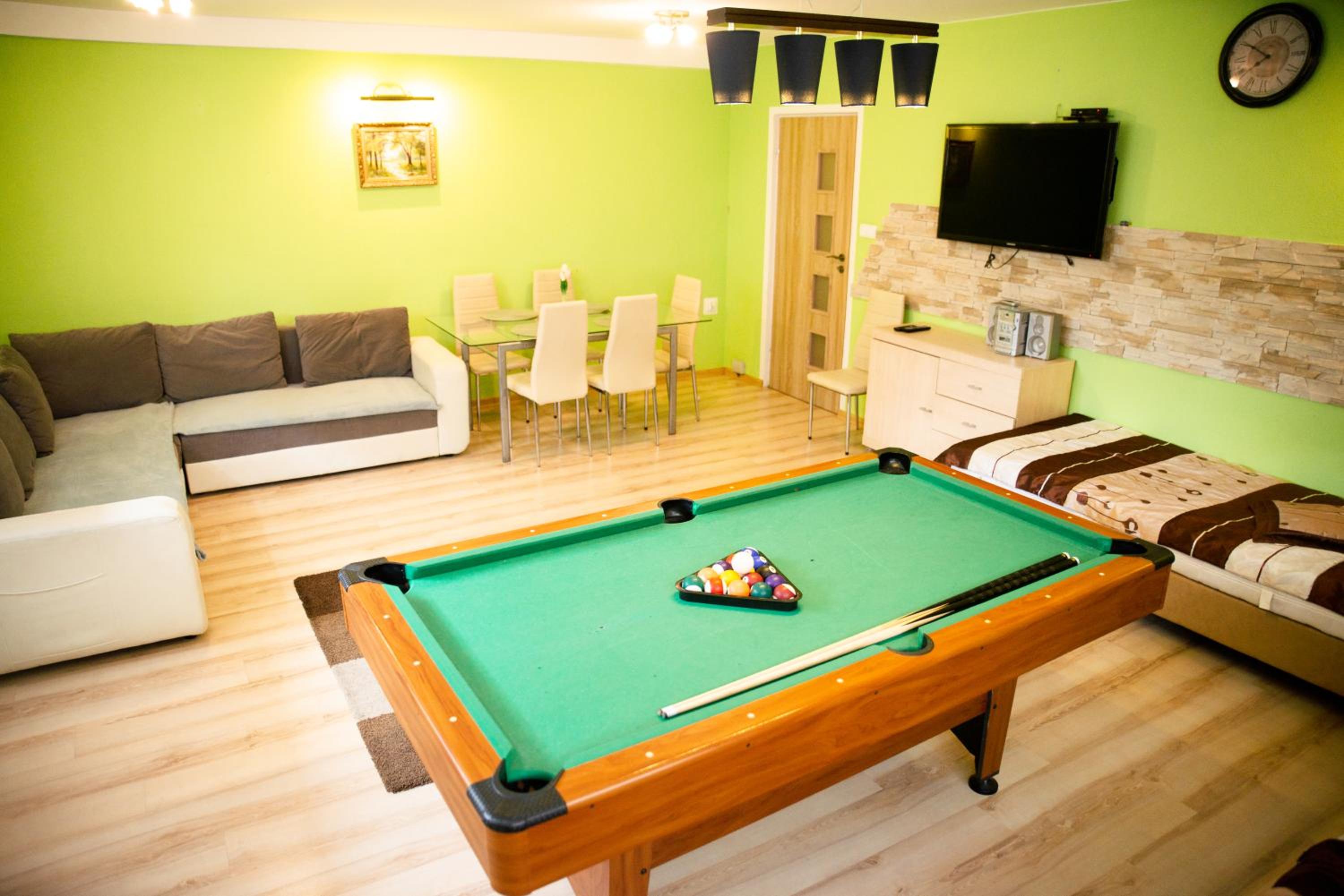 We hebben 4 nachten verbleven in het appartement met pooltafel. Onze dochter van 2 vond dit veruit het leukste appartement van onze rondreis, met name door het vele speelgoed binnen en buiten. De bedden lagen prima en het was er heerlijk rustig. ‘s nachts hoor je er echt niets. Het appartement was echt groot voor met zijn drietjes, wat super fijn was. Tot slot was de gastvrouw Iwona super aardig. Er was een probleem met de kwaliteit van het drinkwater in Wladyslawowo en omstreken en zij had ons perfect op de hoogte gehouden en voldoende water uit flessen geregeld. Bedankt voor de fijne vakantiedagen!