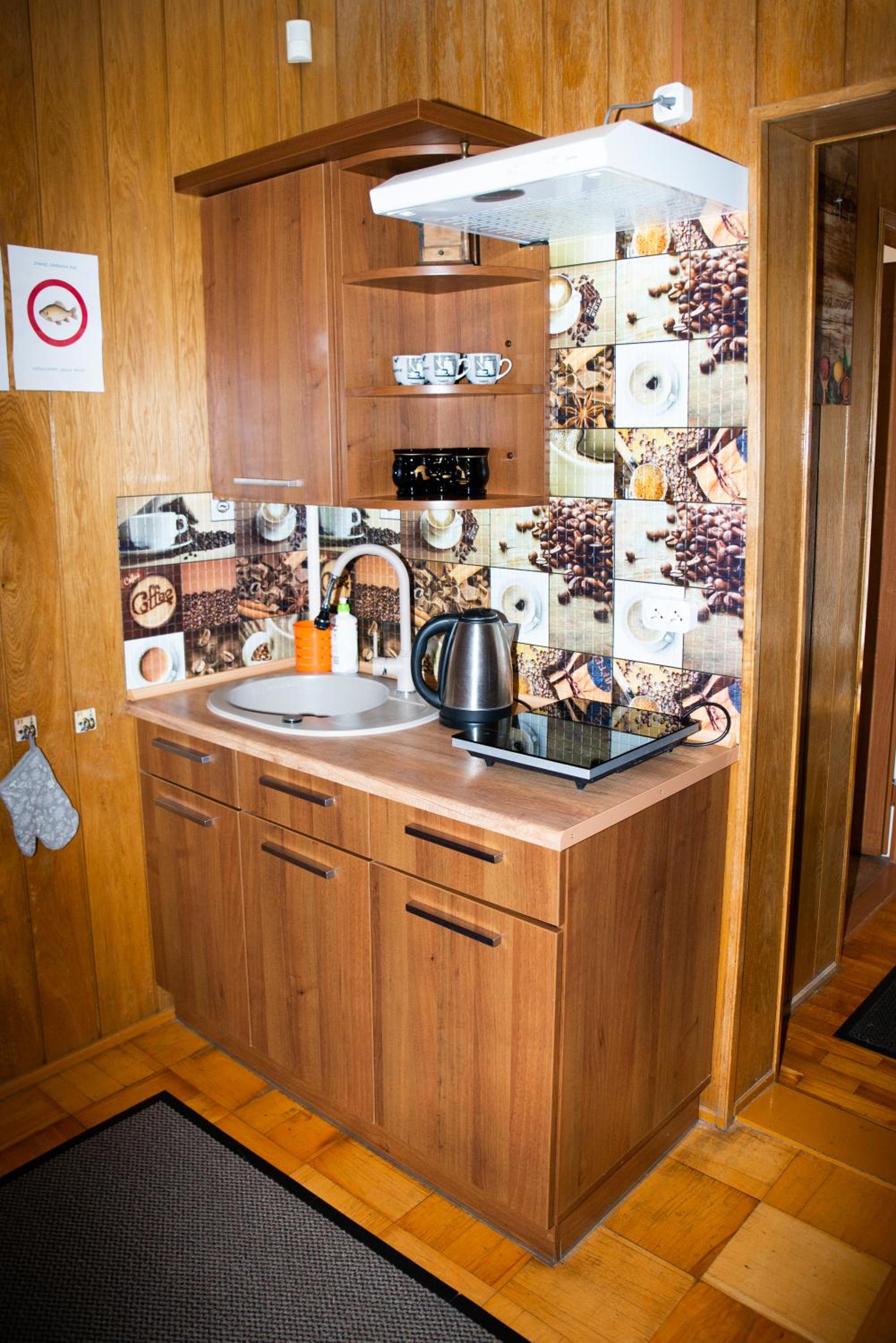 Kitchen is very small, and I would personally have changed/replaced the floor in kitchen area to make this apartment even greater:)