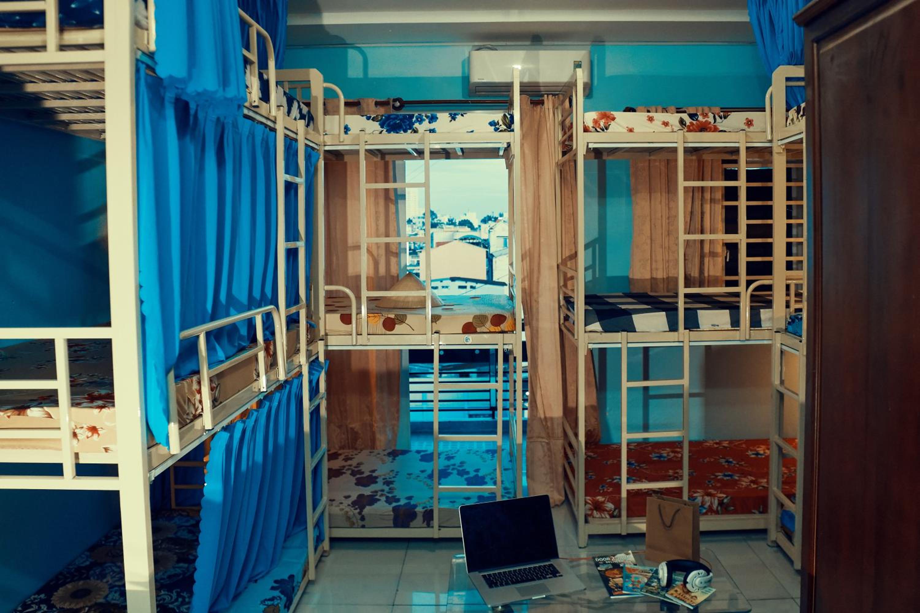 4th floor room, no elevator- though it’s not a deal breaker. the bunks are in units of 3 and are all 1 frame, so all the movement of others above/below can be felt. 1 bathroom in a dorm