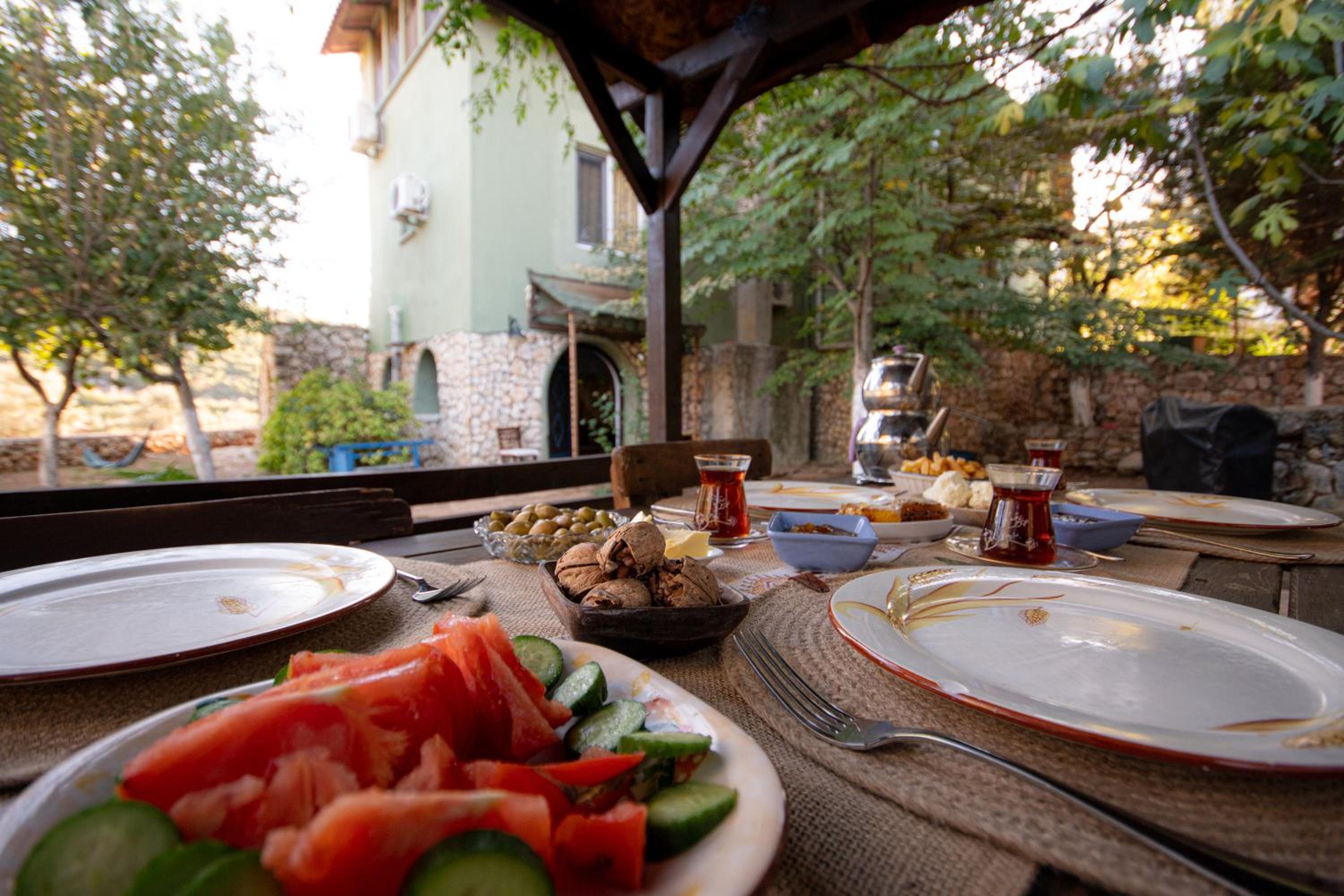Давеча, путешествуя на авто по Турции и имея целью посетить небезинтересный античный город Термессос, мы остановились в этом чудном месте.. Отель представляет из себя трехэтажный дом в горах, в котором на первом этаже живут хозяева, второй и третий сдается в аренду.. В помещениях виллы попытались создать аутентичную средиземноморскую атмосферу, пусть и не всегда удачно, но по крайней мере это не отталкивает. Немного тесновато в спальной комнате, но кровати хорошие, белье свежее и отнюдь не это самое главное.. Какой там чистый воздух и ночное по настоящему звездное небо! За одно это можно было бы простить всё, но, по большому счету, прощать то и нечего..