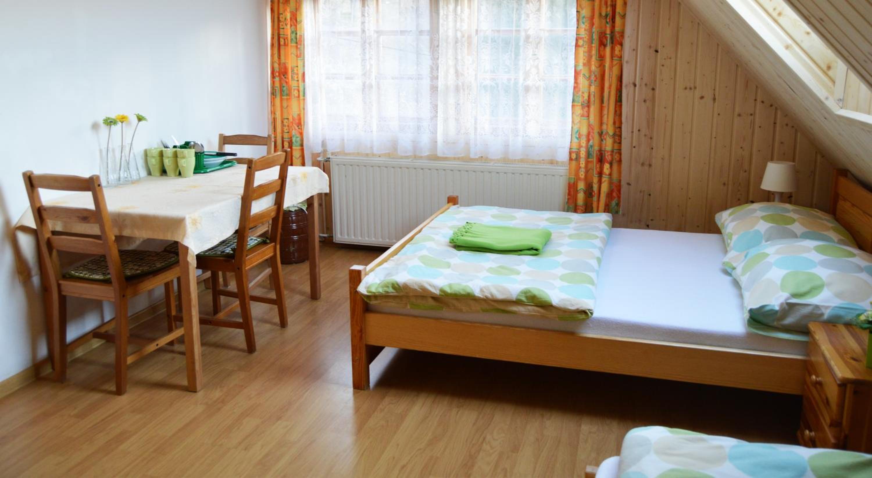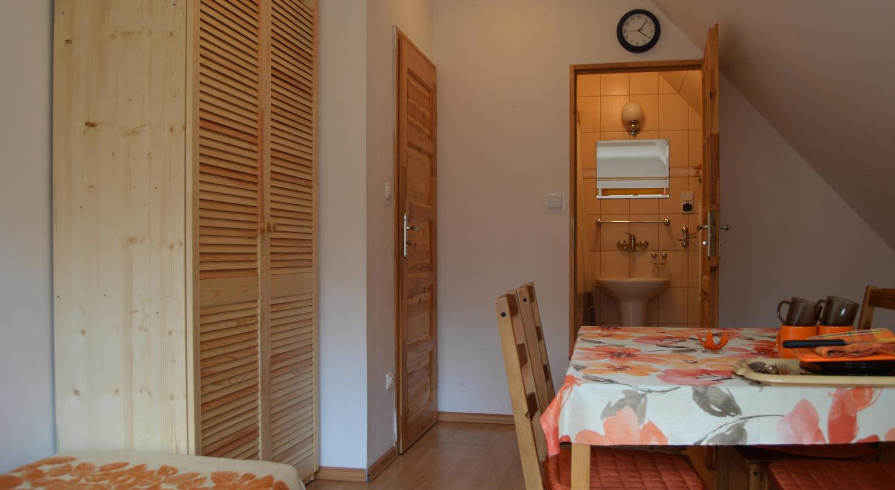 Located in a serene part of Szklarska Poręba, Pokoje Gościnne Arnika Górska offers charming rooms with a homely feel. The fair-colored rooms with wooden furniture provide a comfortable stay, equipped with essential amenities including a dining table and kitchenware.