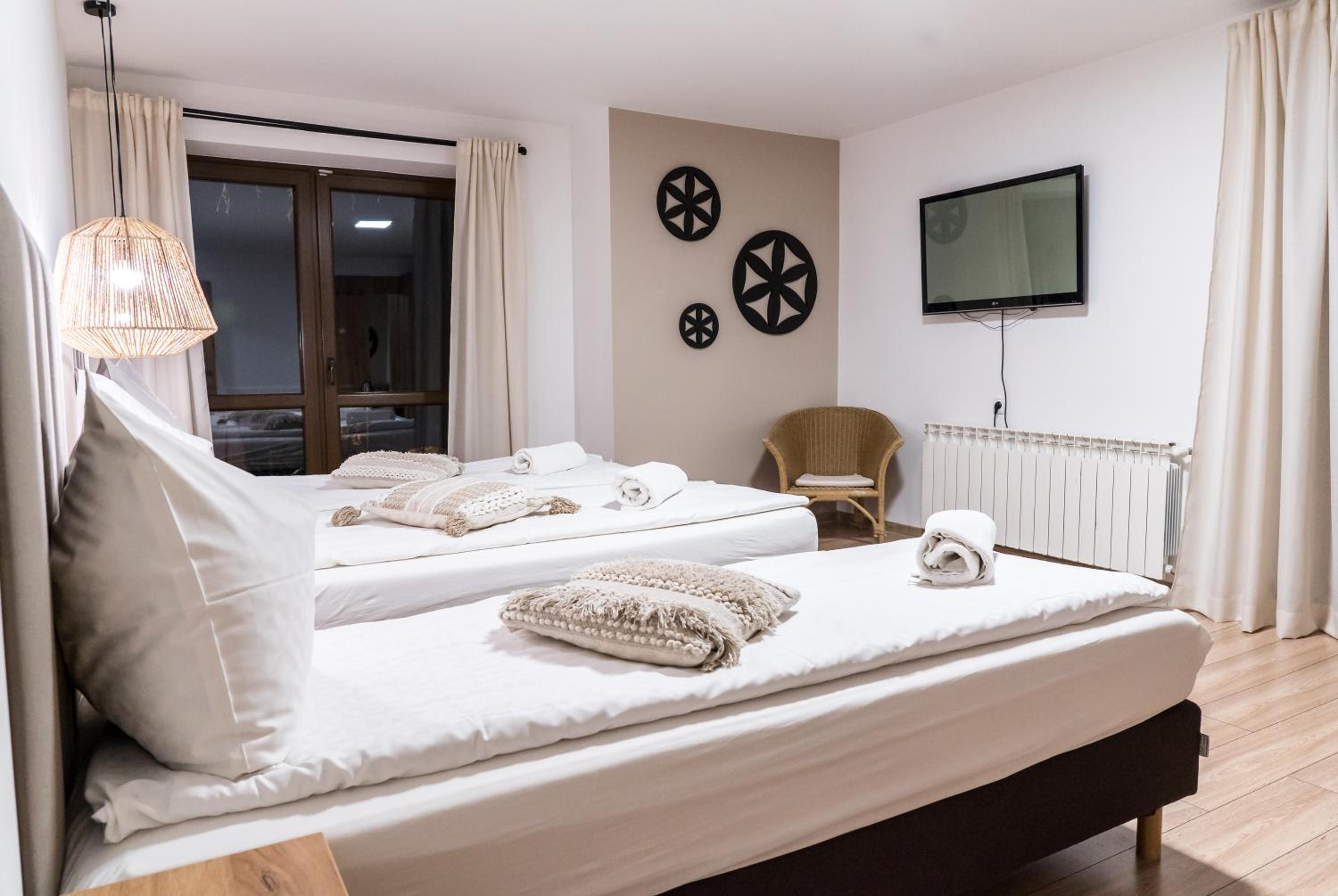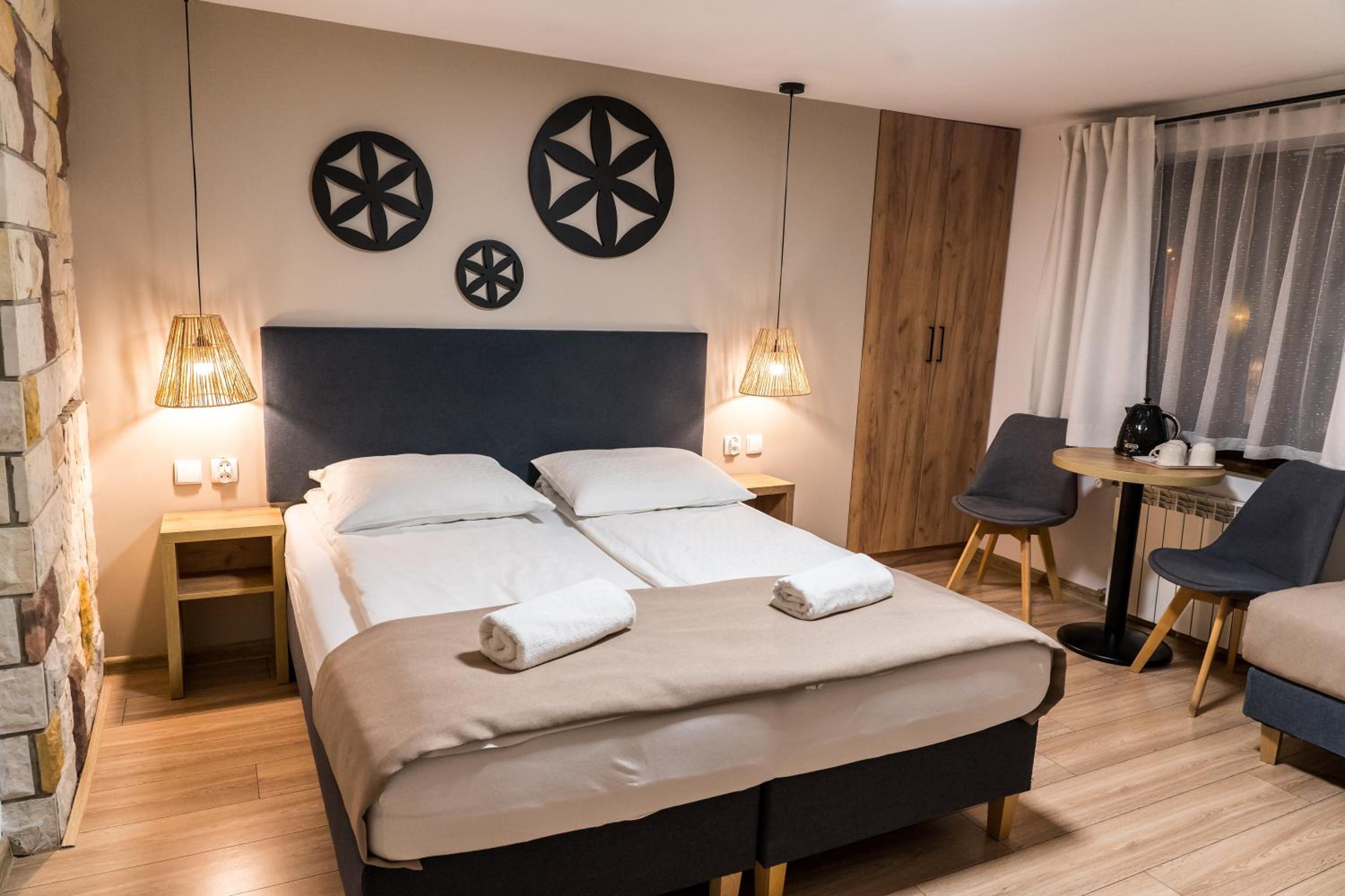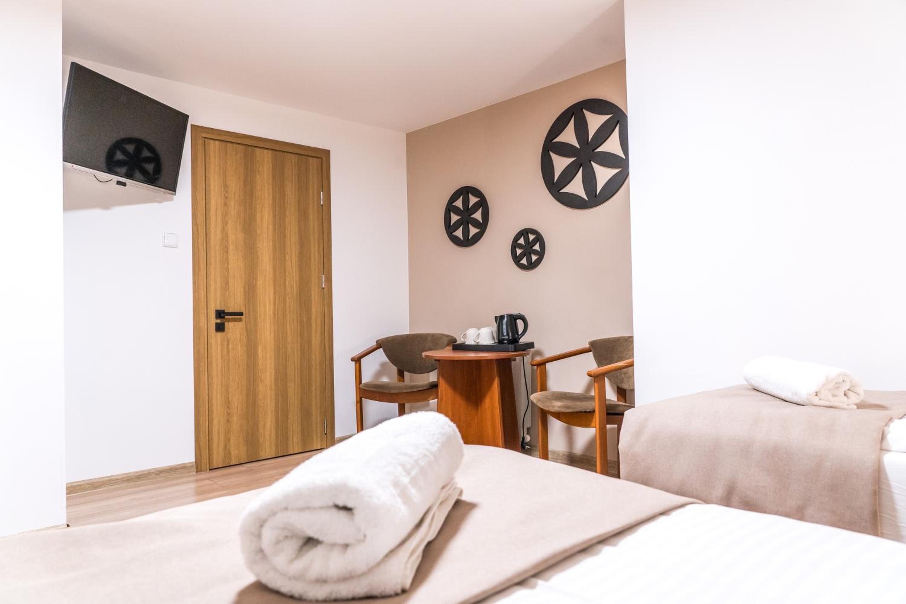Przesympatyczni ludzie.....właściciele, kucharki,sprzątaczki.....fajna atmosfera, pokoje malutkie ale super czyste, sauna cudowna, bilard, bania...śniadania nie do opisania,przepyszne...... Godne polecenia 😘