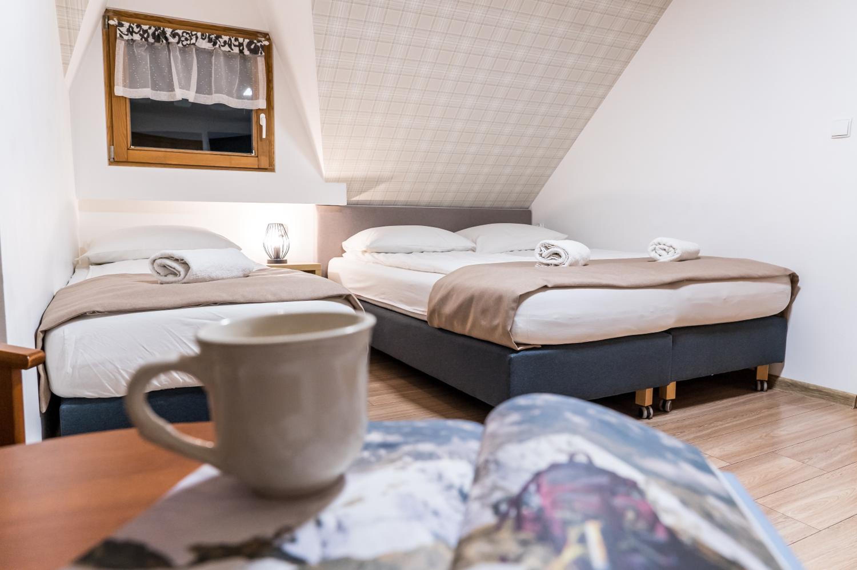 Pobyt w tym domu wczasowym był prawdziwą przyjemnością. Miejsce bardzo zadbane, czyste i komfortowe, idealne na wypoczynek. Blisko stoku, można wybrać się na spacer, a dla bardziej leniwych złapać darmowego ski-busa odjeżdżającego zaraz obok. Na szczególne wyróżnienie zasługują jednak właściciele – niezwykle mili, pomocni i serdeczni ludzie, którzy dbają o gości i tworzą wspaniałą, rodzinną atmosferę. Zawsze uśmiechnięci, chętni do pomocy i gotowi doradzić, dzięki czemu czułyśmy się tu naprawdę mile widziane. Ruska bania - bajka dla lubiących wygrzać się w gorącej wodzie, ale dostępna jest również sauna. W wolnej chwili można zagrać w bilard. Na dużego plusa zasługuje również śniadanie, pyszne i mega duży wybór! Zdecydowanie polecam i z przyjemnością wrócimy ponownie!