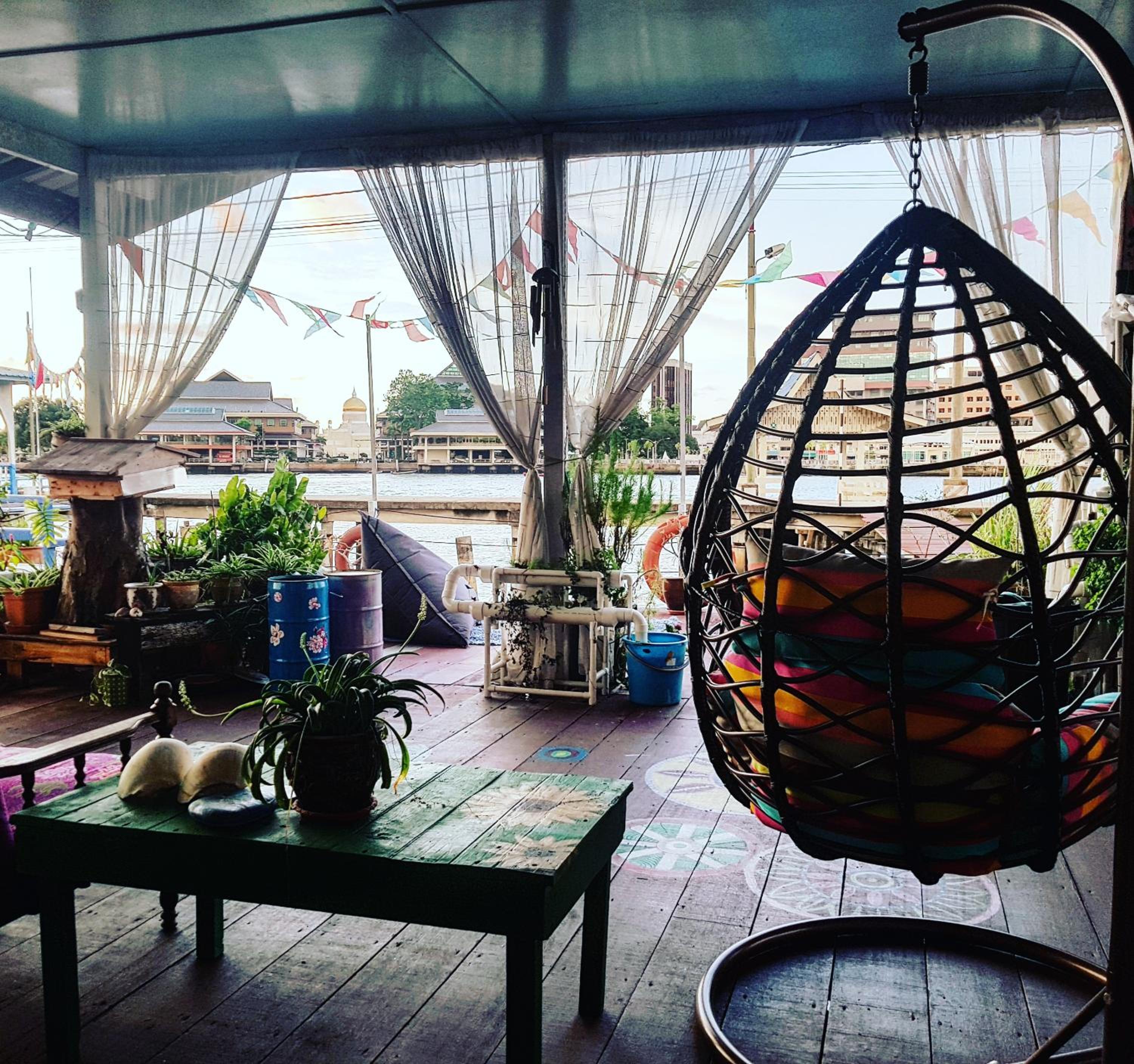 Kem’s place is the coziest most beautiful place to be and chill. She made that appealing and welcoming home stay out of the grandfathers house and is now hosting few lucky travellers to Brunei. She’ll teach and tell you about Brunei and give you the feeling of being at home far away from home. Additionally you’ll be staying in the “Floating city”, what couldn’t be any cooler, hanging on a terrace on pillowy armchairs with a view on BSB and the most important mosque and beautiful sunsets.