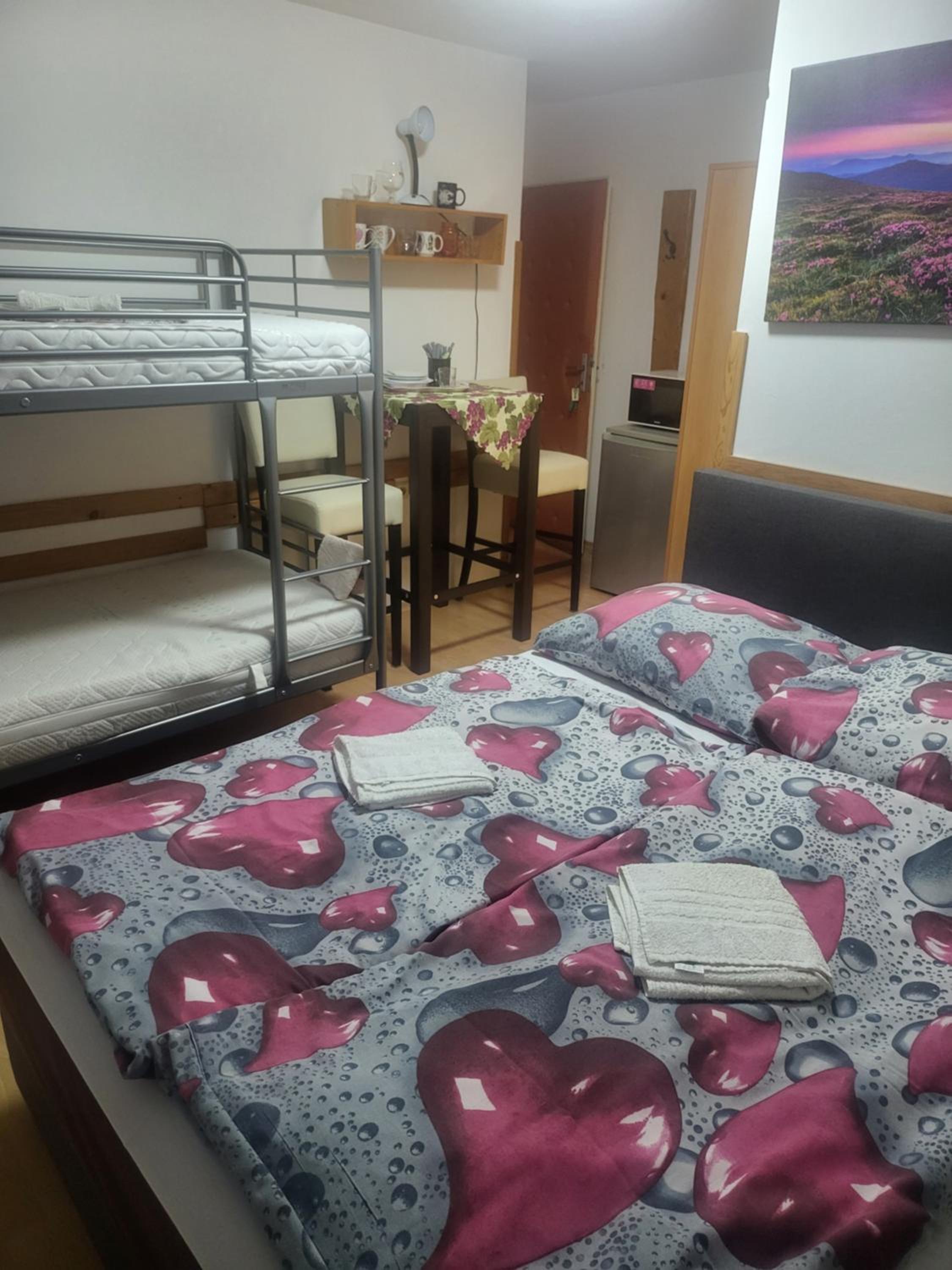 Apartmán prostorný,, čistý,, dostatečne vybaveny, velmi pěkný pristup ubytujiciho, klidná oblast, blízko ski busu. Doporučujeme!