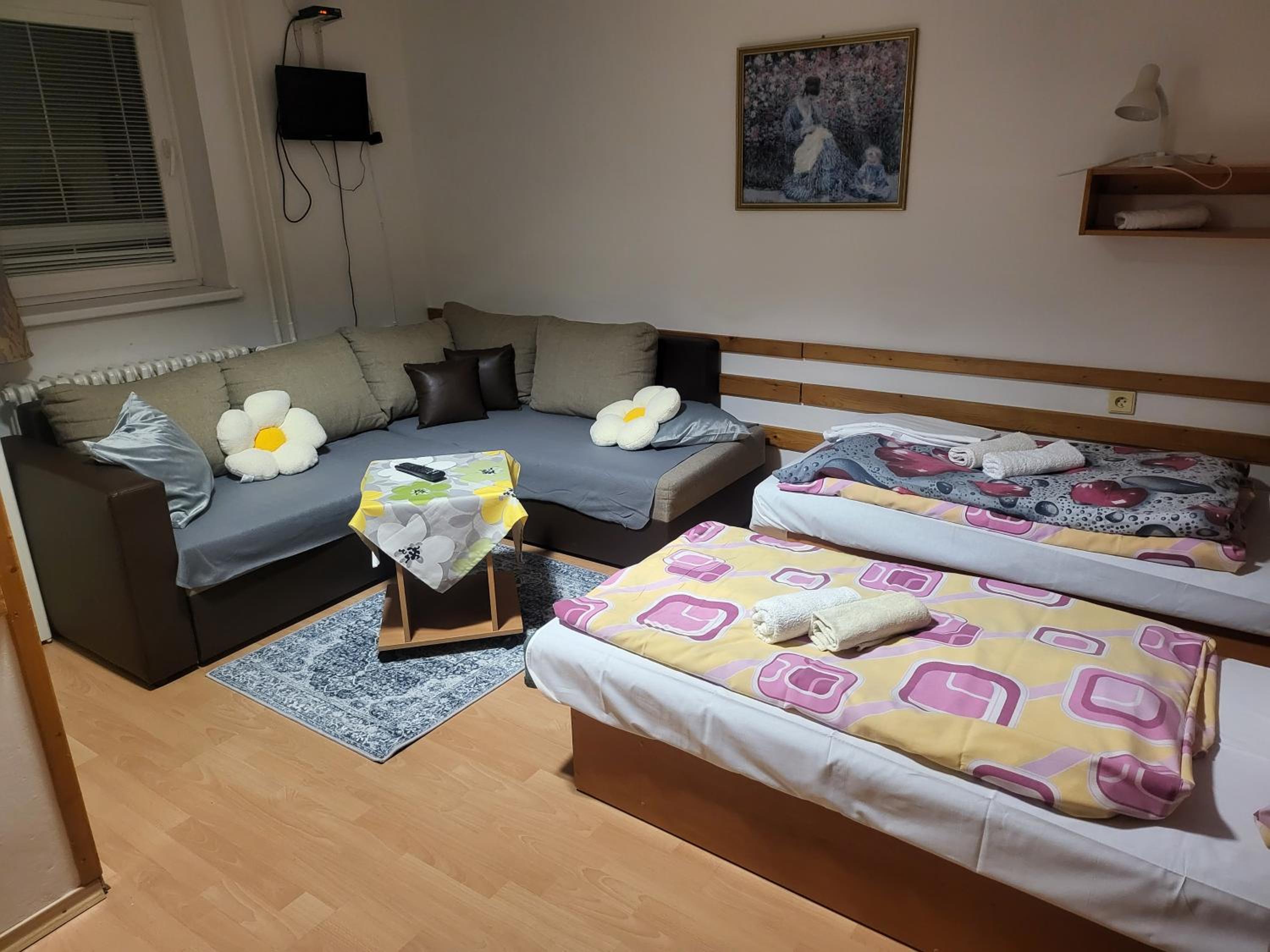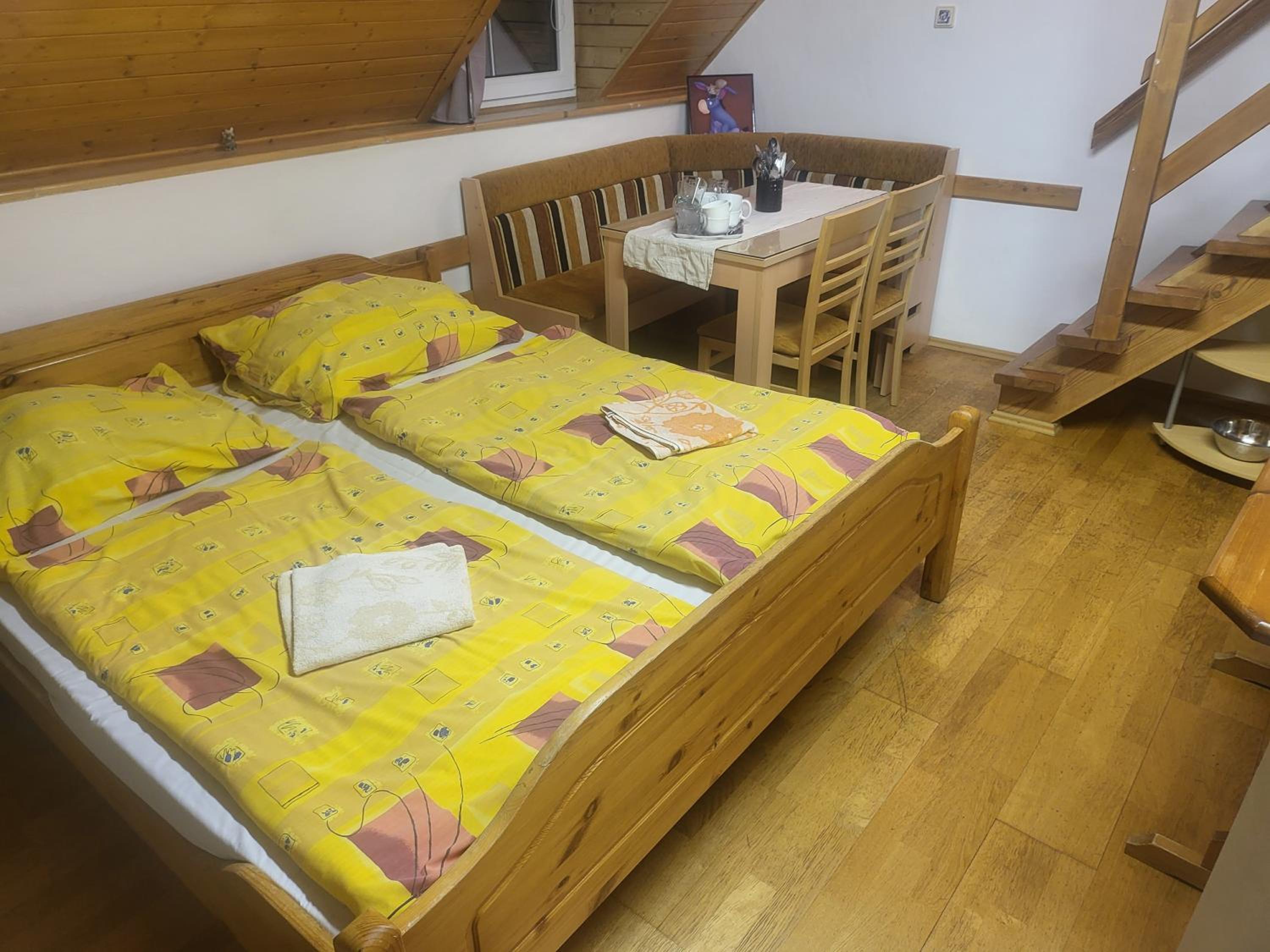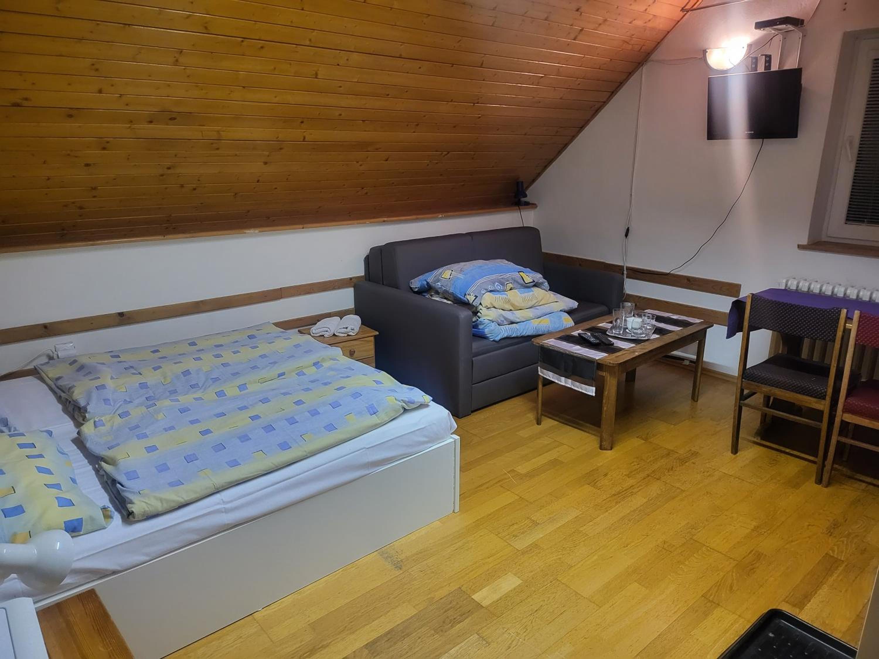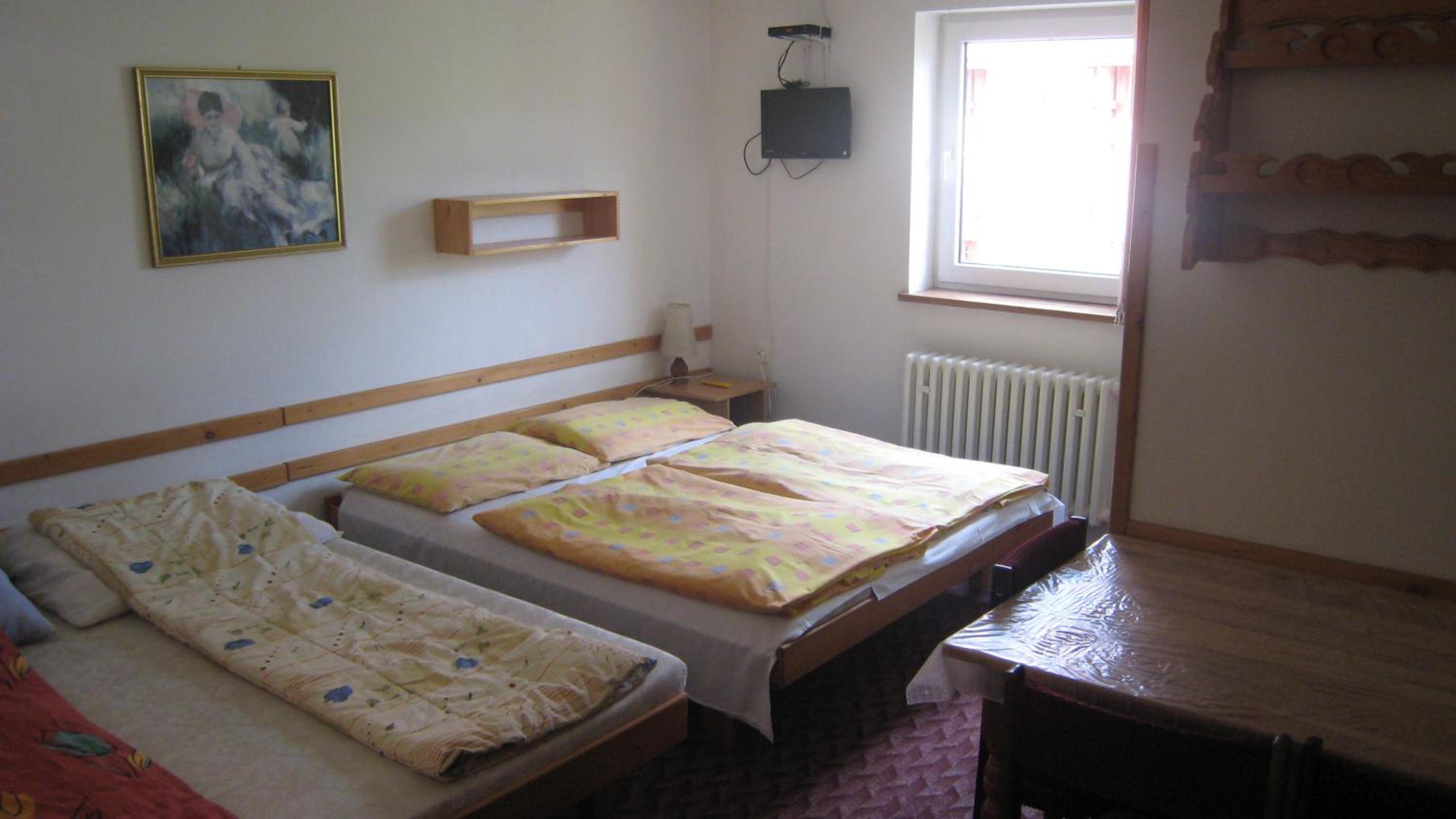 Nepacil sa mi pristup pana, ktory to tam mal na starosti.. najprv sa tvaril, ze nasu rezervaciu na bookingu ani nevidi (to chapem), ale nakoniec nam dal to ubytovanie este drahsie, ako bolo na bookingu, to uz sa mi zdalo dost cudne, ale za 2 eura som sa nesiel hadat.. ked som sa chcel ubytovat az po vecernom lyzovani, tak ani to neslo, lebo "on si ubytuje hosti a ide prec", aj ked teda po vecernom tam bol a na dverach napis, ze recepcia je do 23.00. ked som ho poprosil o druhe uteraky, lebo tie nase boli ako z gumy, tak druhe nemal, lebo vsetky su prave v pracovni.. boli sme tam na lyziarsky vikend, takze sme tam naozaj iba spali a sprchovali sa, podla toho sme vyberali ubytovanie a boli sme nachystani na "jednoduche podmienky", to nebol problem, ale teda nabuduce radsej priplatim pojdem niekde s normalnym pristupom.
