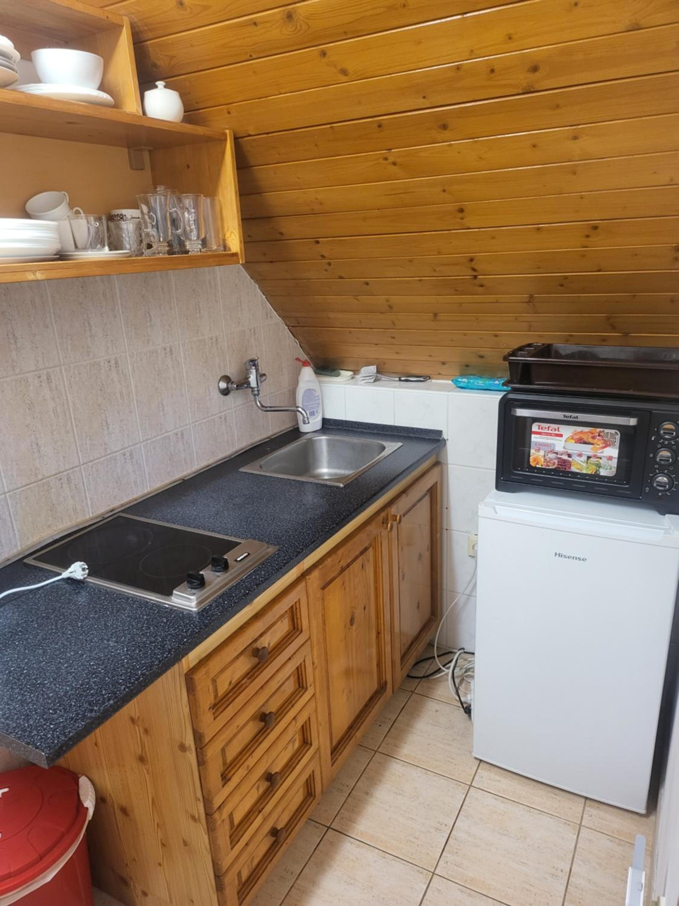Bardzo fajny domek z dwoma sypialniami, dwoma łazienkami, kuchnia, przedpokojem i małym tarasem. Super właściciel, blisko sklep, skibus, bankomat, knajpka. Parking na miejscu. Przyjedziemy znów :)