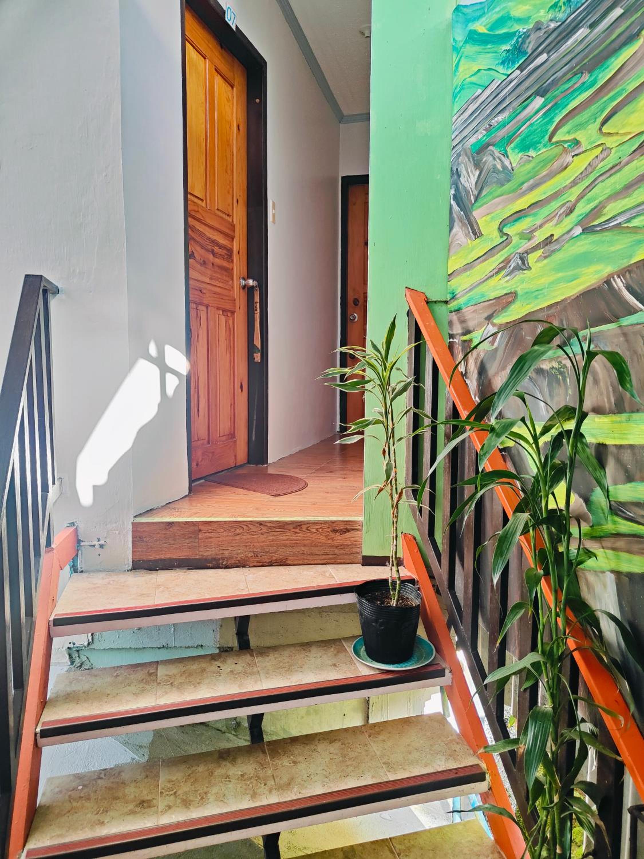 It was a quiet place, food was good and staff friendly. We liked very much that they came to pick us up at the bus station. Also their dining are is a big balcony, nice to hang out.