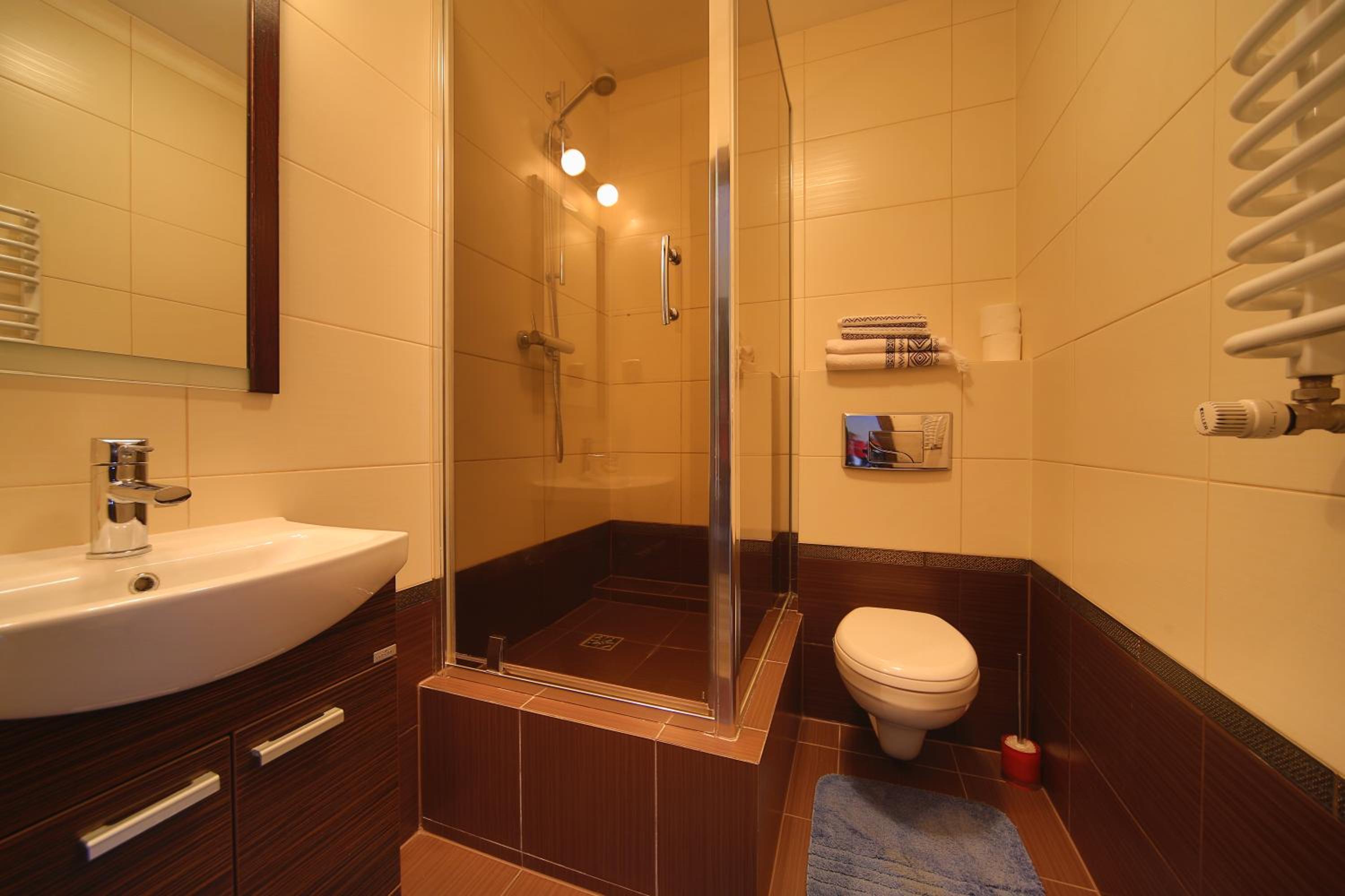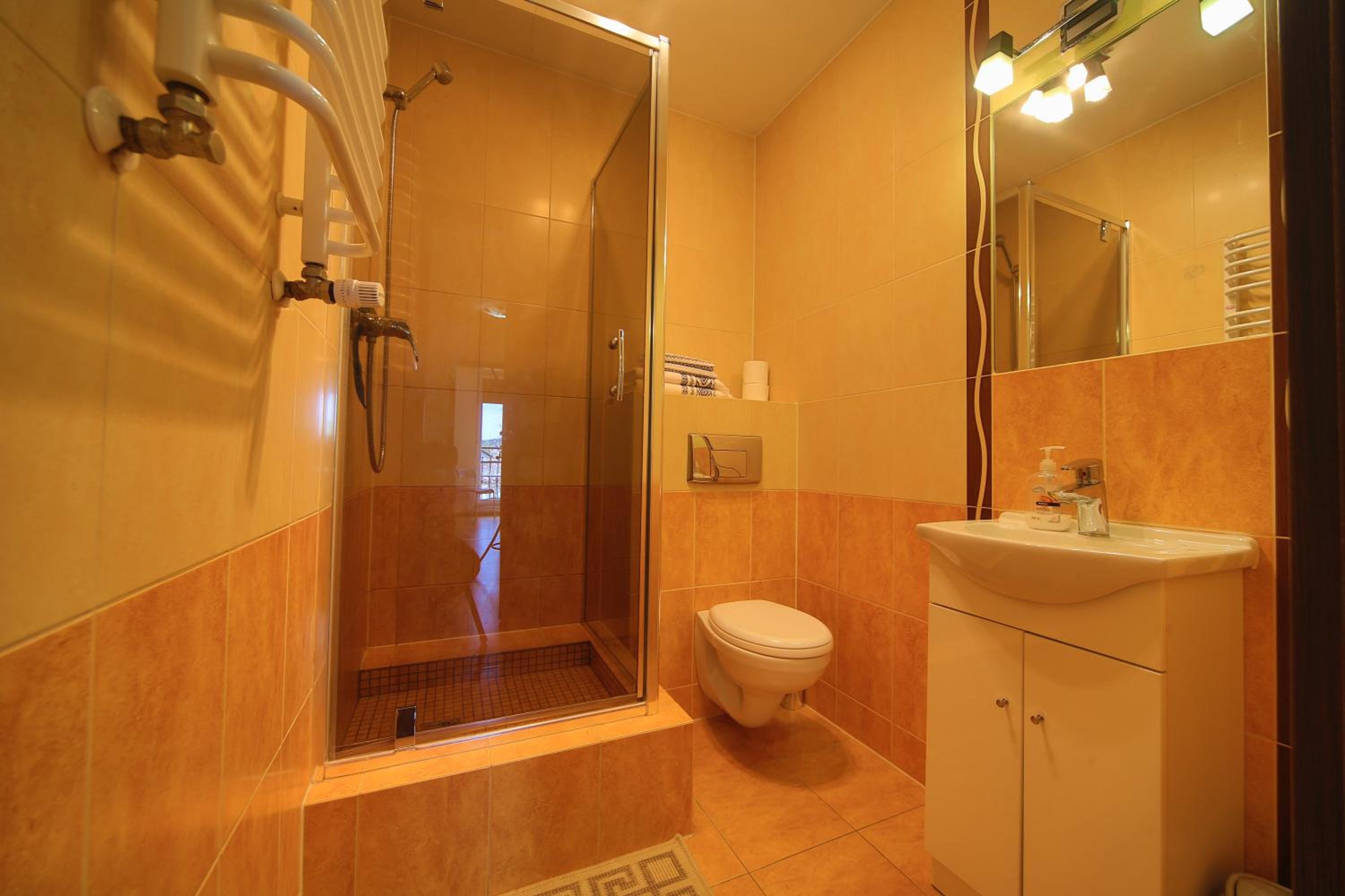 Jednym z głównych problemów jest kabina prysznicowa. Martwię się o bezpieczeństwo, ponieważ złamanie szkła drzwi kabiny prysznicowej w przypadku upadku na krawędź może być potencjalnie niebezpieczne, szczególnie dla dzieci. W mojej pracy w pomocy dzieciom bezpieczeństwo jest dla mnie szczególnie ważne. Ważne jest, aby unikać takich niebezpieczeństw z wyprzedzeniem.