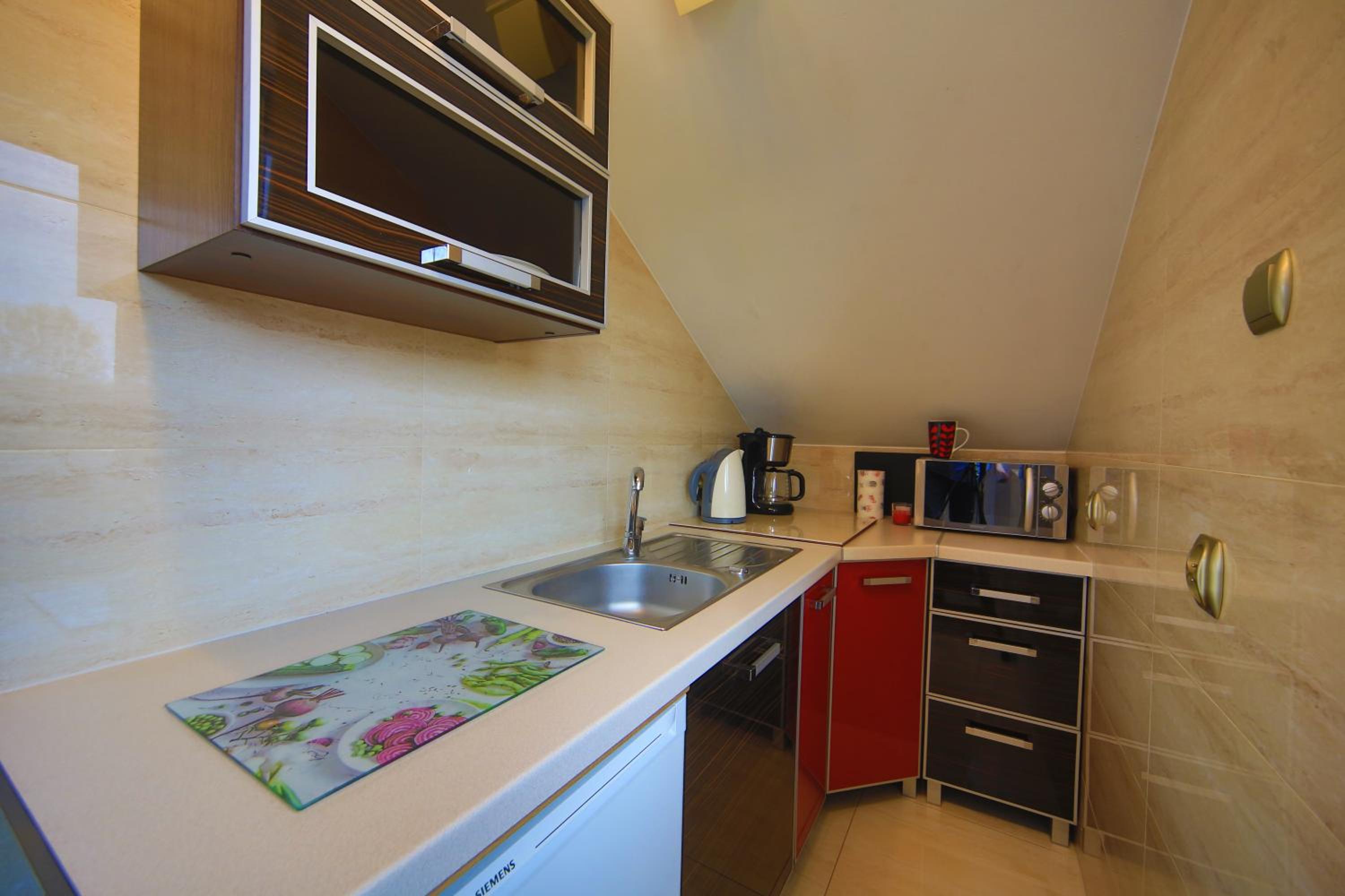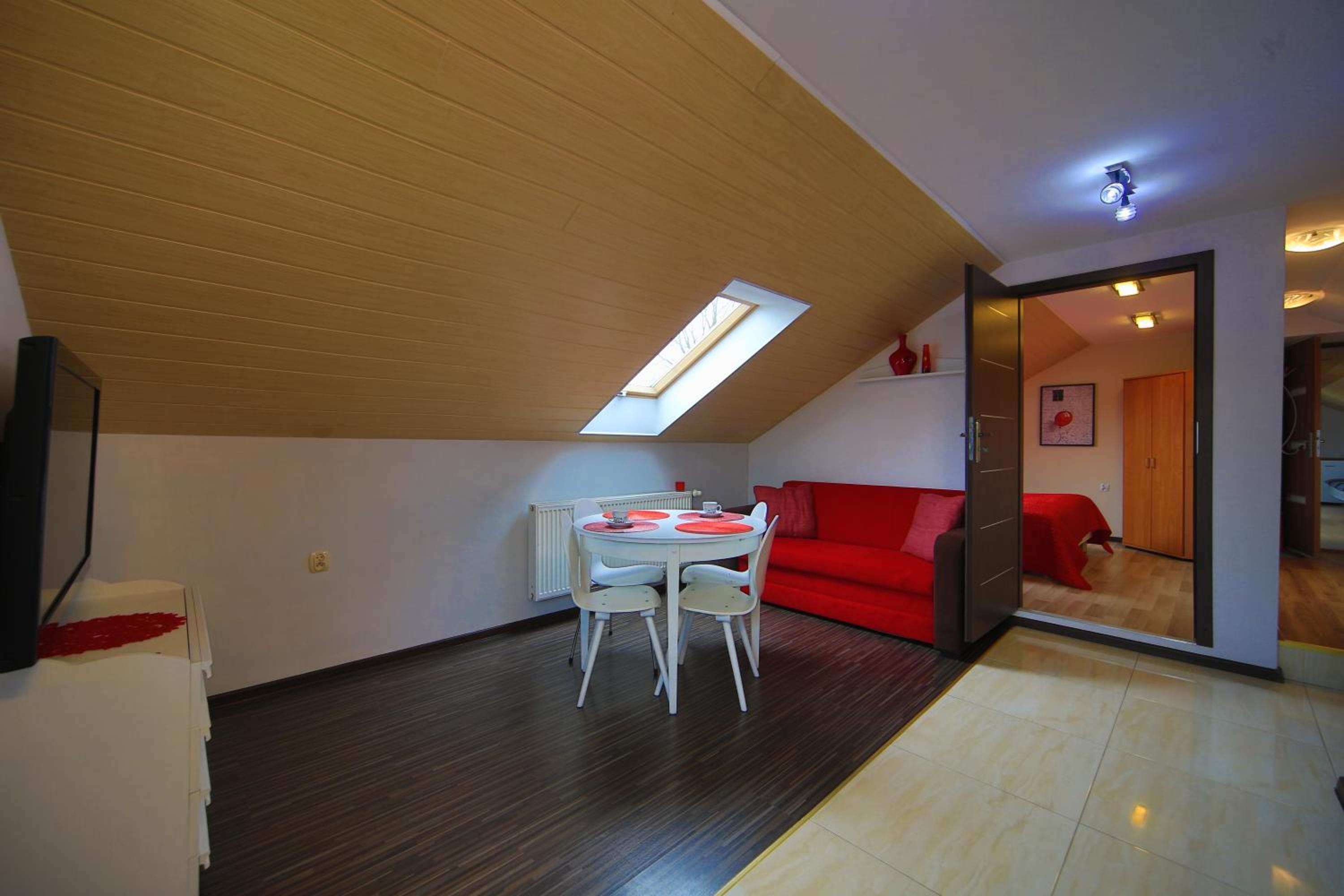 Prijemna pani nas cakala hned ako sme zaparkovali, ukazala nam cely vrchny apartman , wow celkovo spokojni . Ventilator , sietky na oknach . Osusky nachystane, kuchynka vybavena, k dispozicii aj ich vonkajsi gril s posedenim .