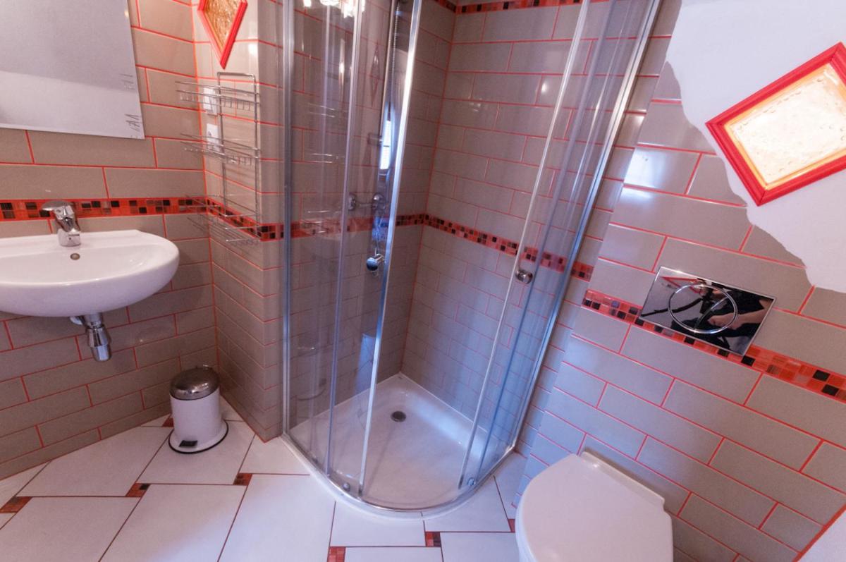 Each room at Pokoje Gościnne u Eweliny features modern amenities such as a TV with satellite channels and a private bathroom, ensuring a comfortable stay for guests.