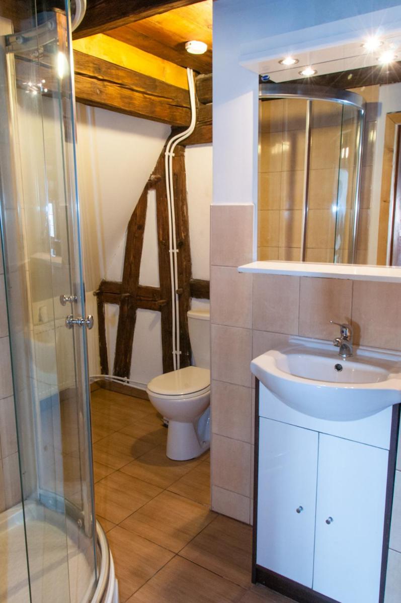 Accommodation in a charming historic building with a pleasant atmosphere, shared kitchenette, free parking on the street, excellent breakfast served in the hotel next door (not a buffet, but a vegetarian option was available).