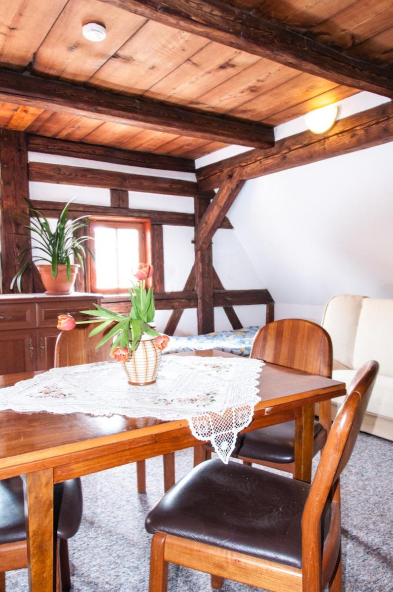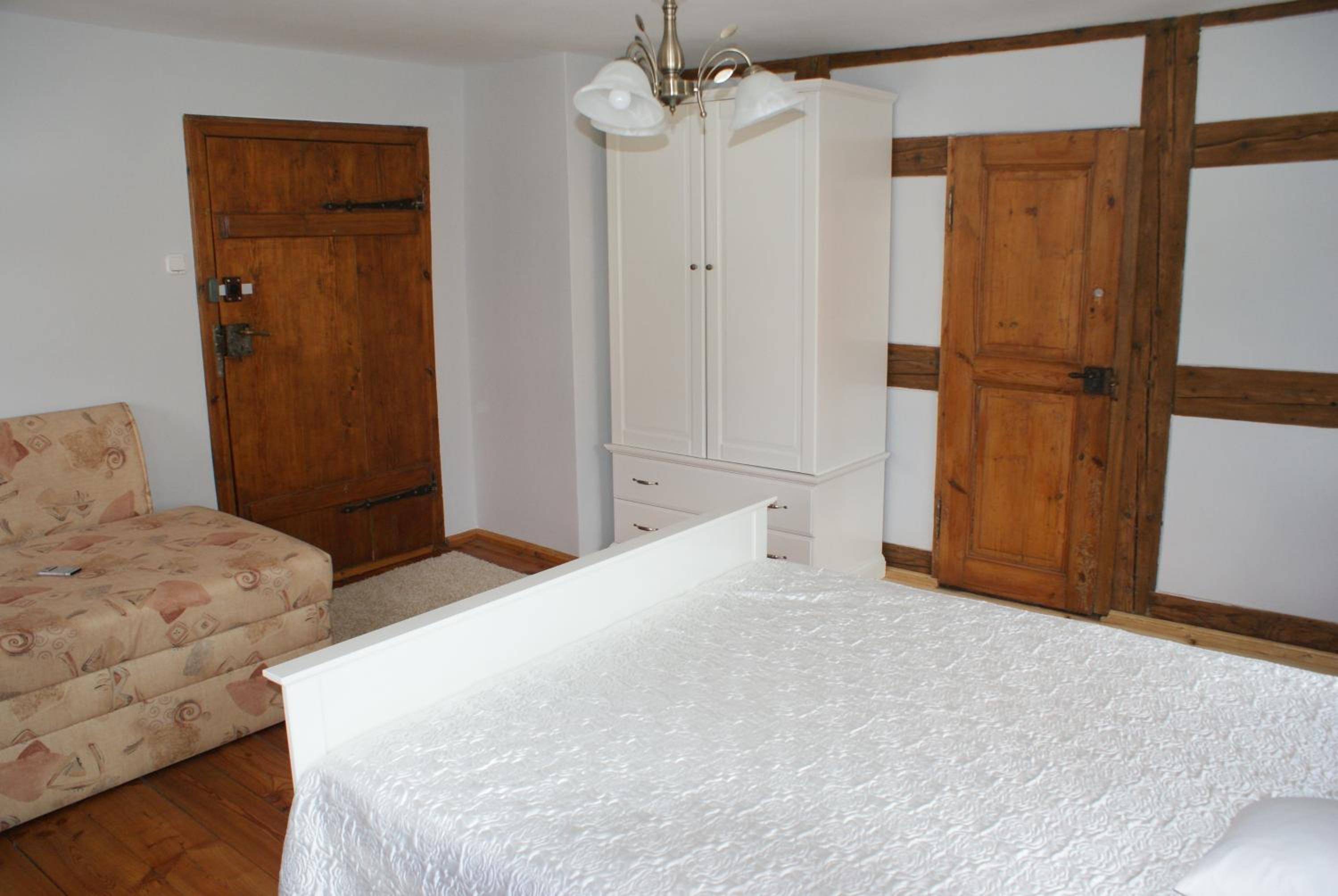 Pokoje znajdują się w historycznym budynku, w tak zwanym domu przysłupowym. Nasz pokój był duży i przestronny. Bardzo wygodne, ogromne łóżko. Przeurocza włąscicielka obiektu, zachęcam do rozmowy i opowieści o historii okolicy i ciekawostkach. Miejsce przyjazne pieskom, bez dodatkowych kosztów. Z parkingiem nie było problemu, nam udało sie parkować pod samym budenkiem na parkingu ogólnodostepnym. Kuchnia jest wspólna ale nam to nie przeszkadzało, przy okazji można poznać innych gości :)