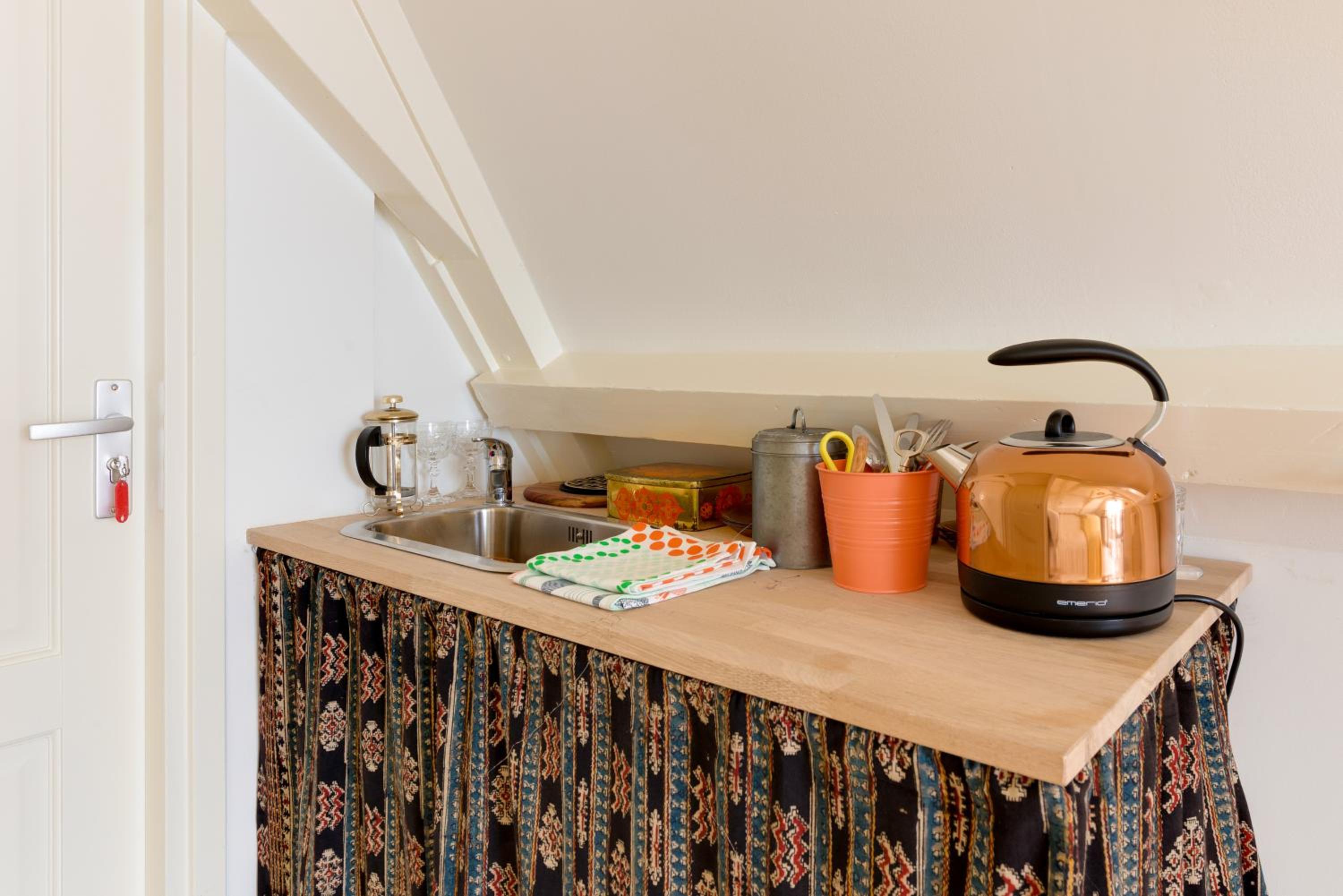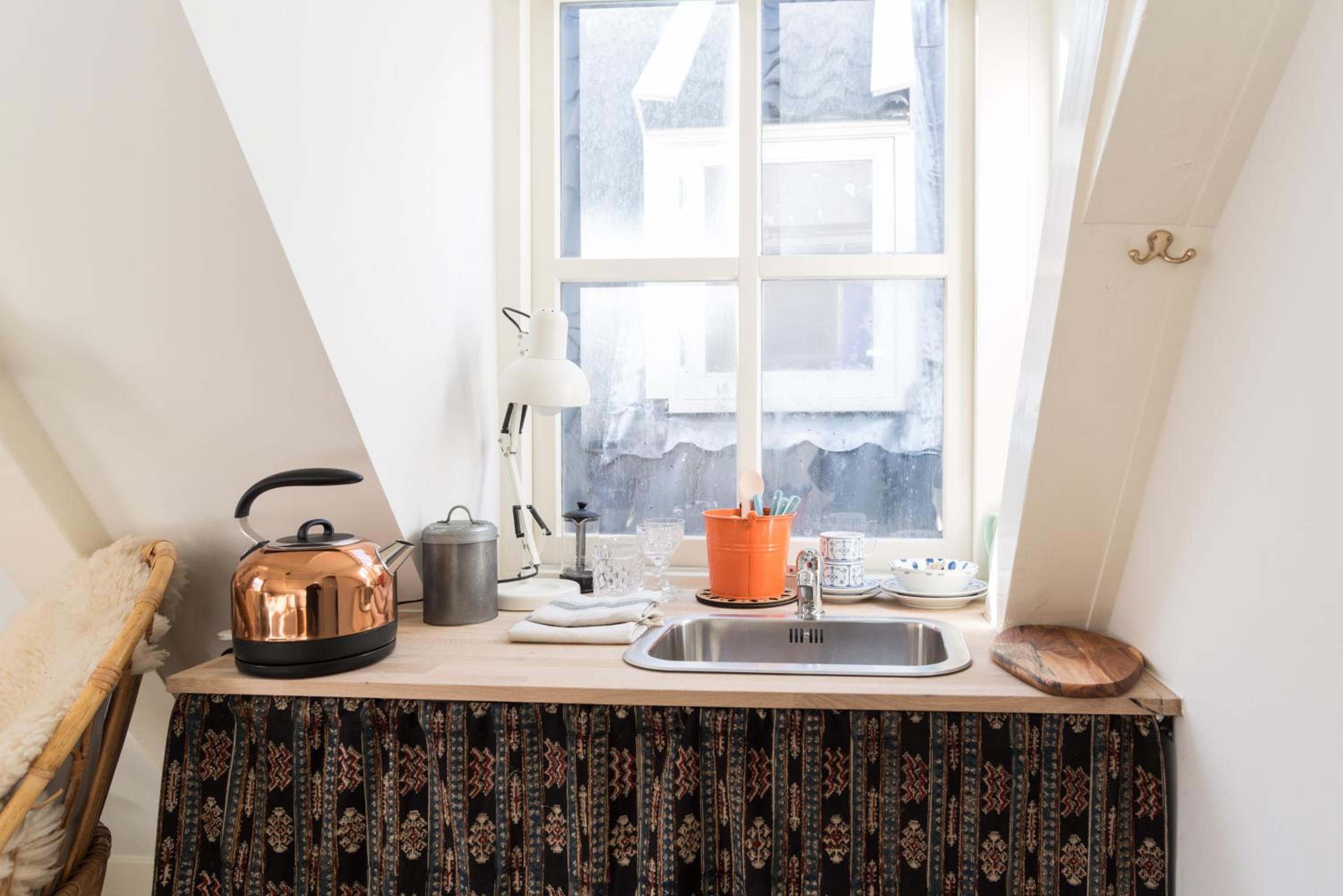 We think this is the perfect place to stay! It is located a 1-2 minute walk away from the Rembrandtplein tram stop, meaning you can easily get around, especially to and from Centraal station. The Rembrandt area itself is lovely and has lots of options to eat out - as well as being a short walk from the main shopping streets. There is also a very big and well stocked Albert Heijin (popular Dutch grocery store) nearby! The apartment is furnished in a cosy way and has a fridge, kettle, coffee maker and crockery/cutlery which allowed us to eat in some nights. We also enjoyed the spacious bathroom. The bed was comfortable and you get a lot of natural light from the windows. Checking in and out was quick and easy, and Anouk was very friendly! We will definitely come back again.