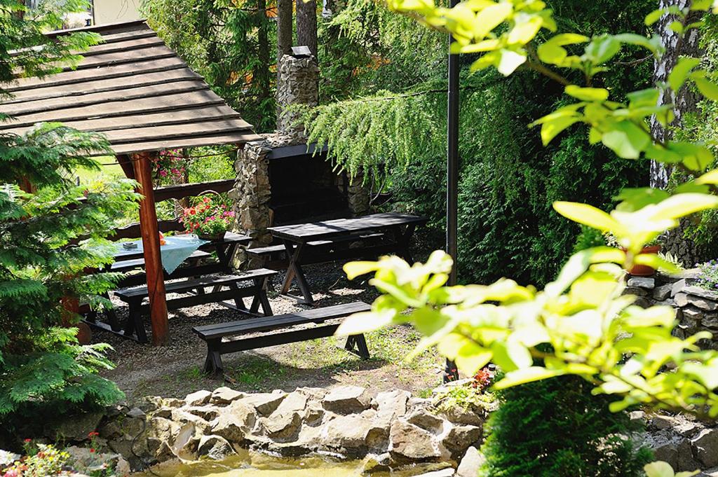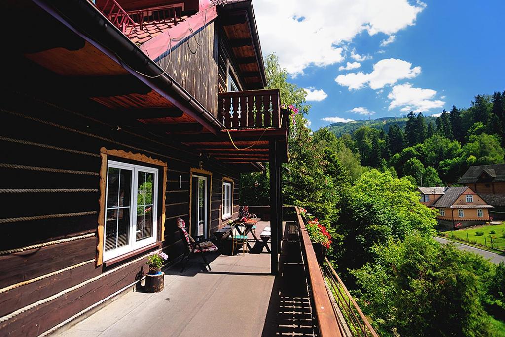 Experience cozy evenings by the fireplace and breathtaking views from the terrace at Pension Marsjanka. Perfect for relaxation and unwinding after a day of exploring the beautiful surroundings.