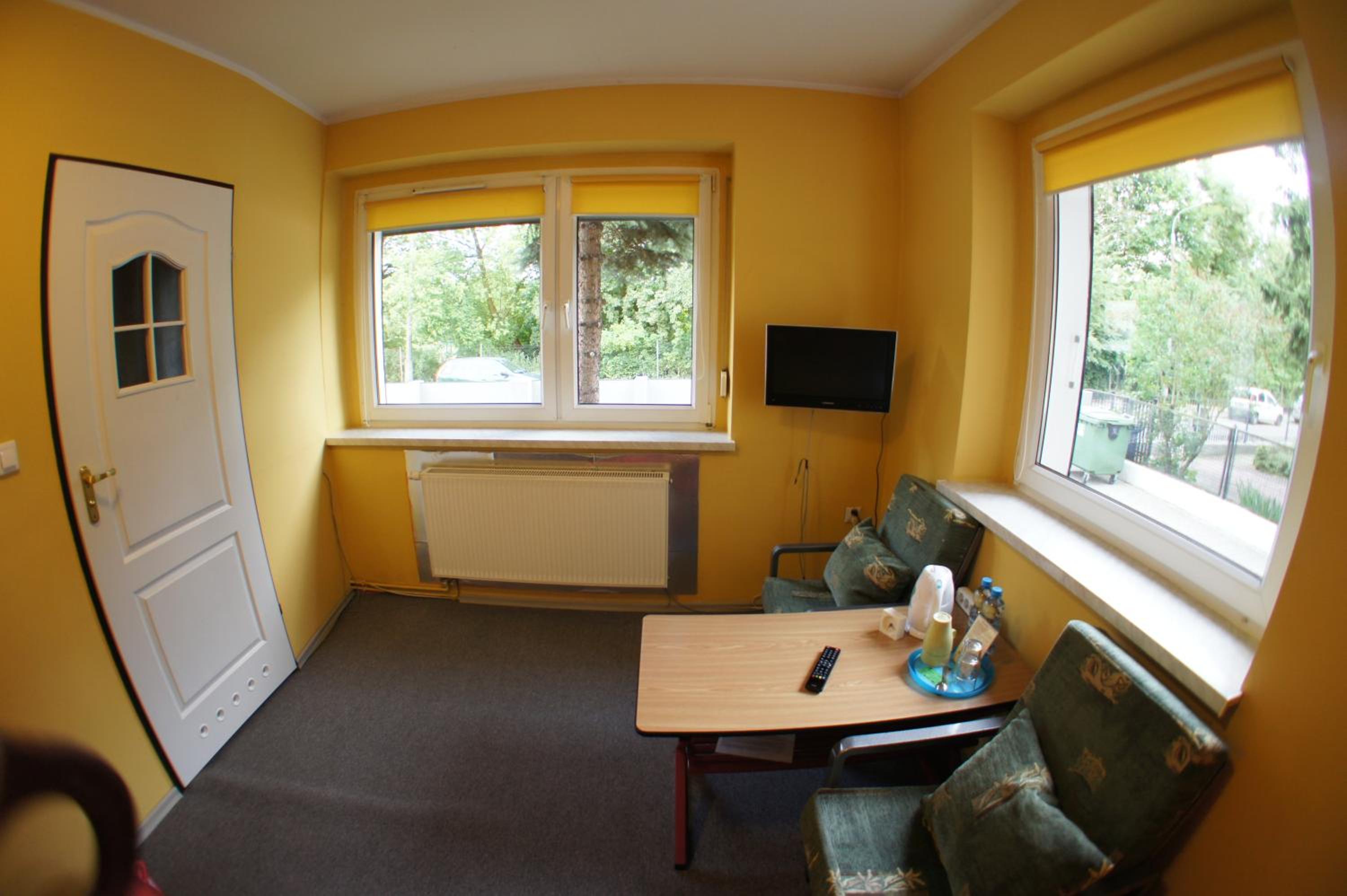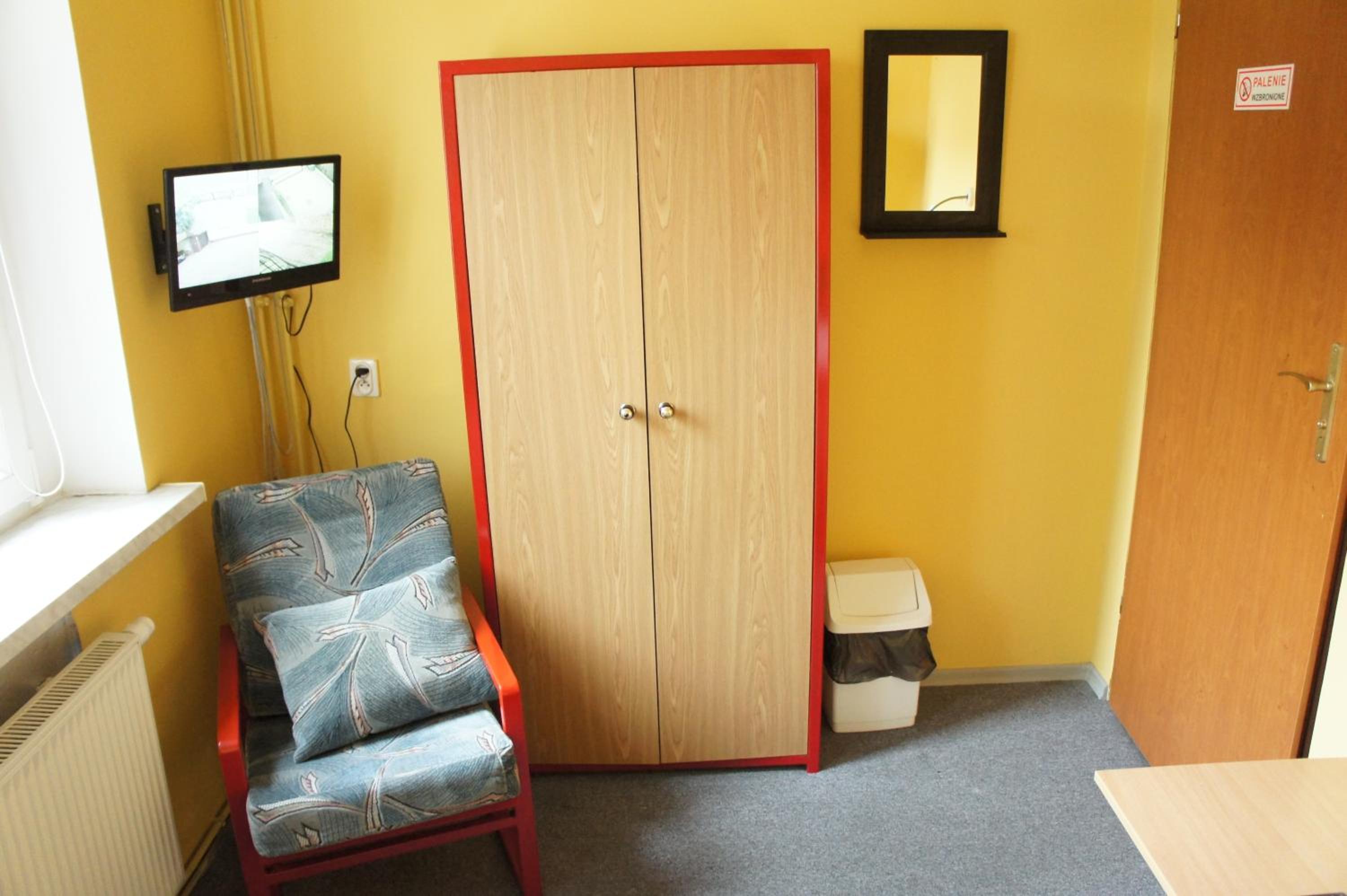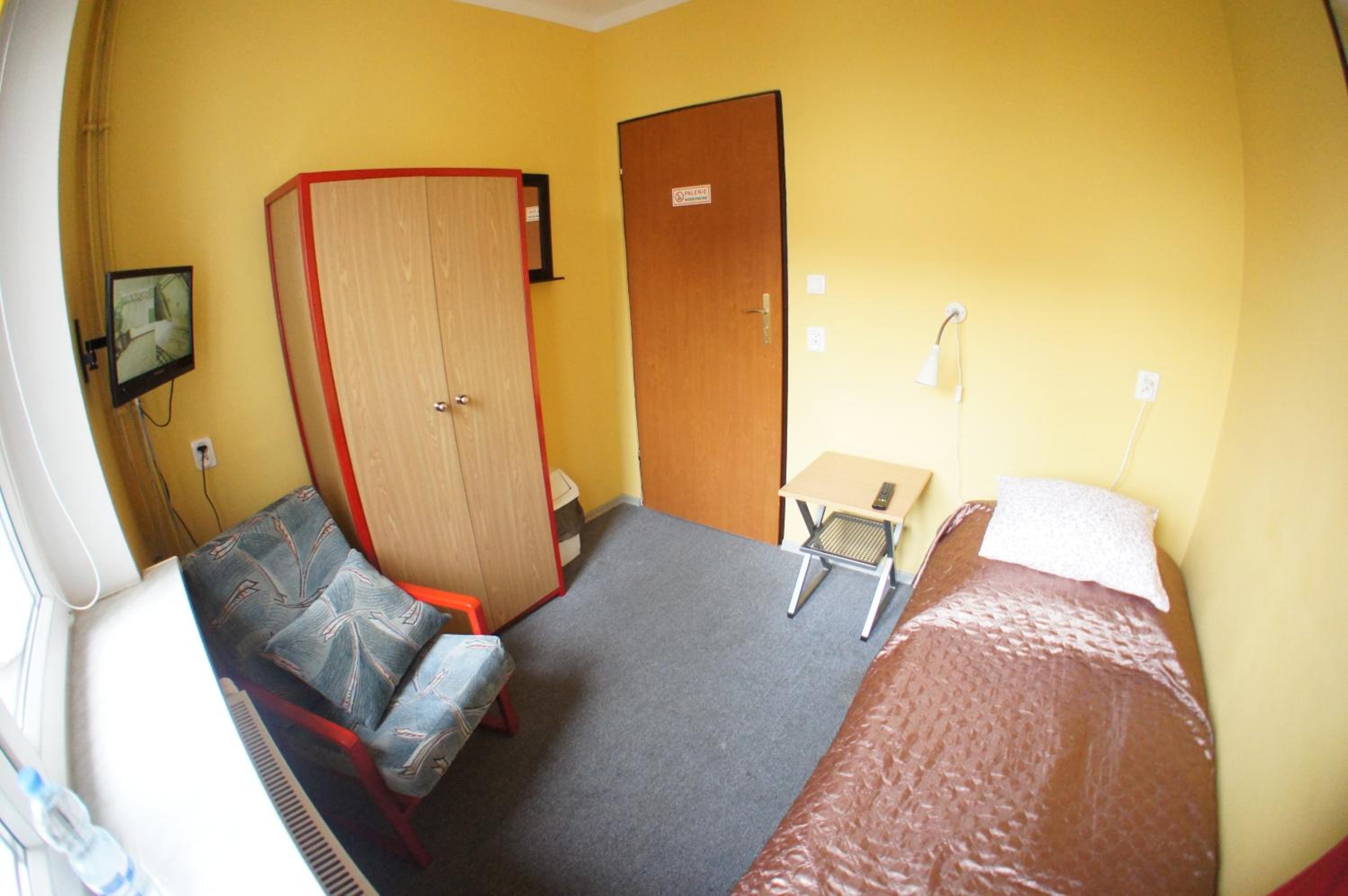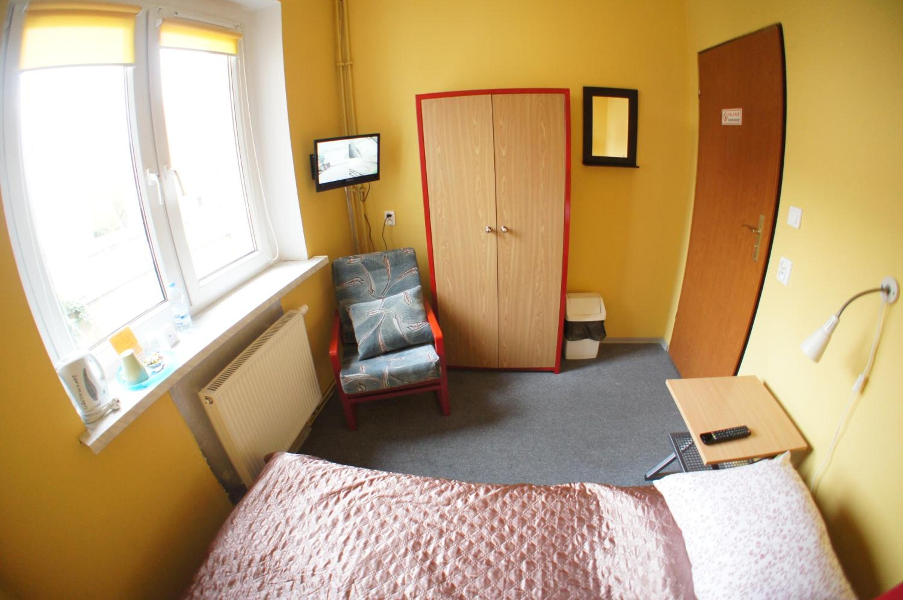 Pokój jednoosobowy,wszystko co potrzebowałam było. Ciepło,TV w pokoju,czajnik,stolik więc z rana kawa. Pokoje zamykane na klucz,łazienka prywatna na korytarzu również zamykana na klucz.