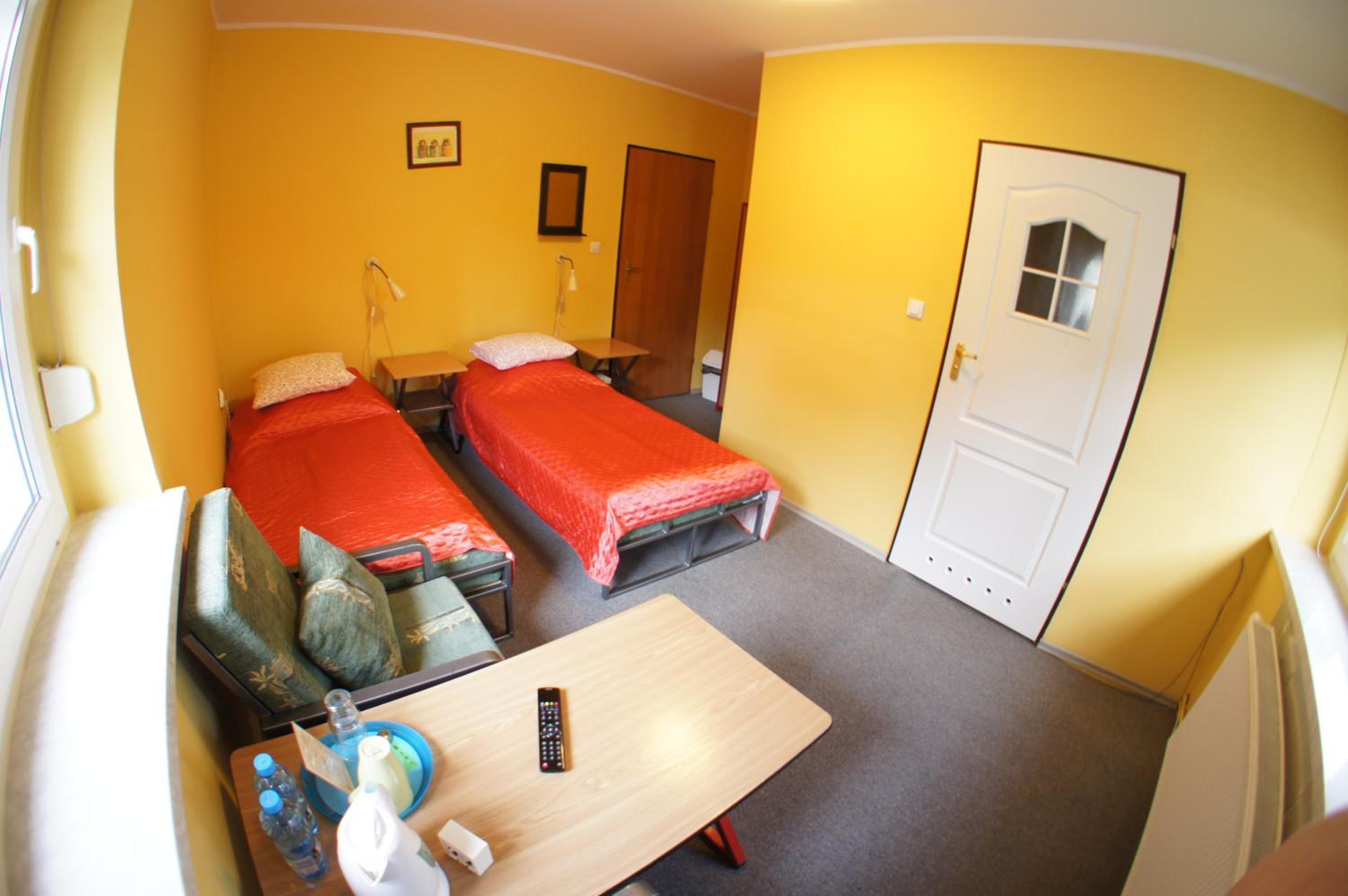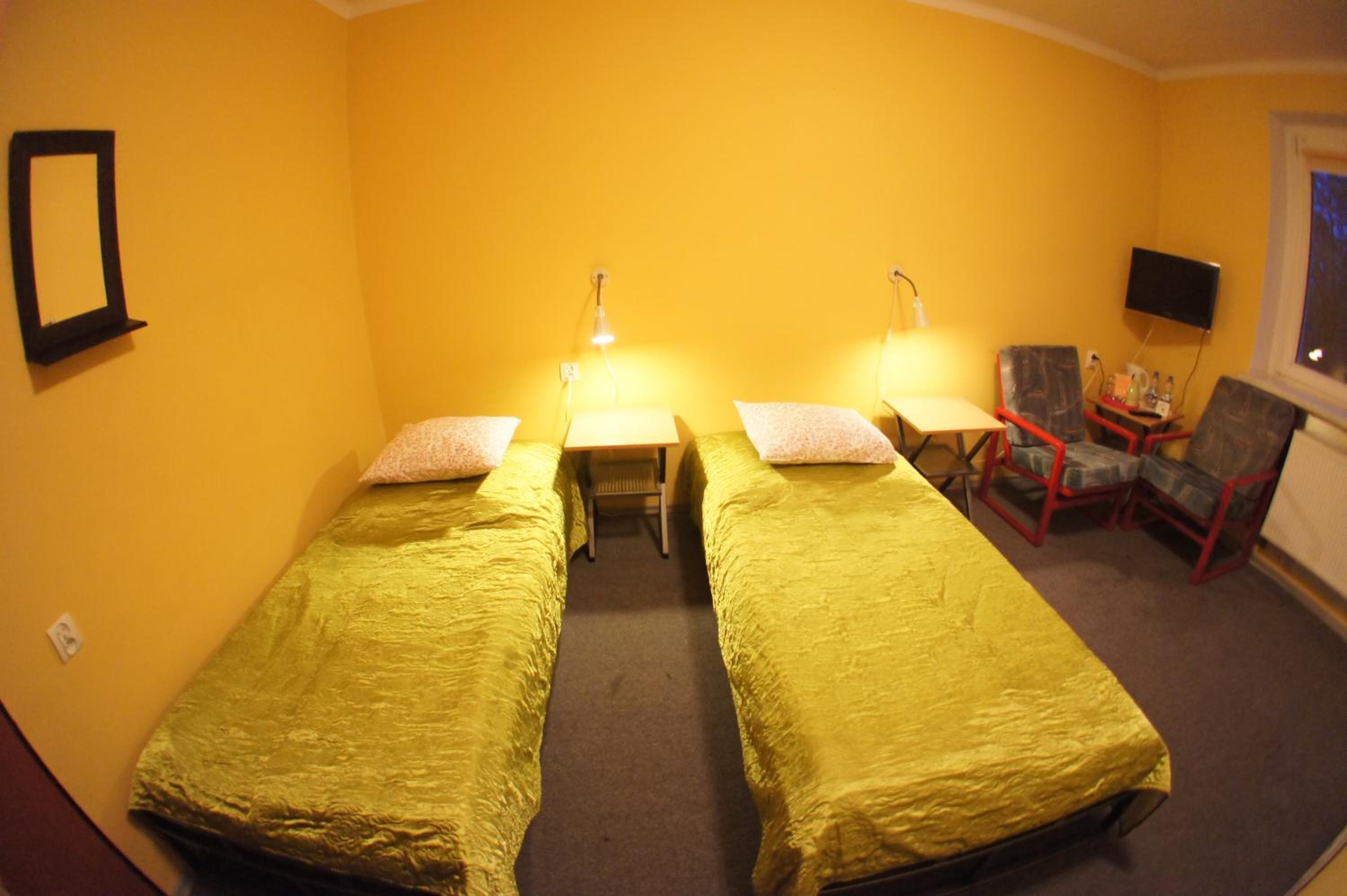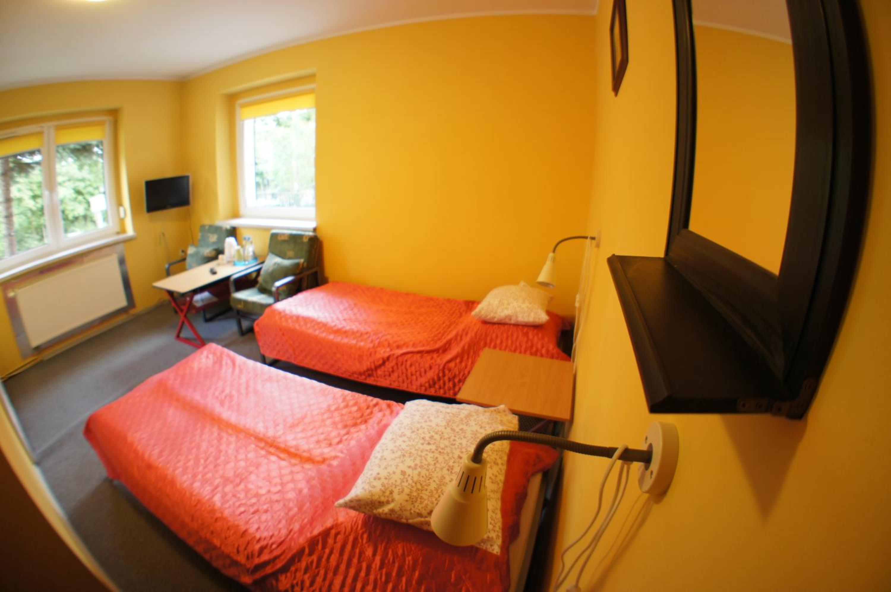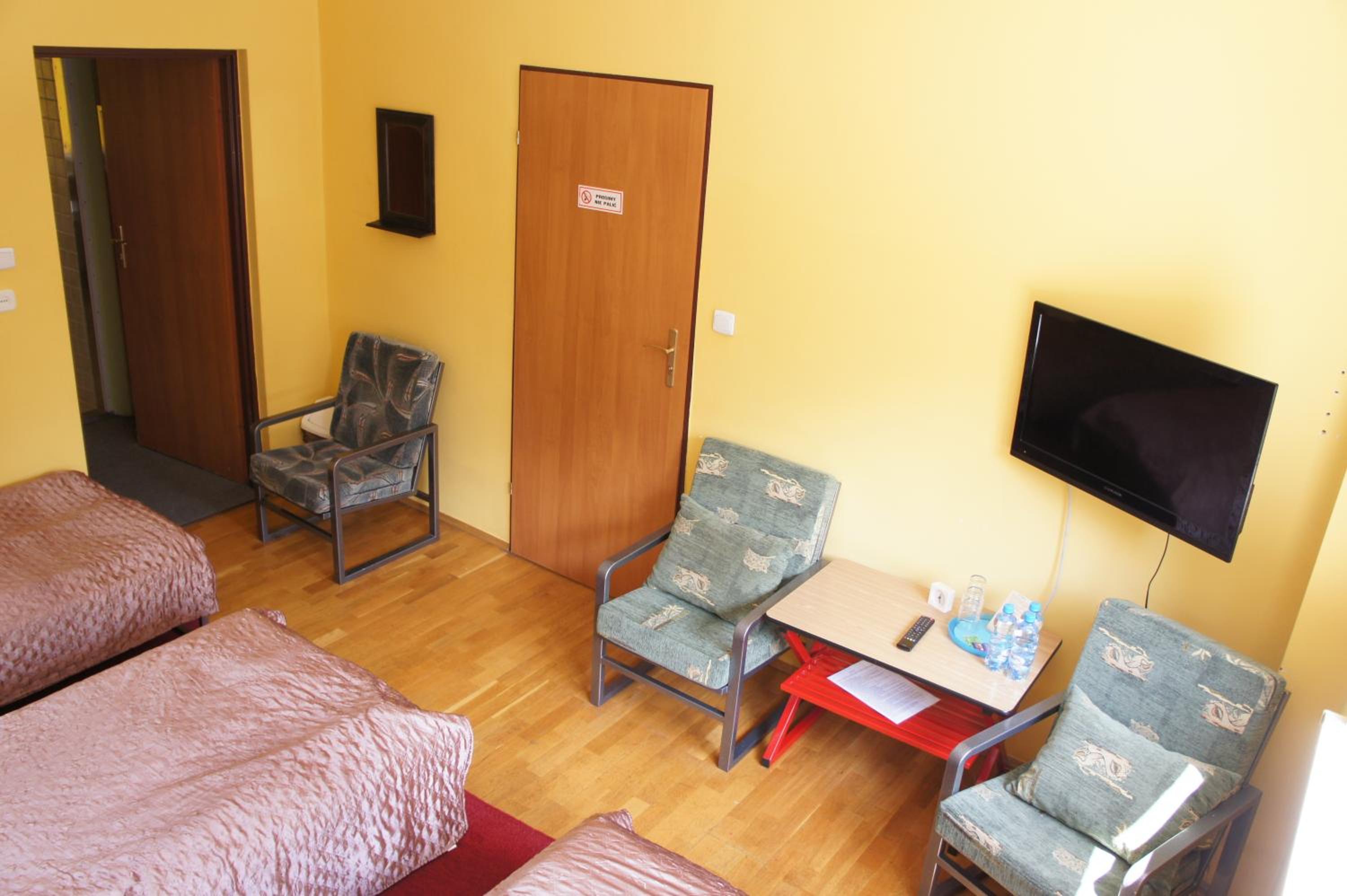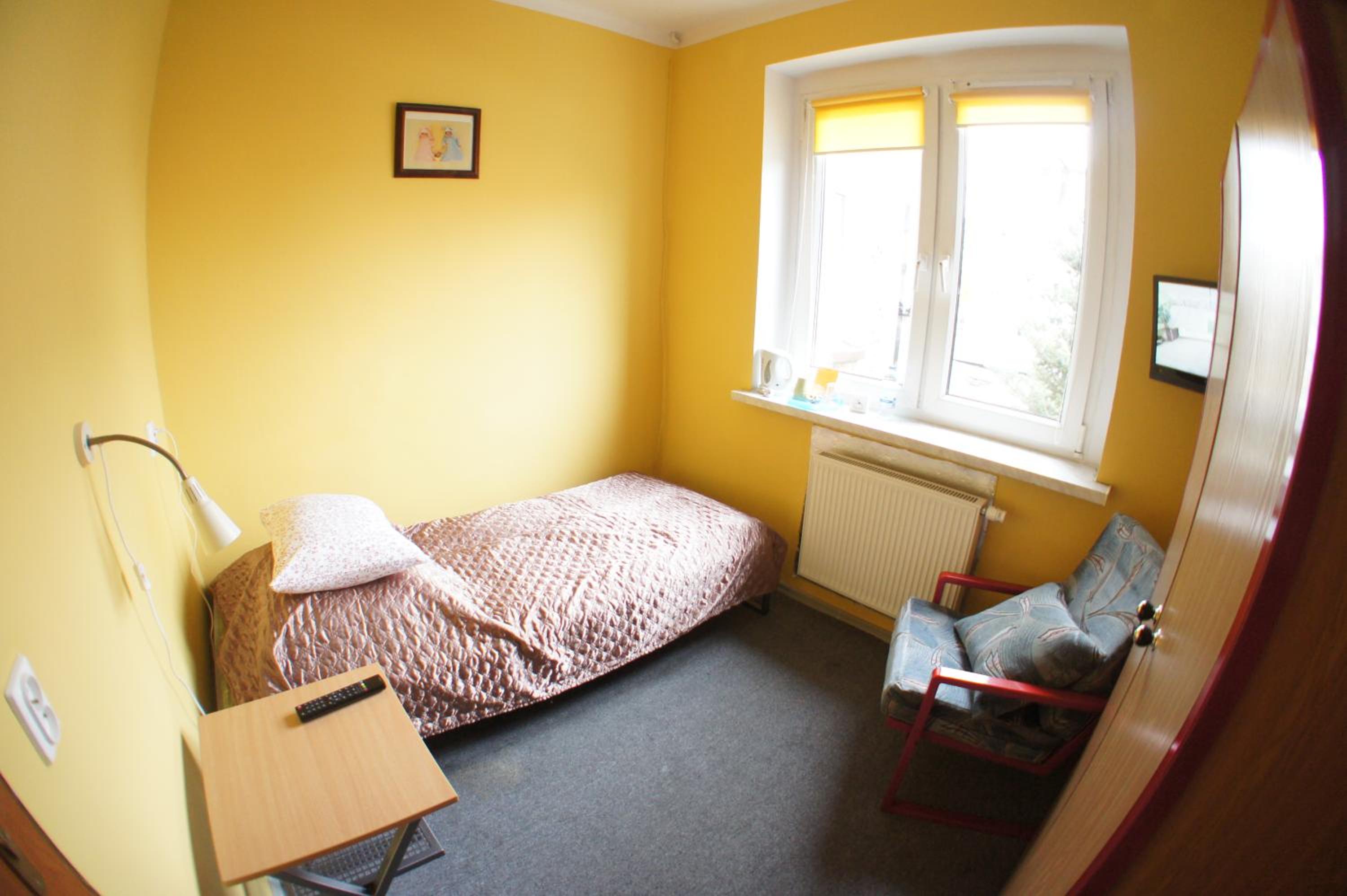 Pokój jednoosobowy,wszystko co potrzebowałam było. Ciepło,TV w pokoju,czajnik,stolik więc z rana kawa. Pokoje zamykane na klucz,łazienka prywatna na korytarzu również zamykana na klucz.