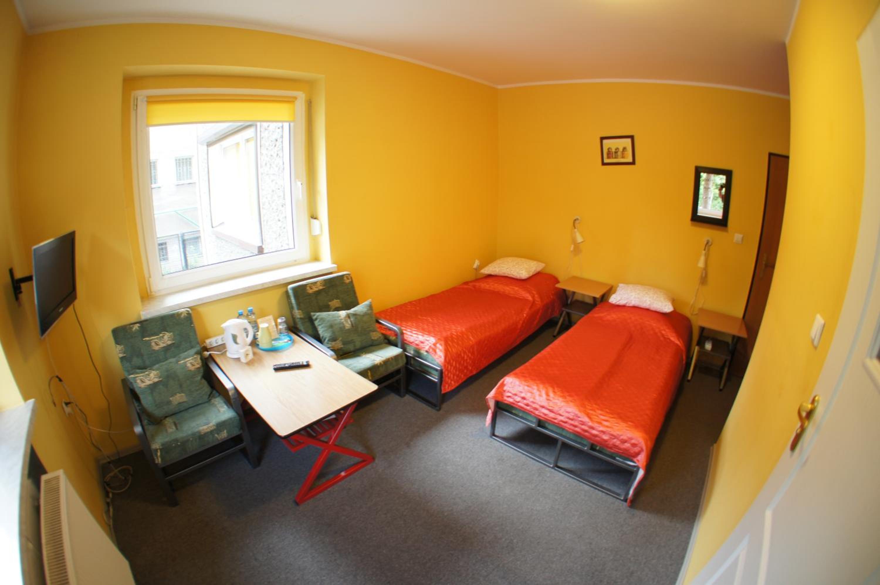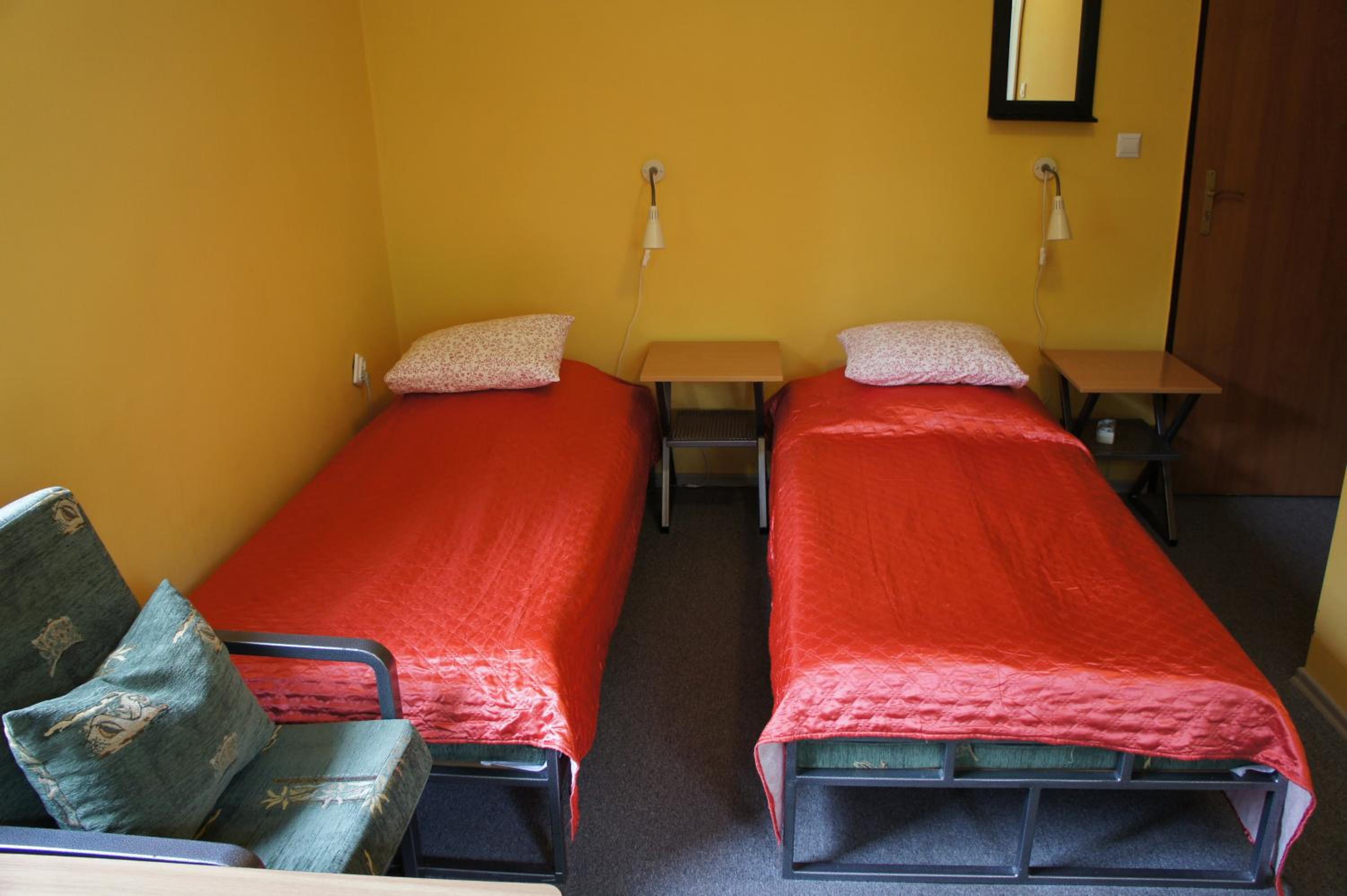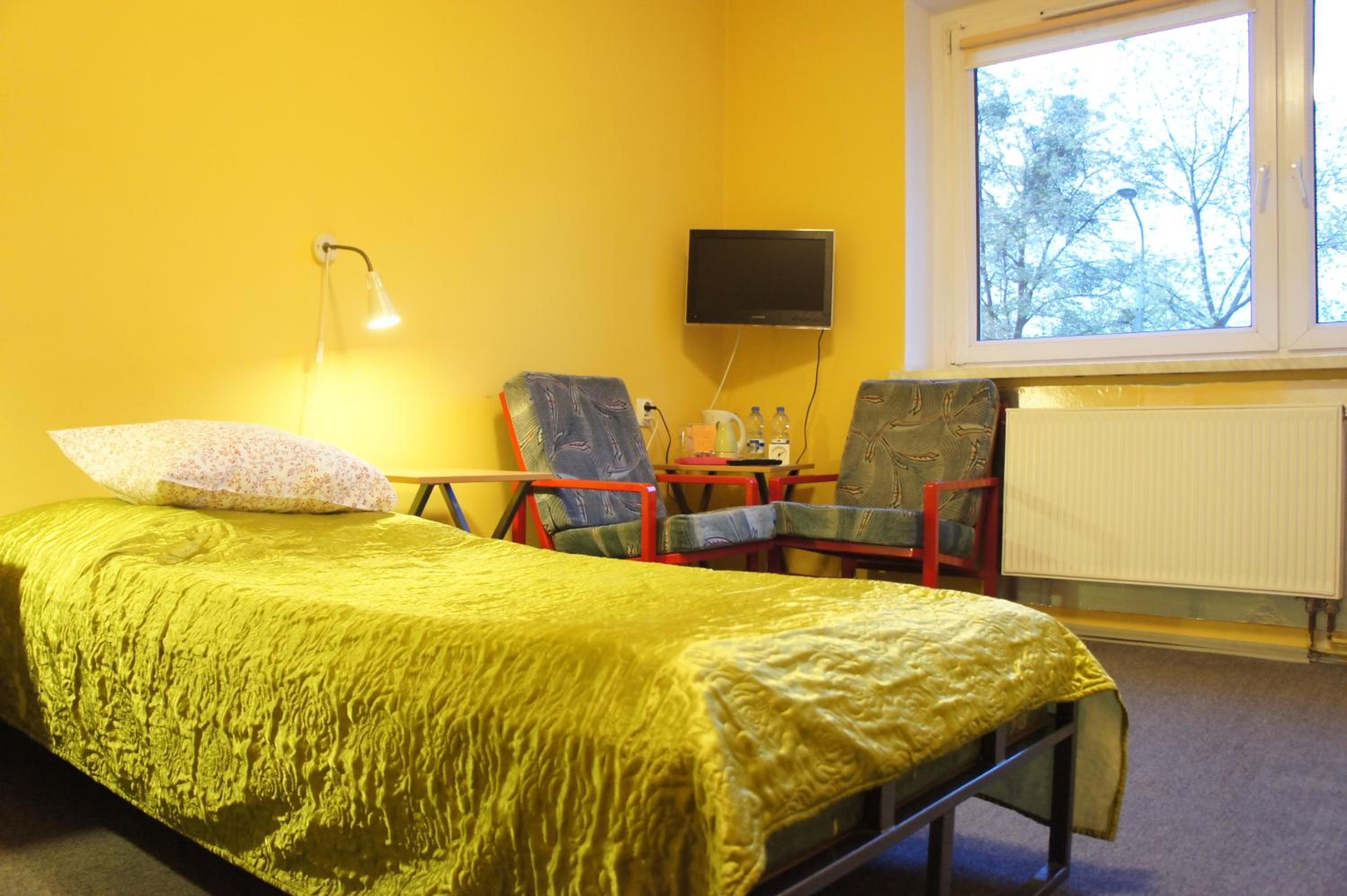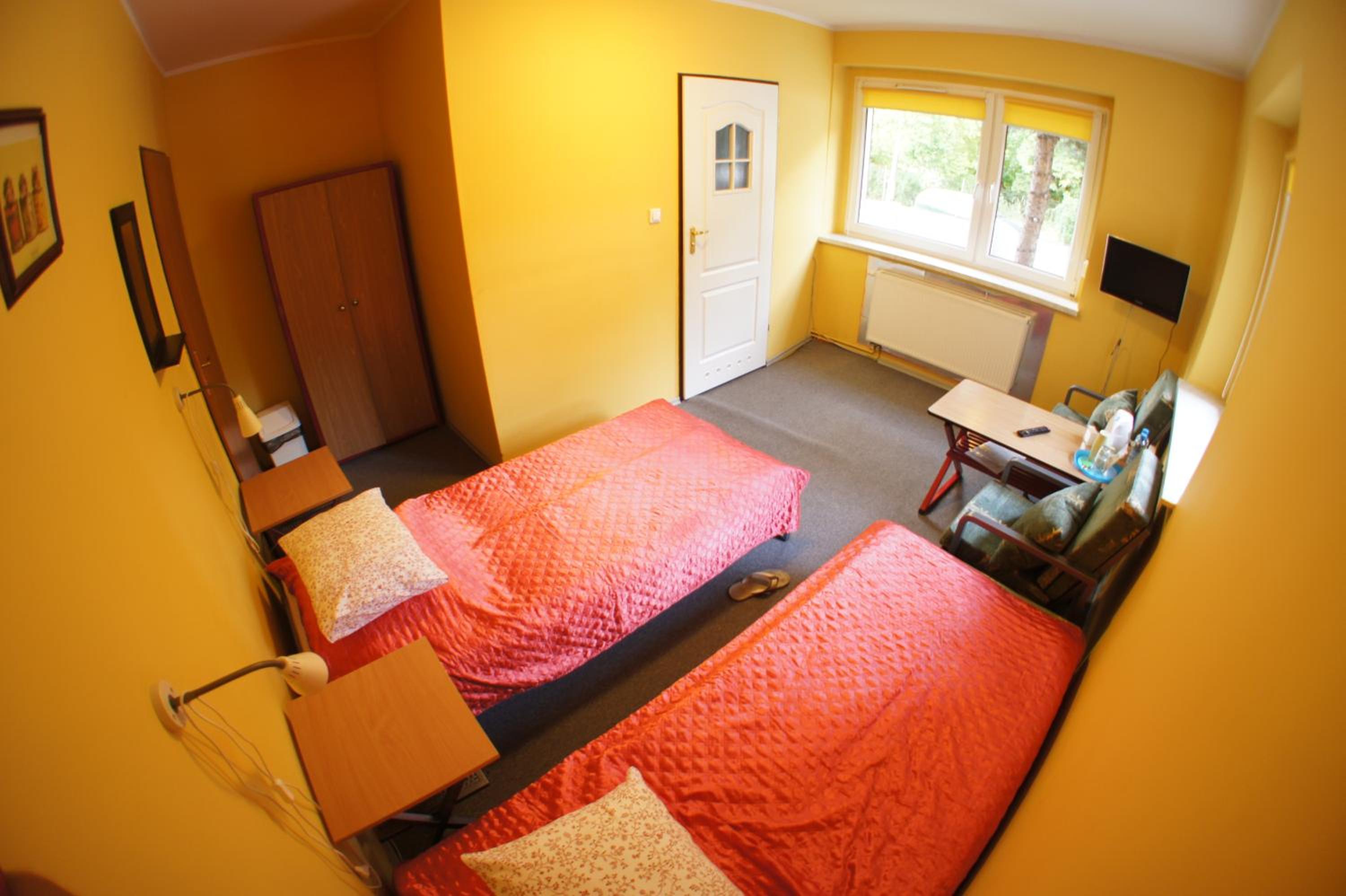 Pokój jednoosobowy,wszystko co potrzebowałam było. Ciepło,TV w pokoju,czajnik,stolik więc z rana kawa. Pokoje zamykane na klucz,łazienka prywatna na korytarzu również zamykana na klucz.