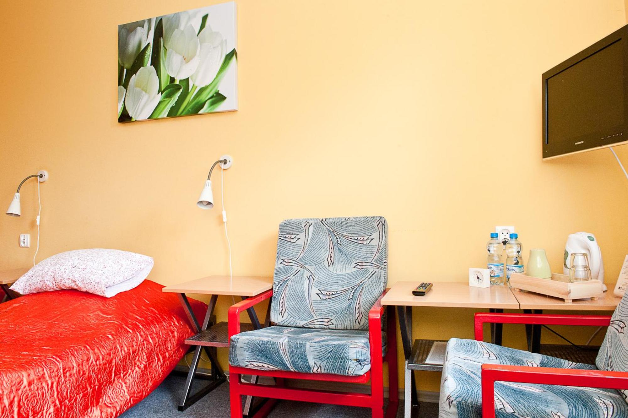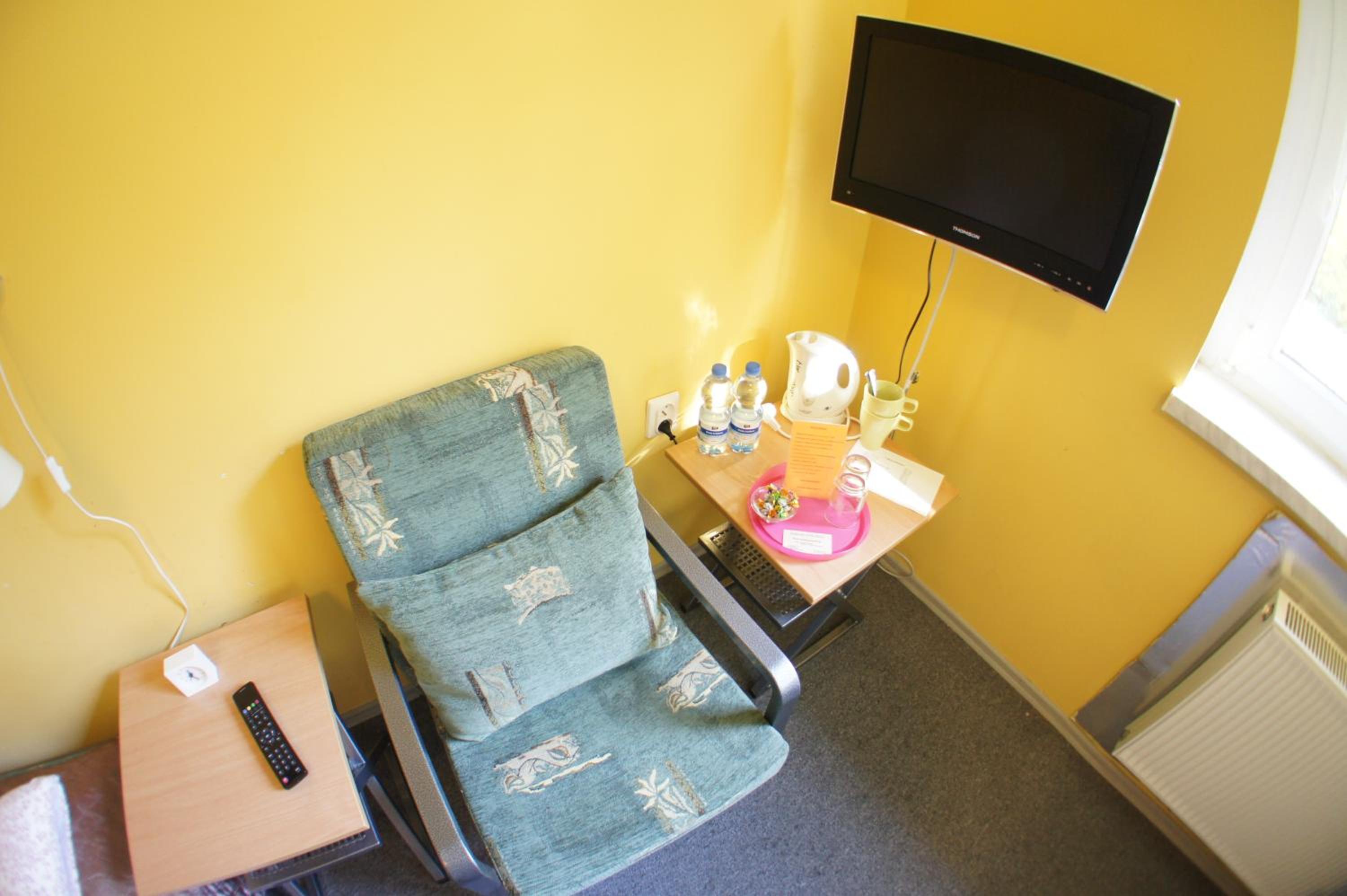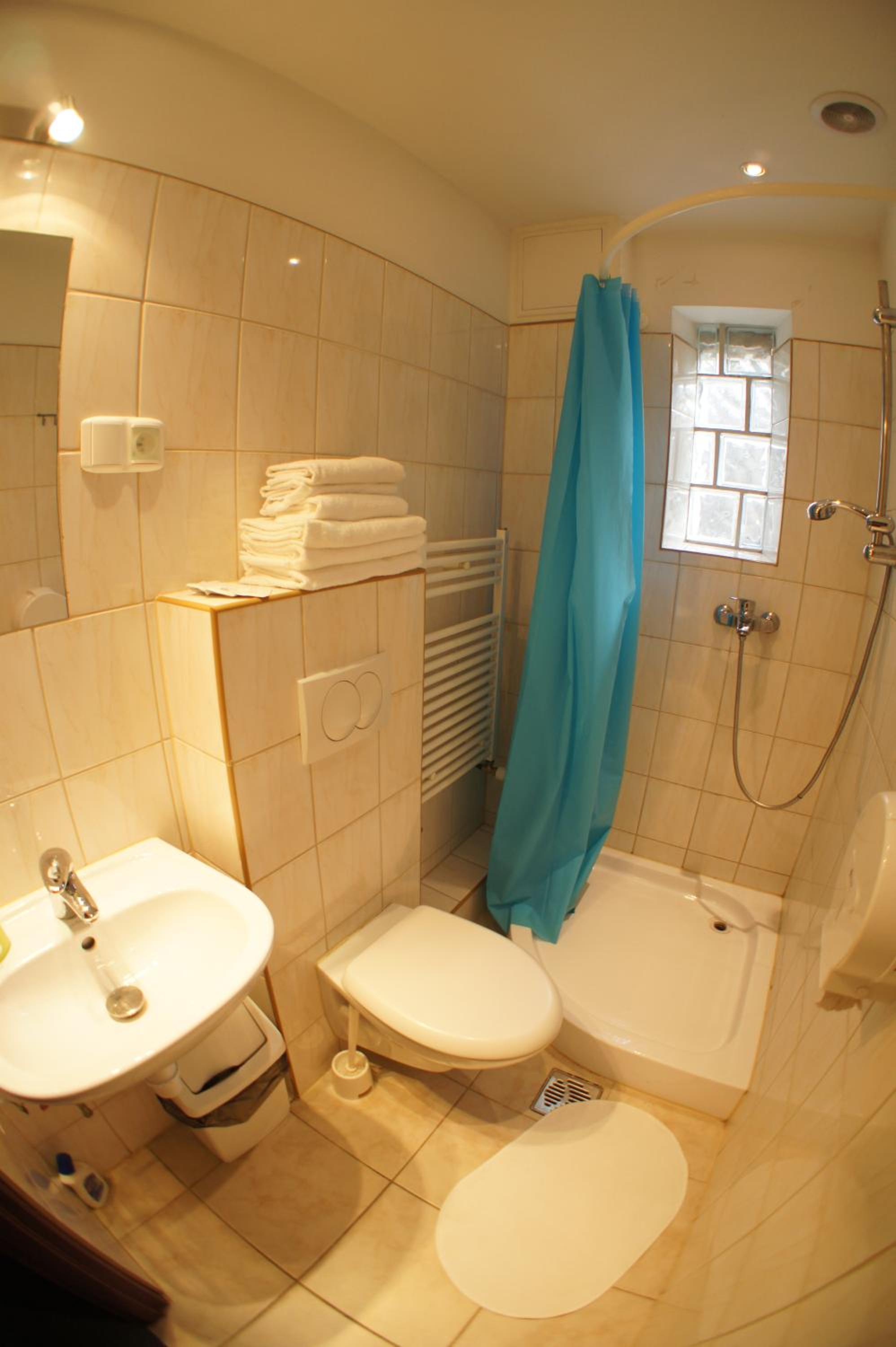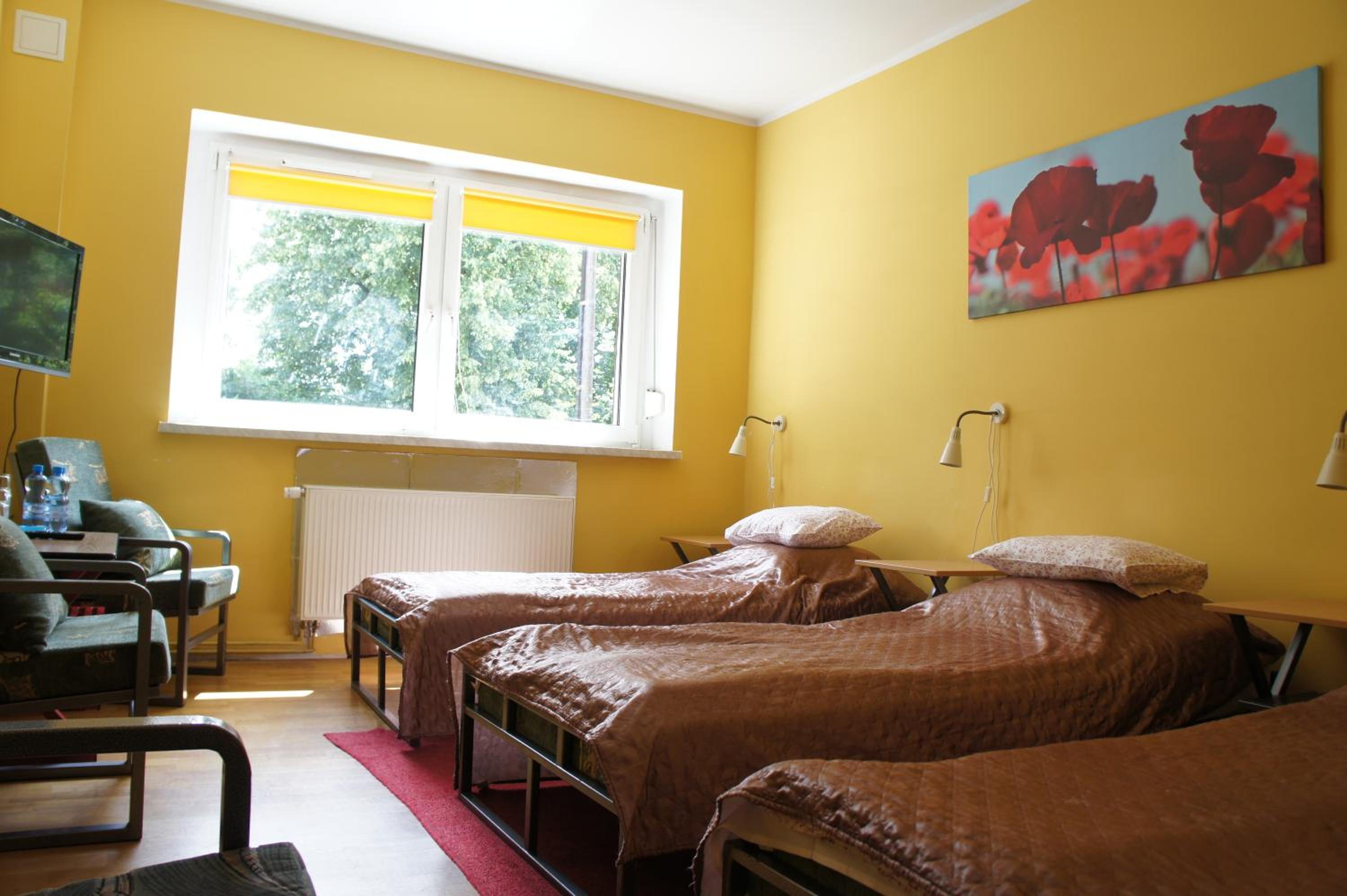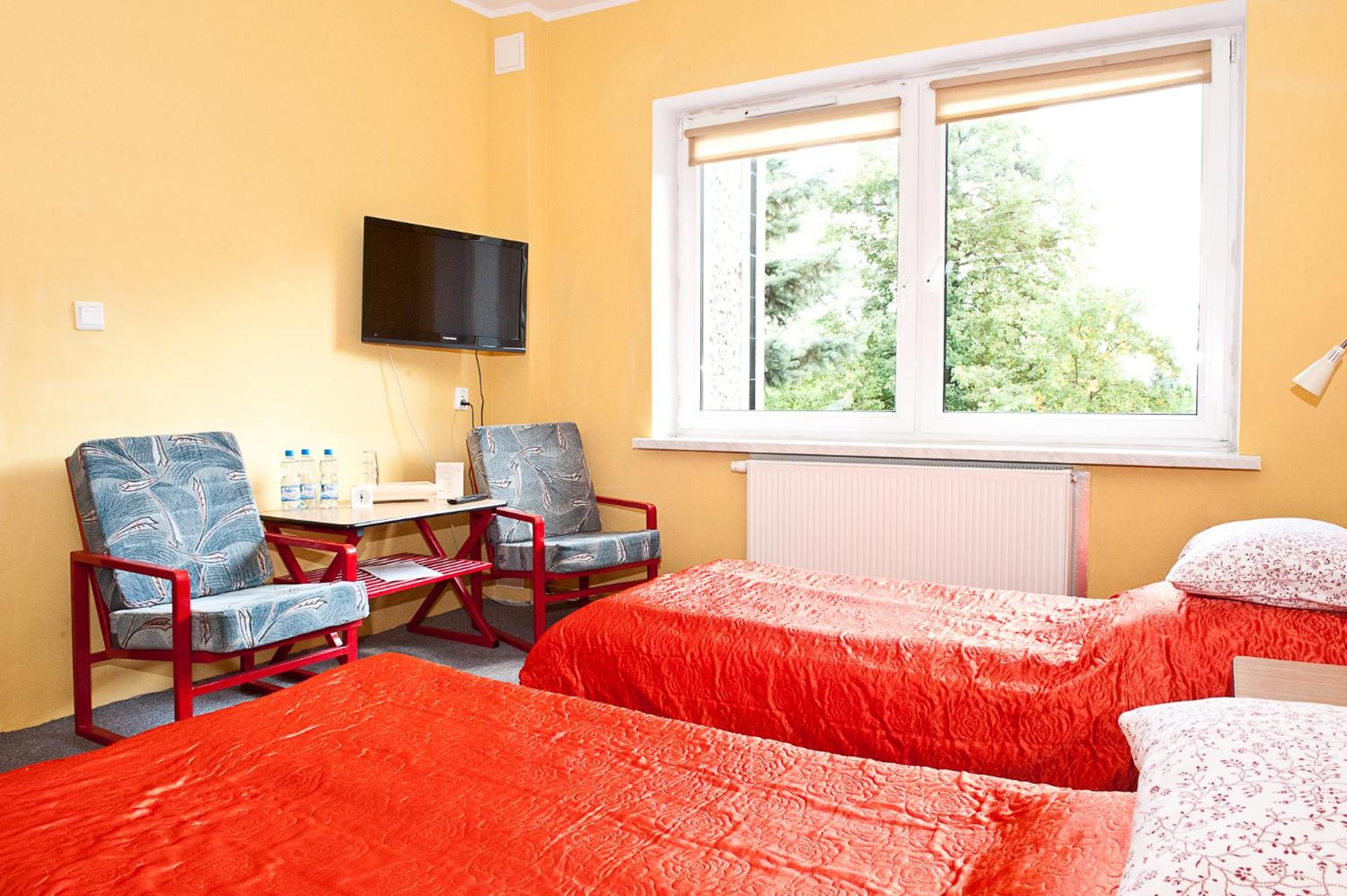 Pokój jednoosobowy,wszystko co potrzebowałam było. Ciepło,TV w pokoju,czajnik,stolik więc z rana kawa. Pokoje zamykane na klucz,łazienka prywatna na korytarzu również zamykana na klucz.
