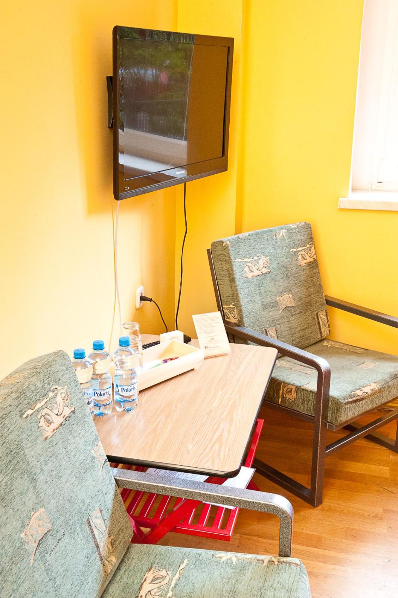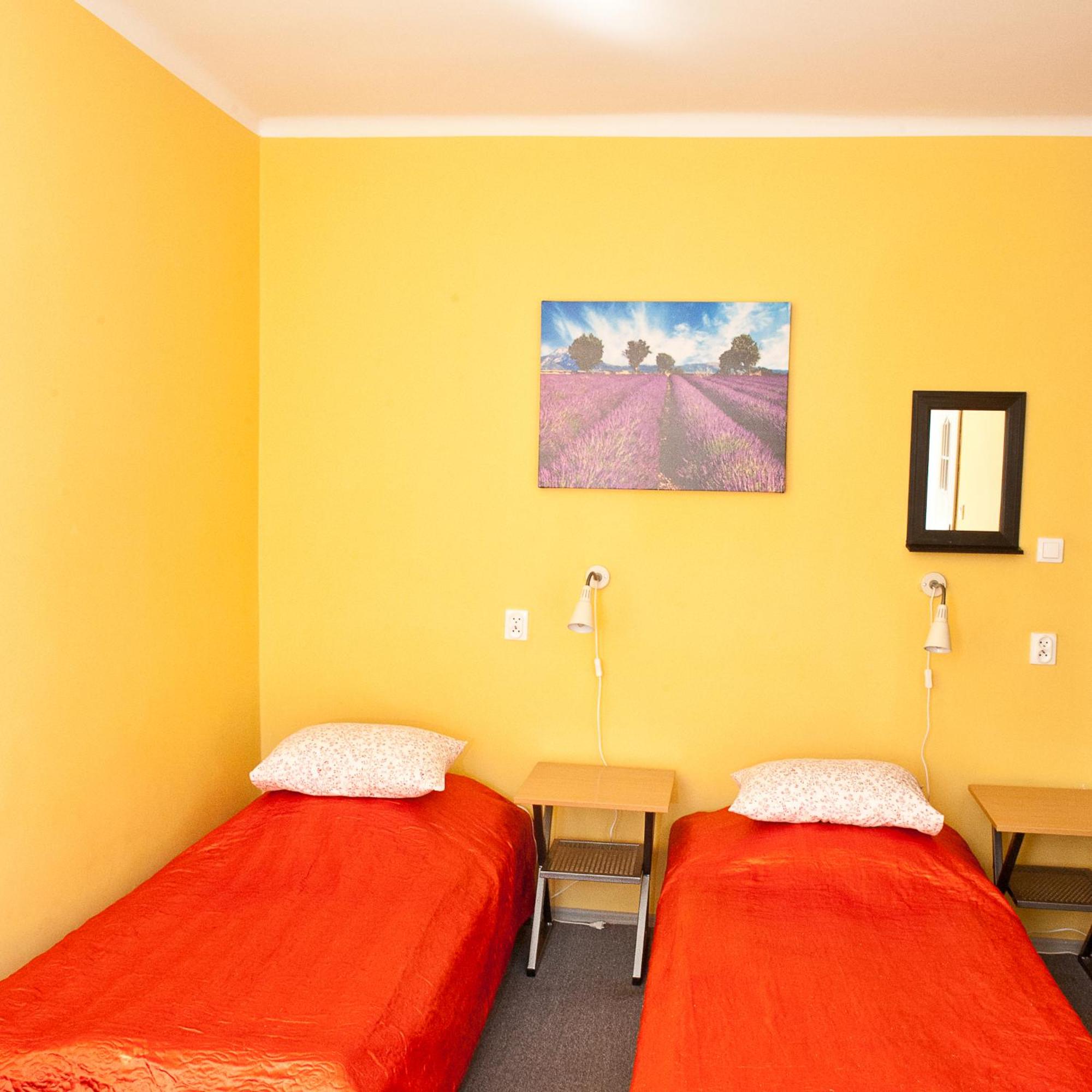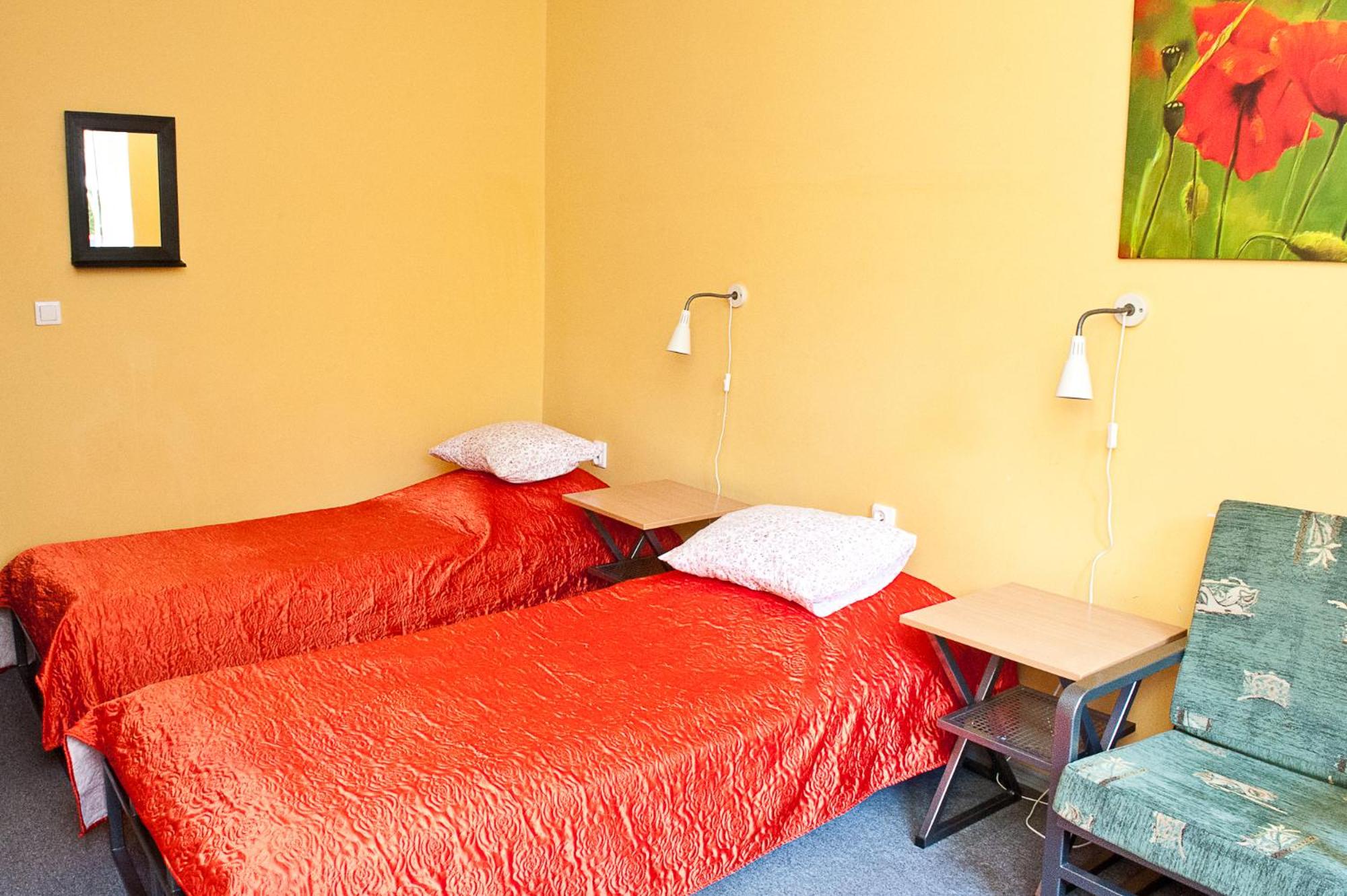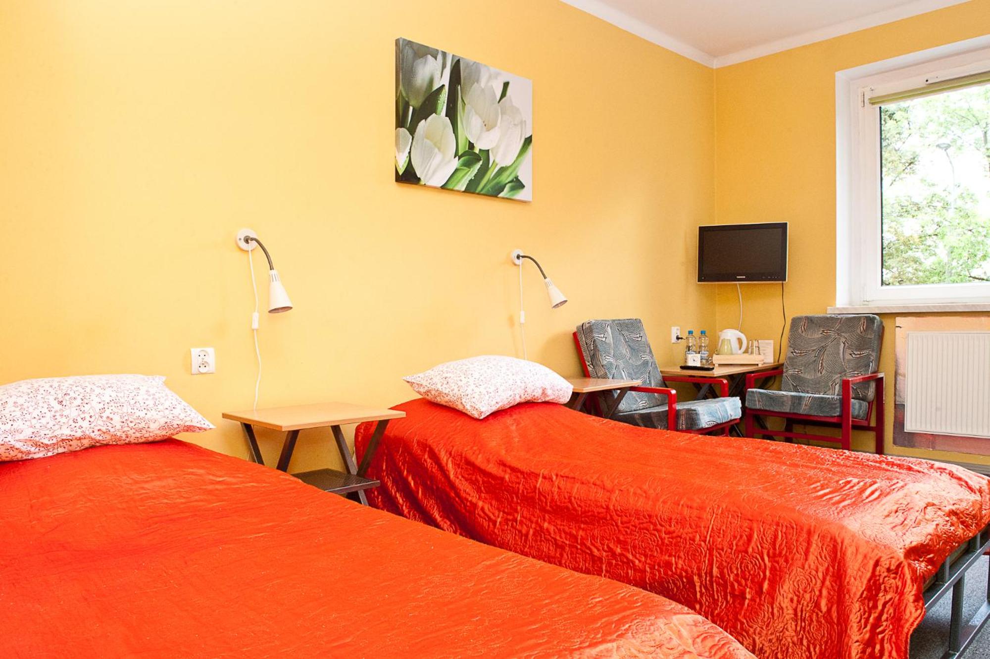 Pokój jednoosobowy,wszystko co potrzebowałam było. Ciepło,TV w pokoju,czajnik,stolik więc z rana kawa. Pokoje zamykane na klucz,łazienka prywatna na korytarzu również zamykana na klucz.