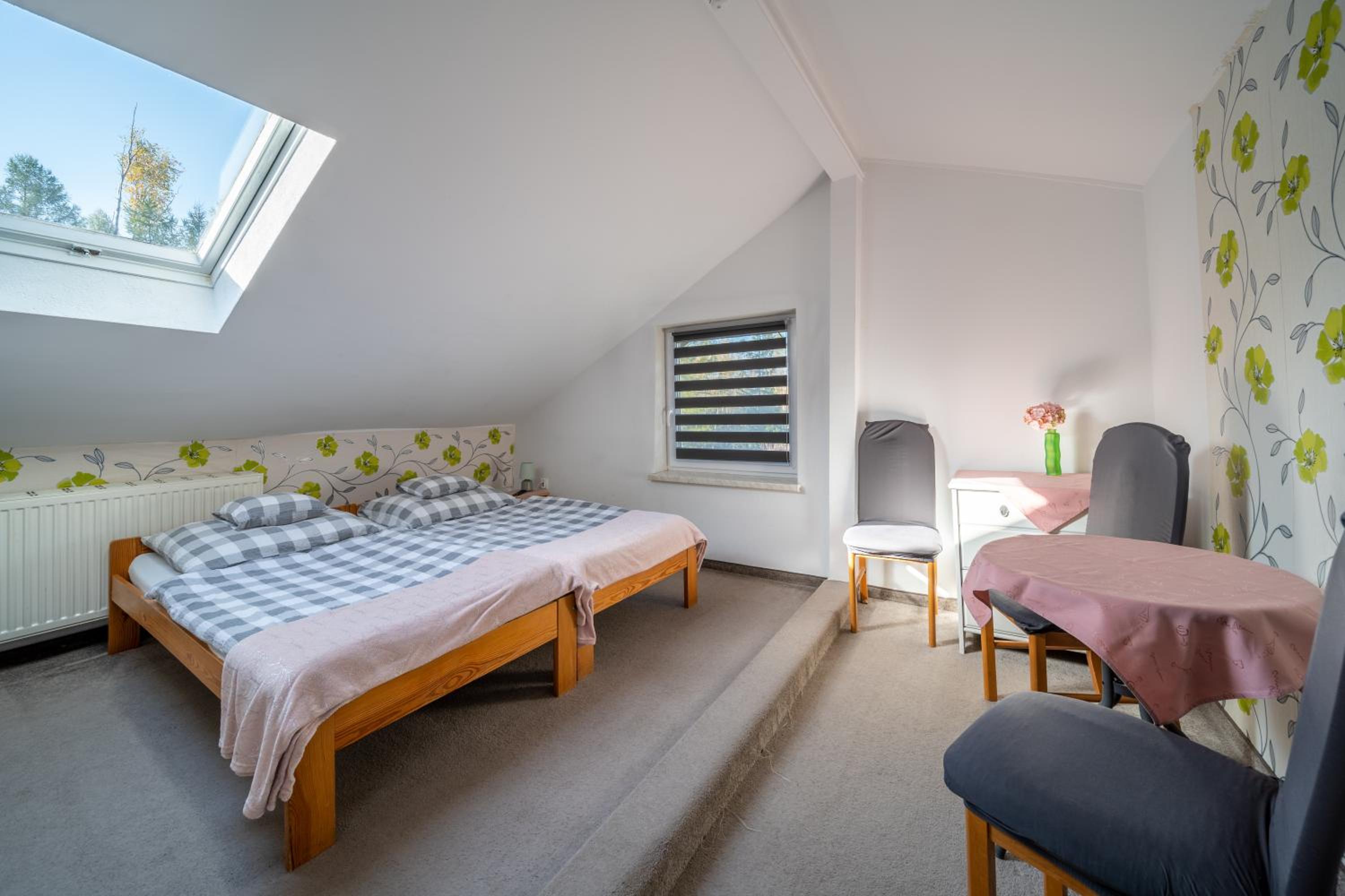 Pokój bardzo ładny i czysty, świeżutka pościel i ręczniki. Czuć czystkość w całym obiekcie, kuchnia doskonale zaopatrzona. Muszę też wspomnieć o pupilach Gospodarzy , bardzo przyjazne pieski witały Nas razem z Właścicielami 😀Dziękuję za miły pobyt , z chęcią wrócimy tam jeszcze raz. Polecam wszystkim