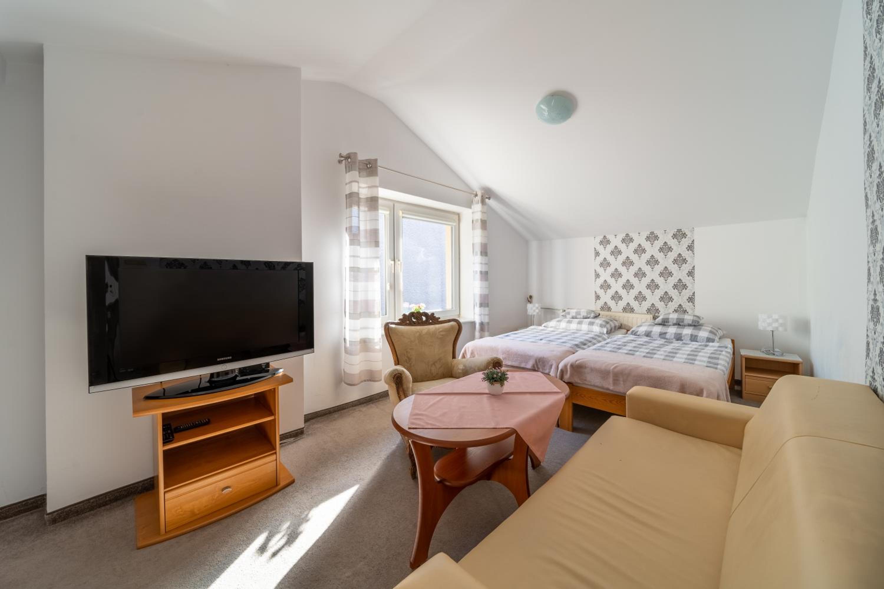 Charming Accommodations: Step into classically decorated rooms equipped with modern amenities like satellite TV and private bathrooms, ensuring a comfortable stay at Willa Kaliniec.