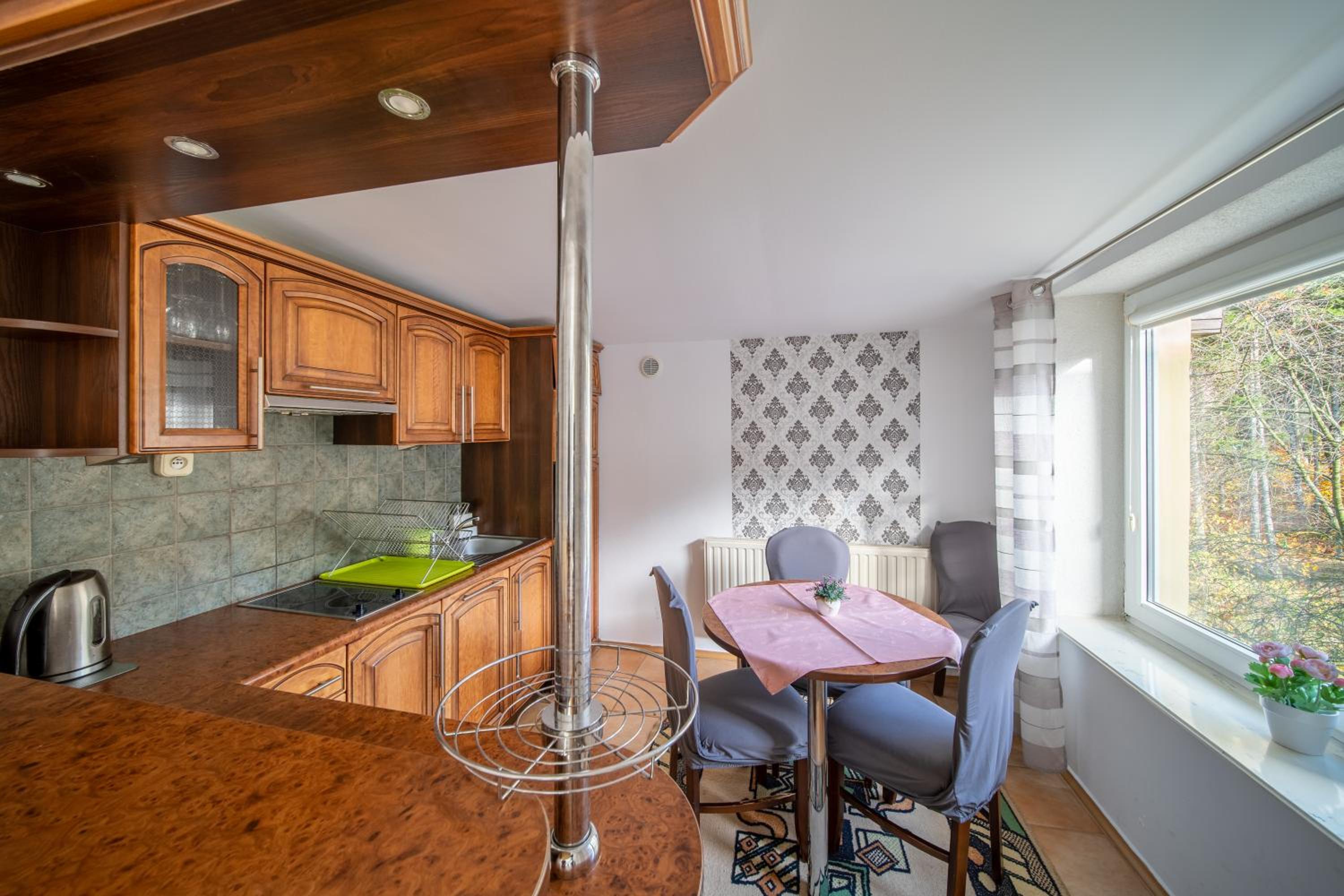 Willa odpowiada opisu i zdjęcie które podano na booking jest prawidłowe.Do centrum miasta jest blisko około 2 km ale jest możliwość dojazdu autobusem lub autem.Pokój bardzo czysty i ciepły.W pokoju wszystko jest co potrzeba pościel czysta, ręczniki czyste,papier toaletowy.Jest parking dla aut.Internet jest,czasem nie działa ale nie narzekam bo u nas działało,zależy od pogody jak będzie pracować internet.Wlaścicieli bardzo miła pani i bardzo miły pan.Jeszcze tam można mieszkać z pieskiem albo kotkiem.Wlaścicieli też mają 2 piesków i 2 kotów ale żadnych problemów dla klientów te zwierzaki nie robią oni mają swoje mieszkanie i swoje wejście.Kuchnia wszystko jest lodówka,mikrofalówka, czajnik, kubki, talerzy wszystko jest jak w domu, jest ręcznik kuchenny i płyn i gąbki gość nie musi przewozić cały dom że by odpocząć.polecam