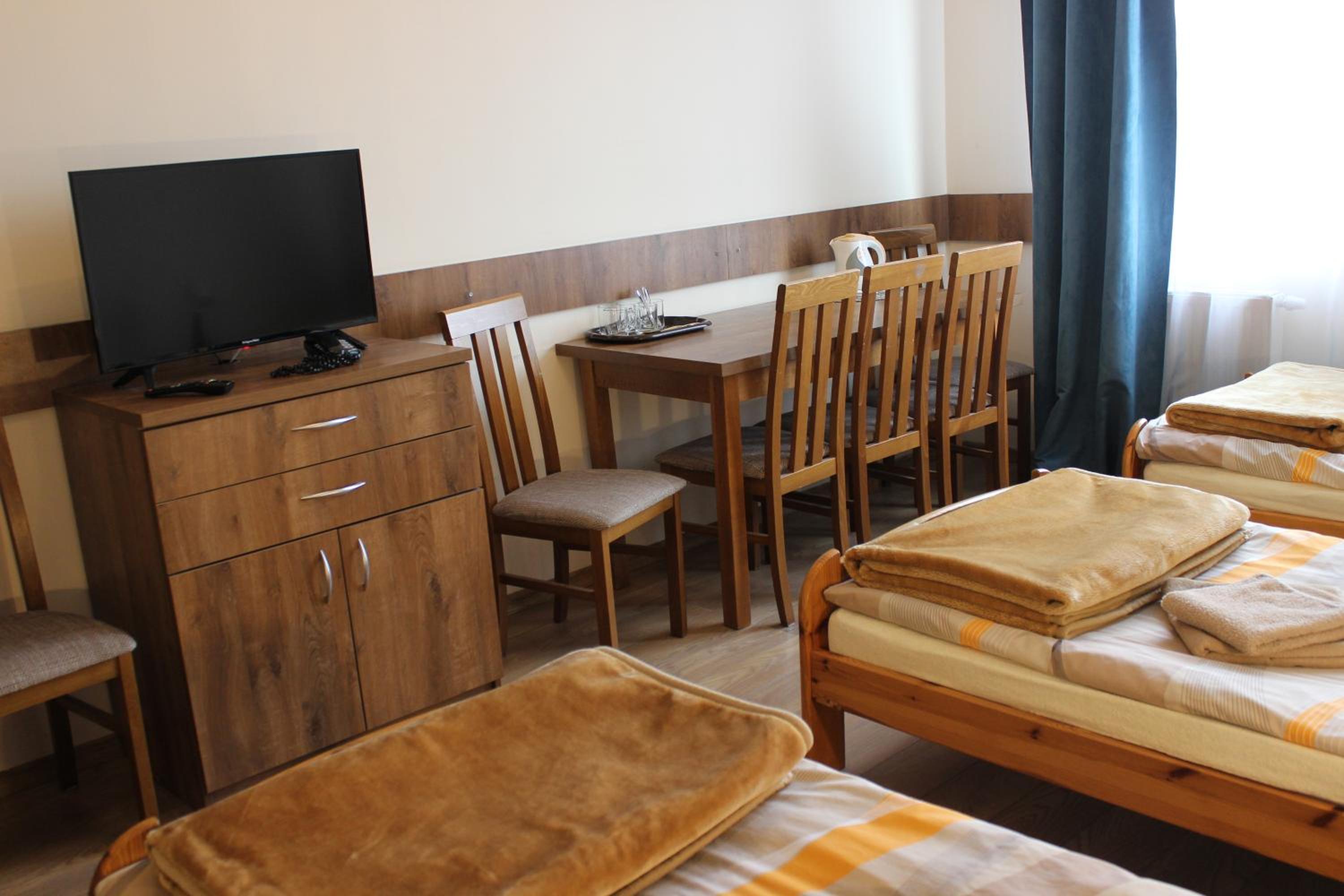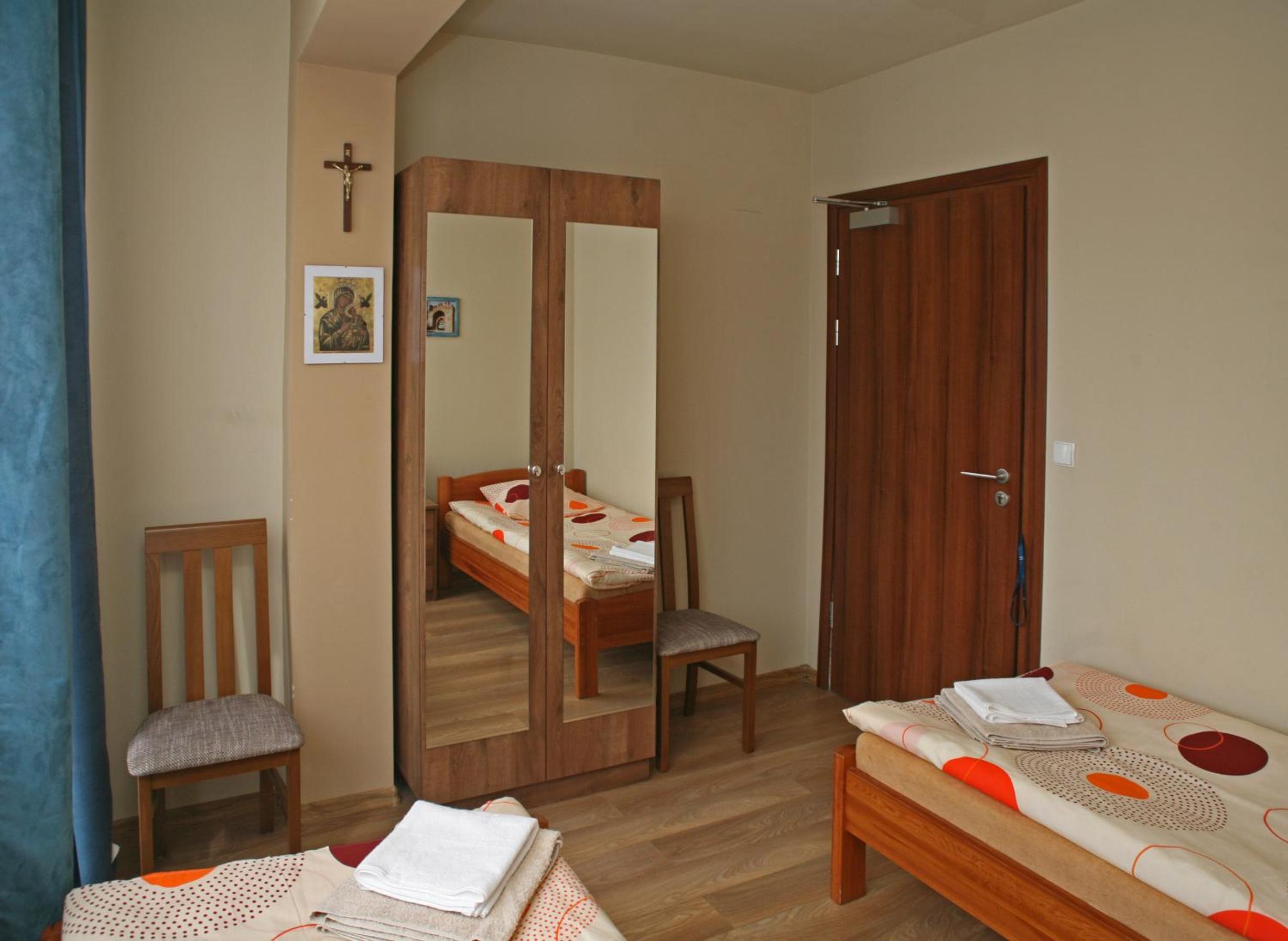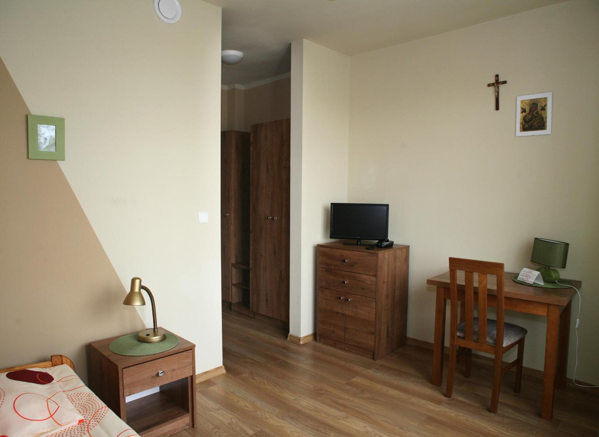 The classic-style rooms at Dom Pielgrzyma feature amenities like a flat-screen TV, telephone, and a private bathroom with a shower. Additionally, guests can relax in the shared common room or explore the garden with a children's playground.