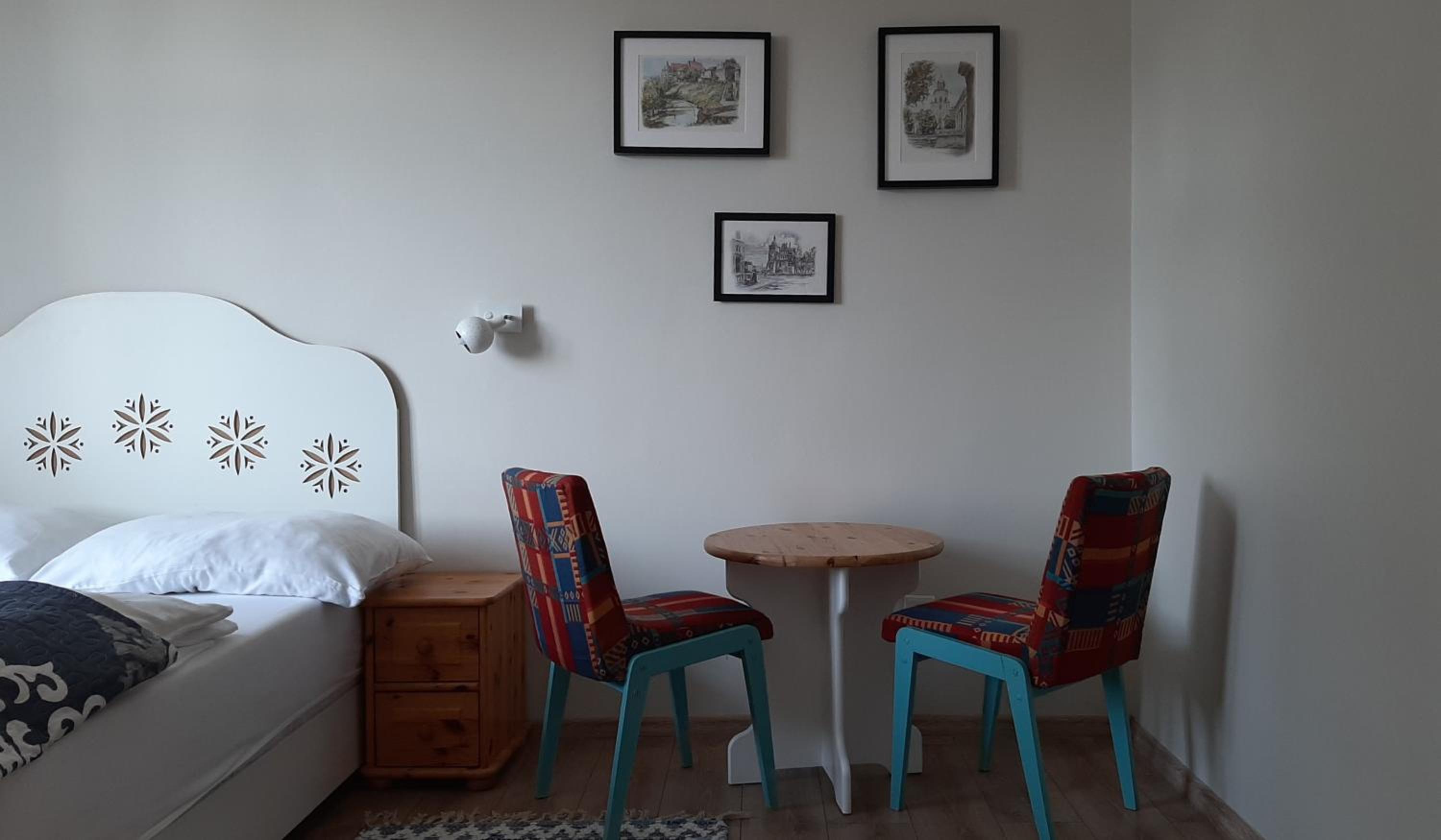 Pensjonat jest oryginalnie ozdobiony obrazami (niektóre można kupić) i starymi zdjęciami.