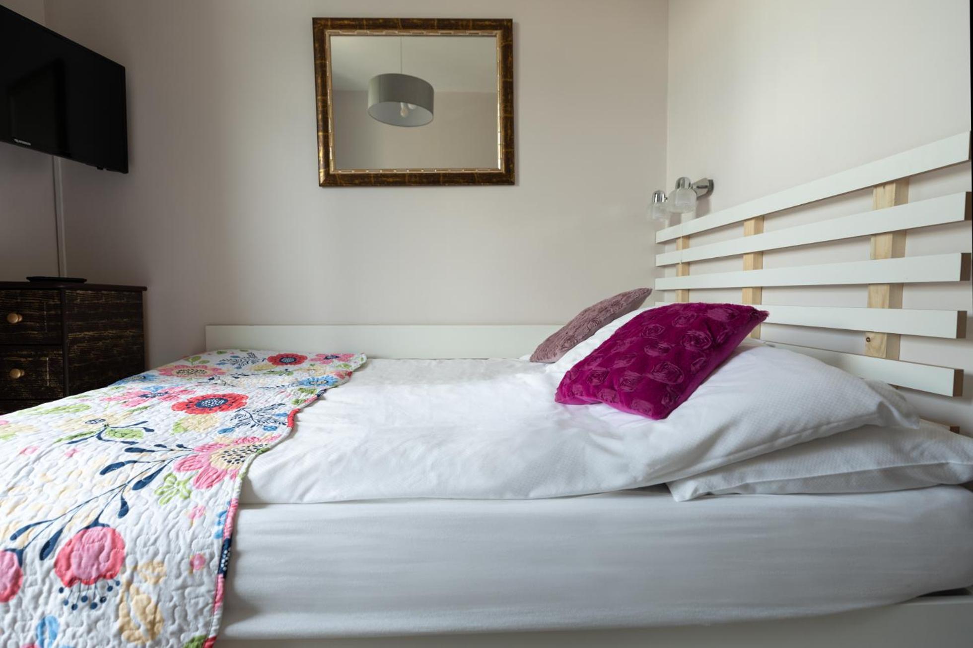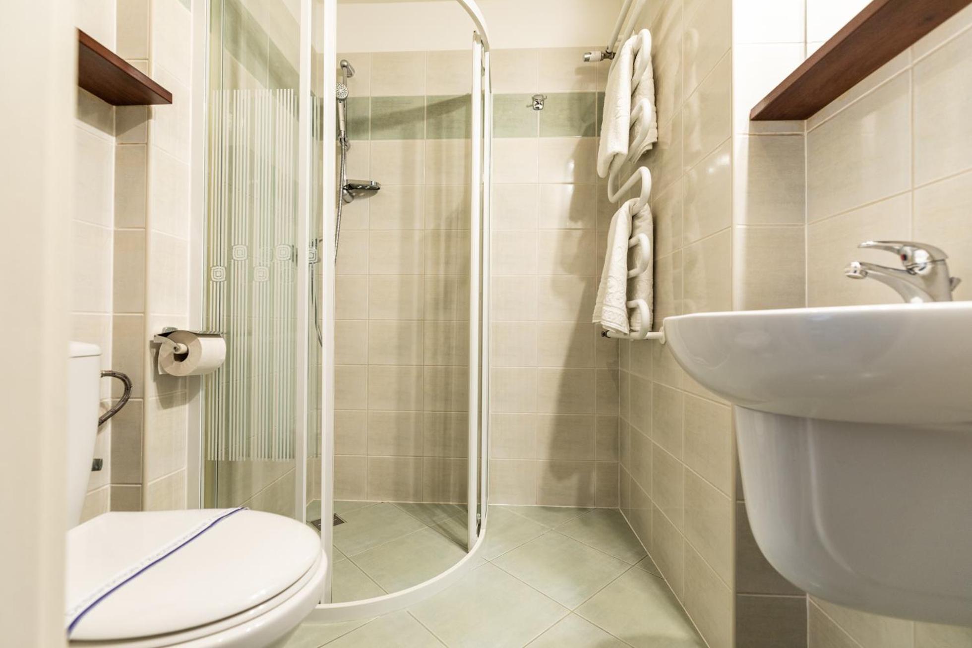 Wszystko ogólnie dobrze, pokoj czysty, zadbany, łazienka również, śniadania smaczne, parking przy budynku, jednak nikt nie zaznacza lokalizacji obiektu od centrum, niby 650m w linii prostej, ale nie jest zaznaczone, że to cały czas pod dużą górę, nie każdy da radę kilkukrotnie w ciagu dnia wejść...i to najbardziej przeszkadzało i warto taką informację umieścić na stronie.