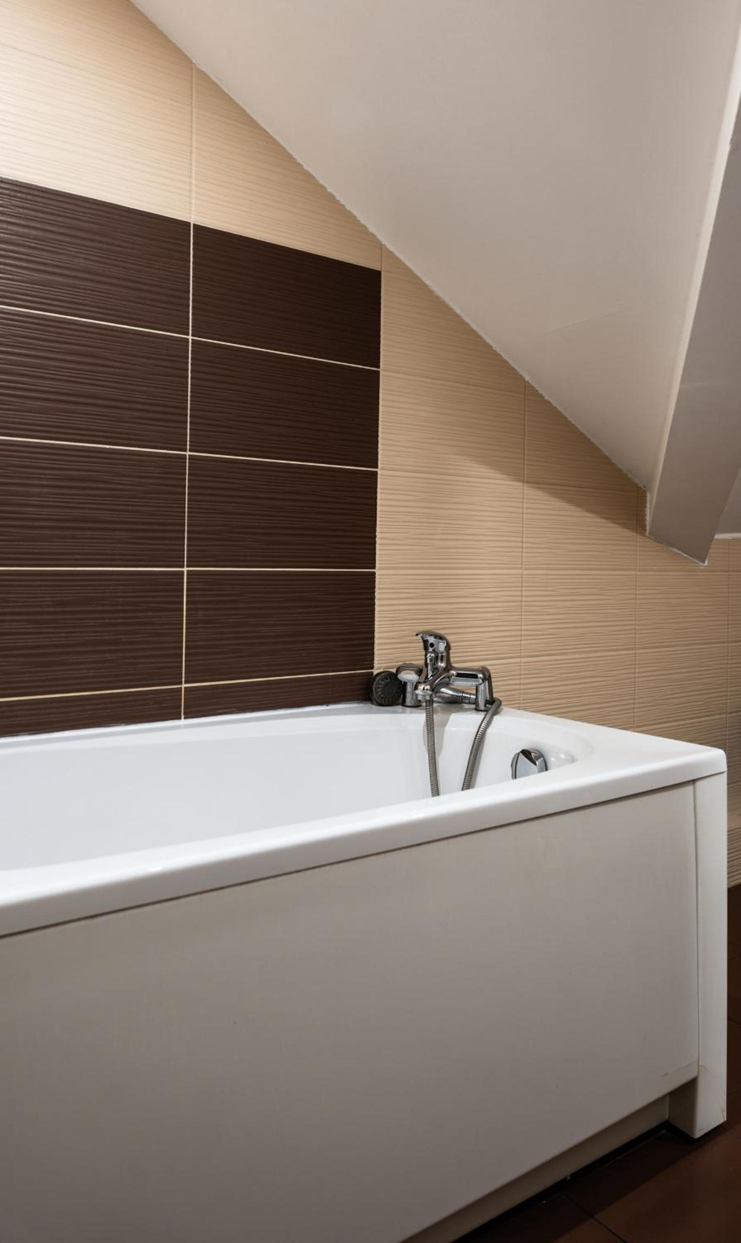 Eins von den Zimmern die wir da hatten, war im Badezimmer komplett voller Schimmel gewesen. Haben kein anderes dafür angeboten bekommen. Parken war auch unmöglich. Hintereinander in der Auffahrt, sodass niemand sein Auto frei bewegen konnte. Bettlaken mit gelben Flecken ( sah aus wie Urin) zwischen den Einzelnen Betten war es dreckig. Sah aus wie erbrochenes! Duschbrause kalkig und auch voller Schimmel.