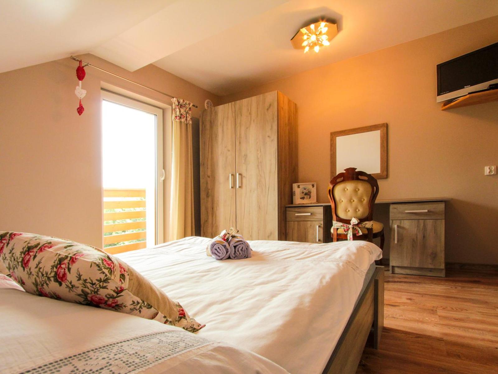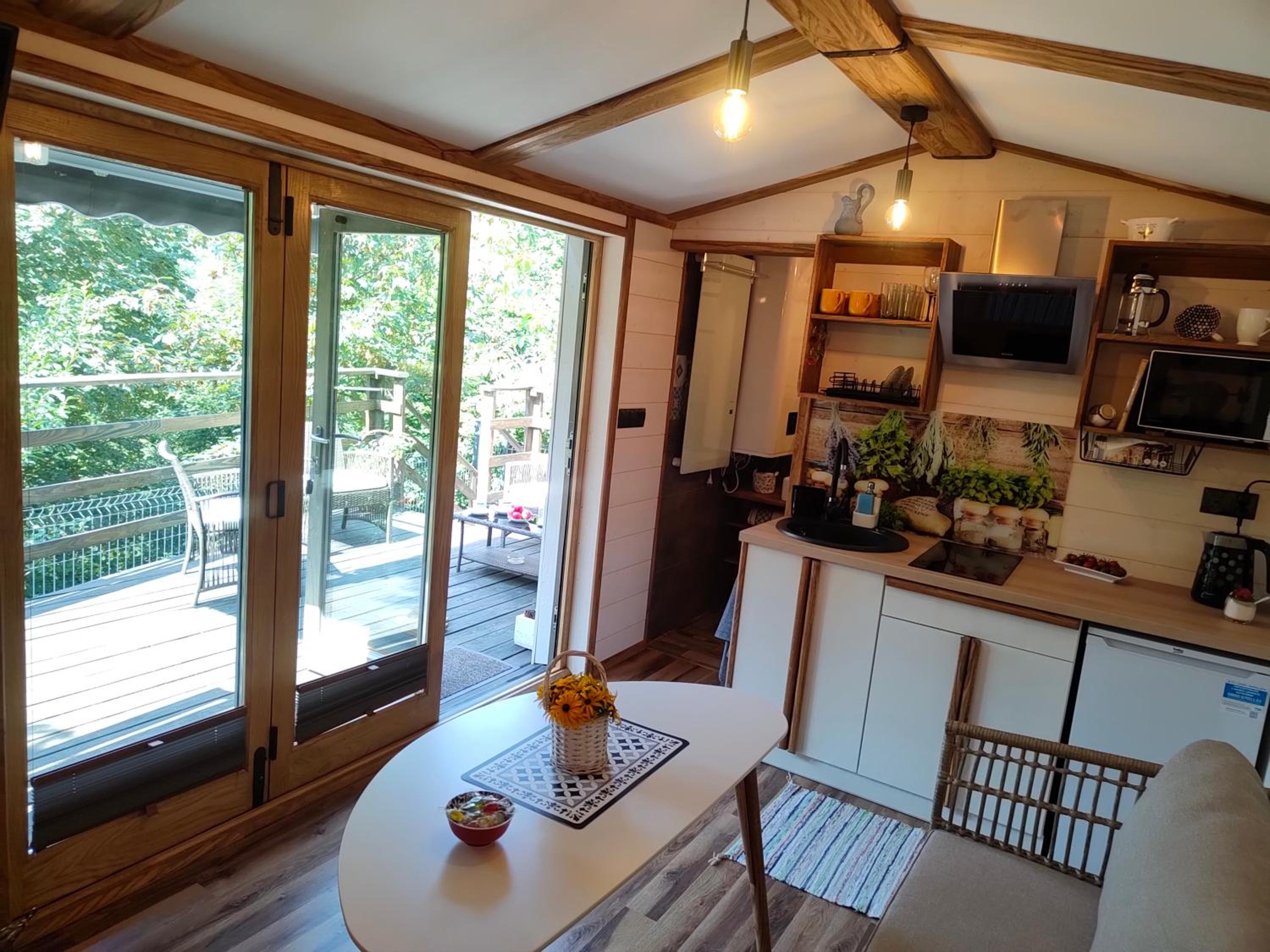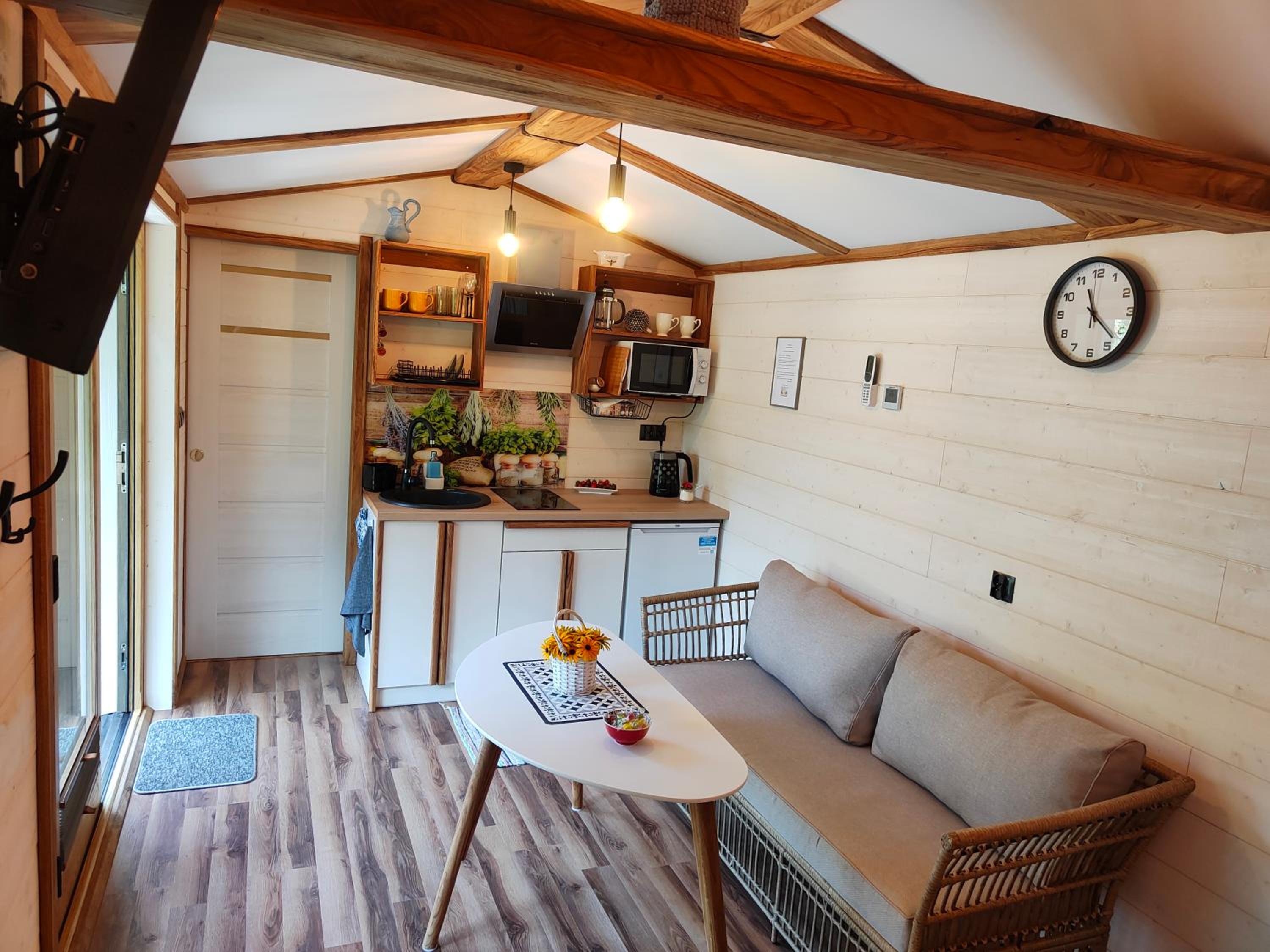 Podobało mi się wszystko. Domek pięknie położony w górach, z widokiem na przyrodę z tarasu. W środku wygodnie i komfortowo. Wszystko co potrzebne do pobytu, znajdowało się w środku. Miejsce świetne do wypadów w góry i do okolicznych miejscowości. Na plus widok owiec rano pod tarasem.
