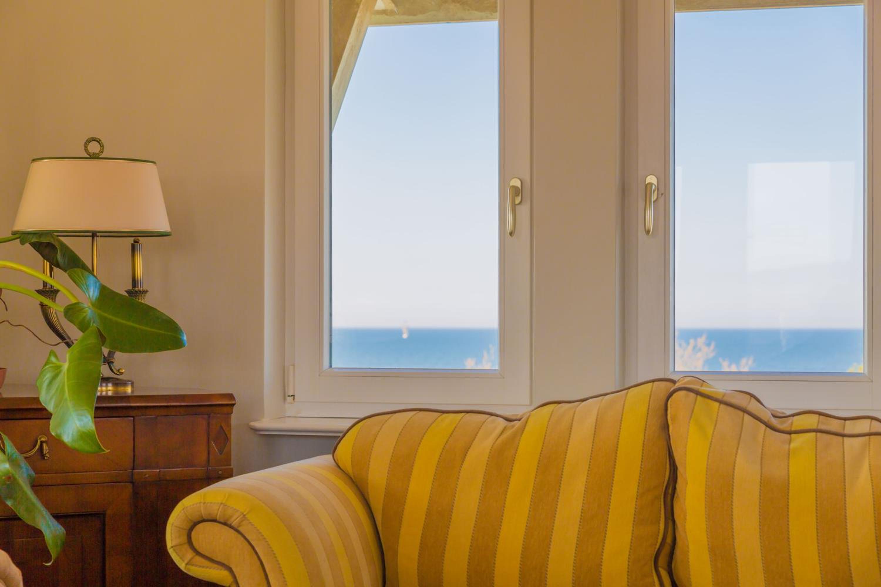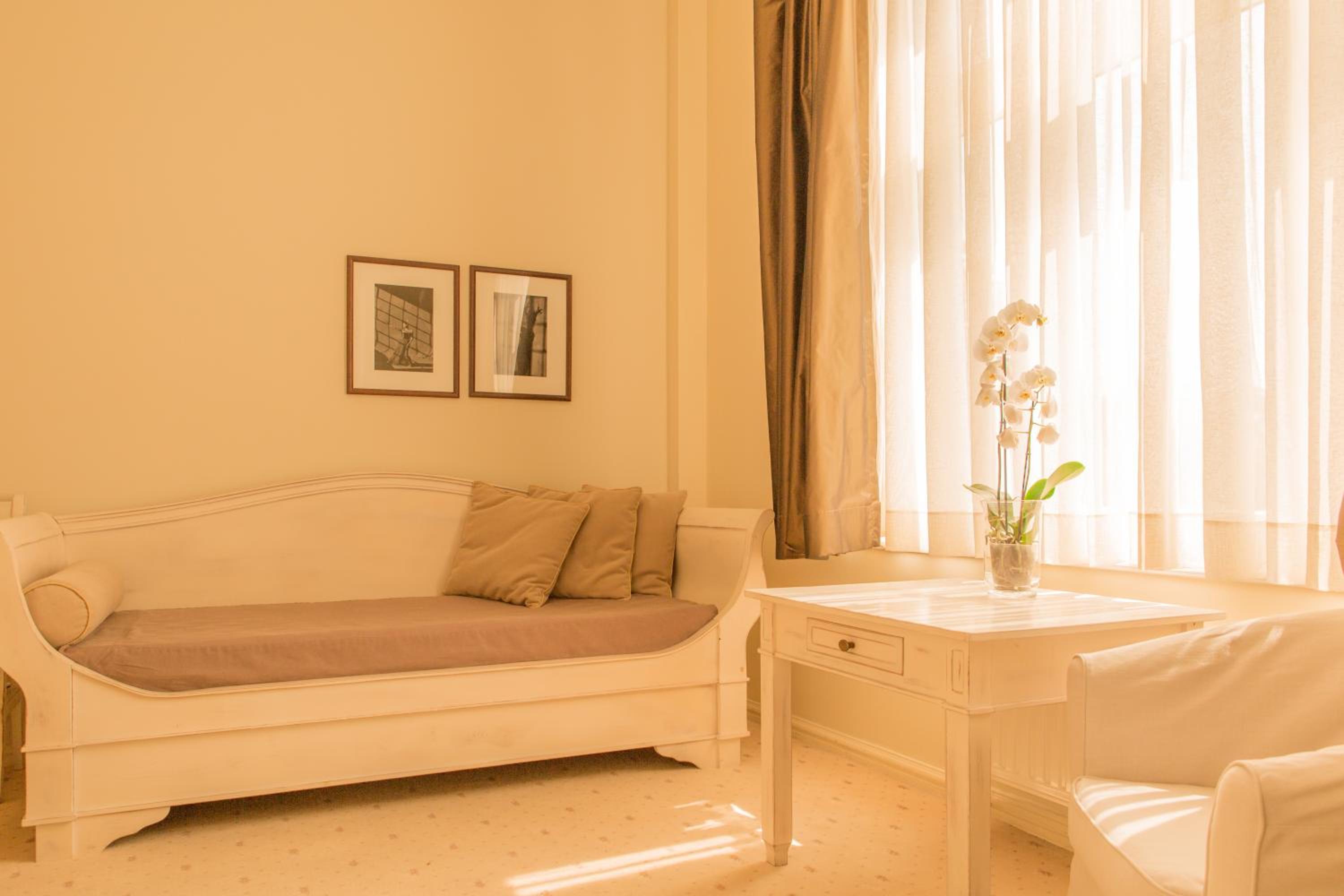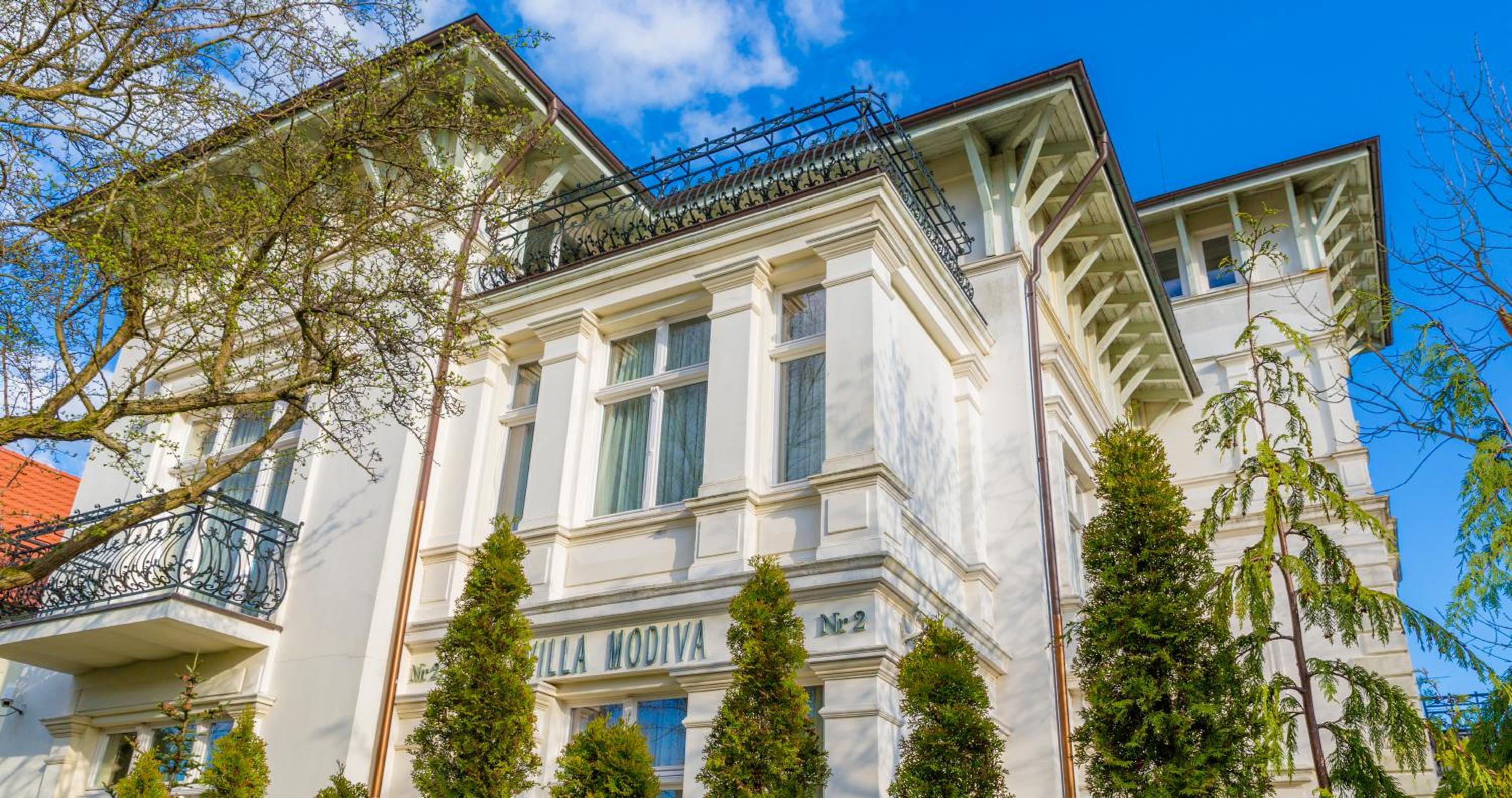 The rooms and apartments at Villa Modiva boast elegant white tones and designer furniture, creating a chic and modern atmosphere. Guests can unwind in the 4-person sauna with a dedicated relaxation area, perfect for rejuvenating after a day of exploring the town or lounging on the nearby beach.
