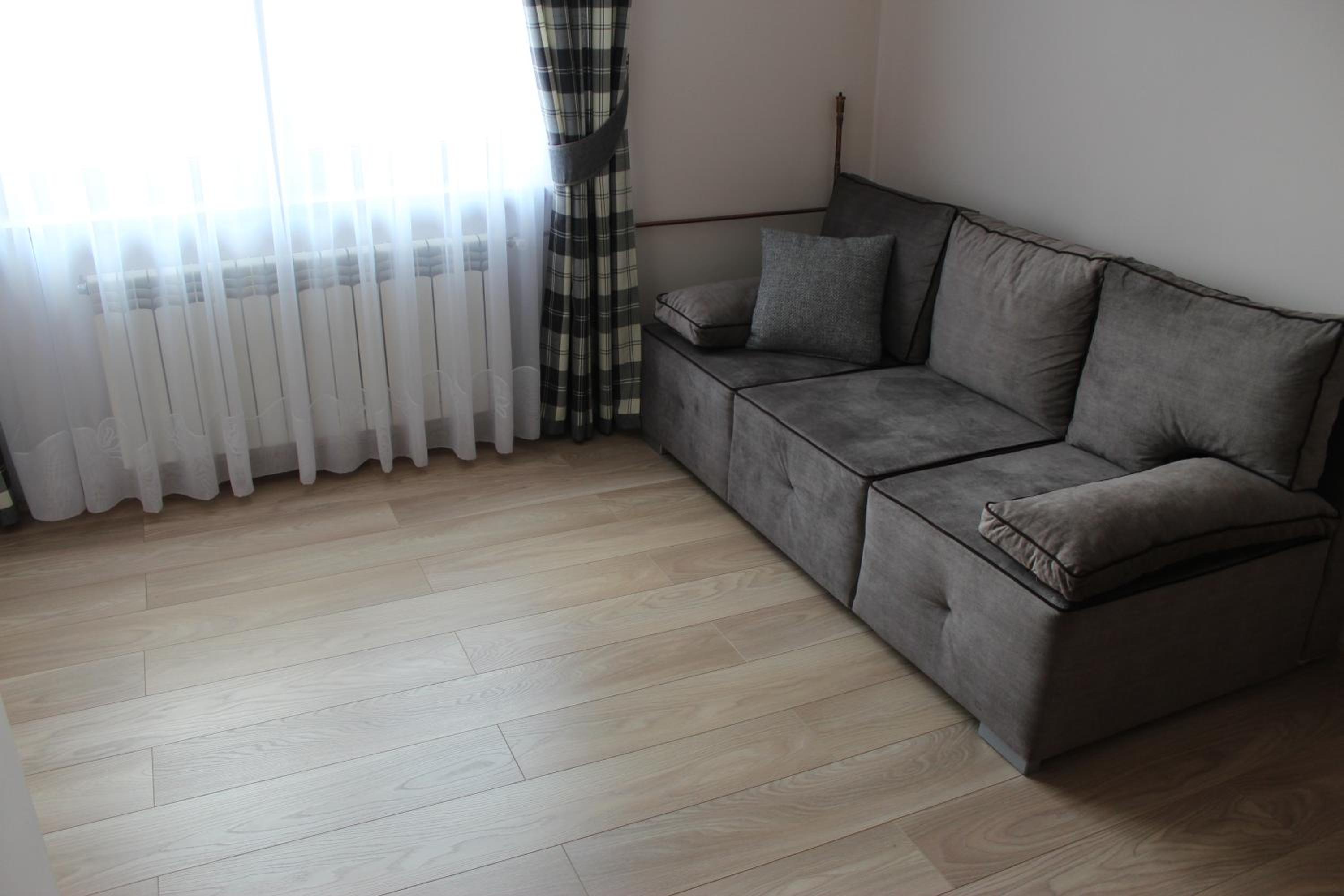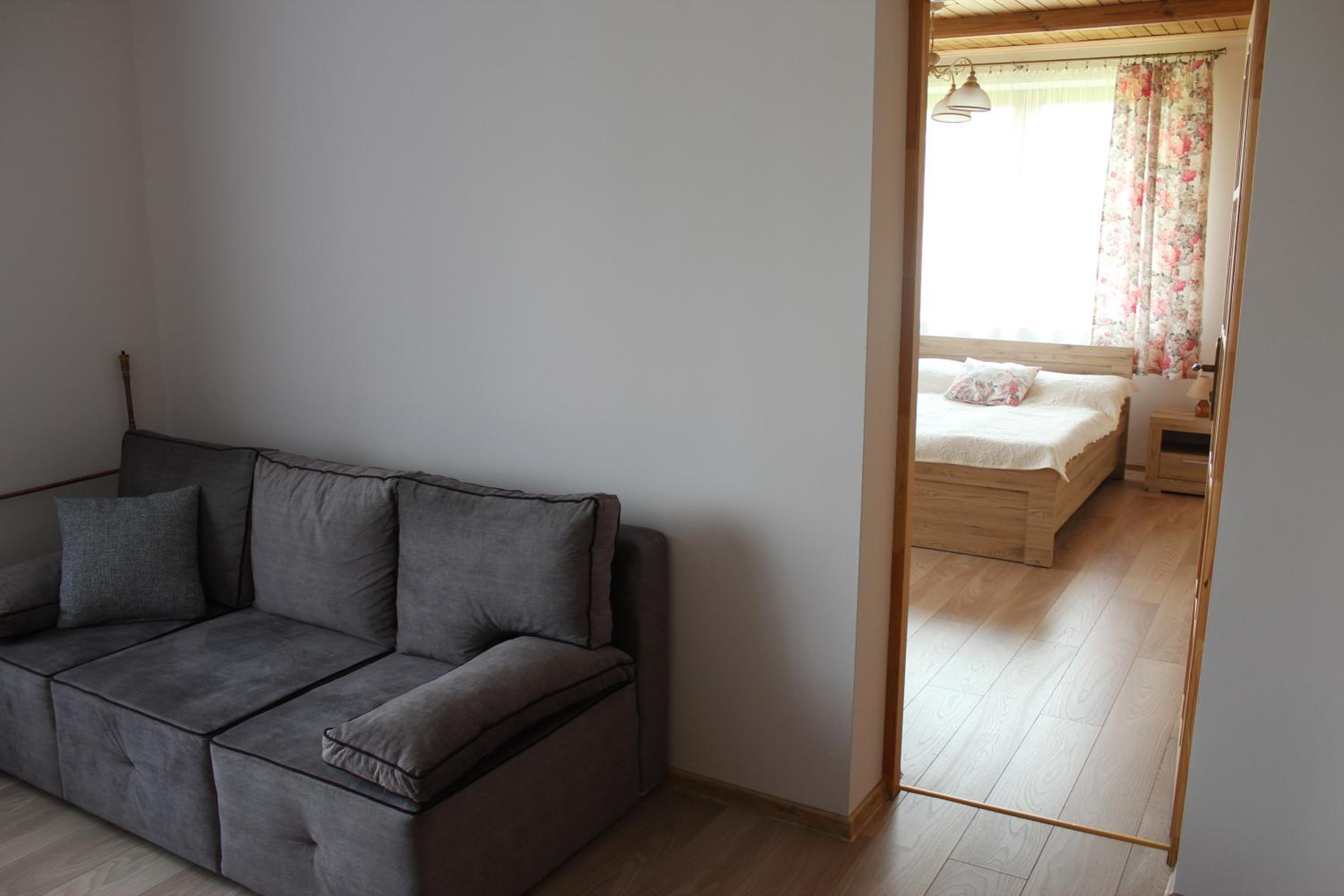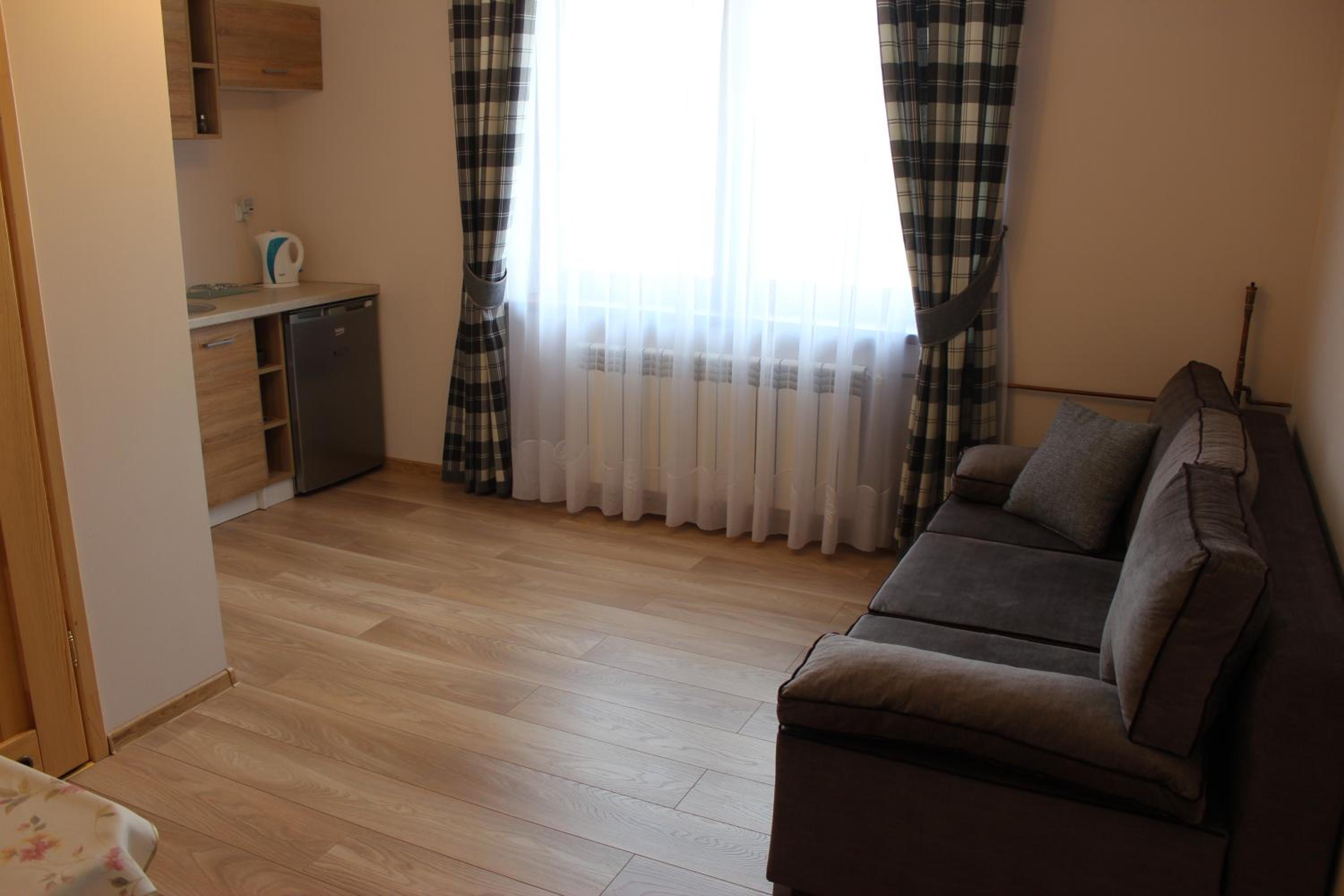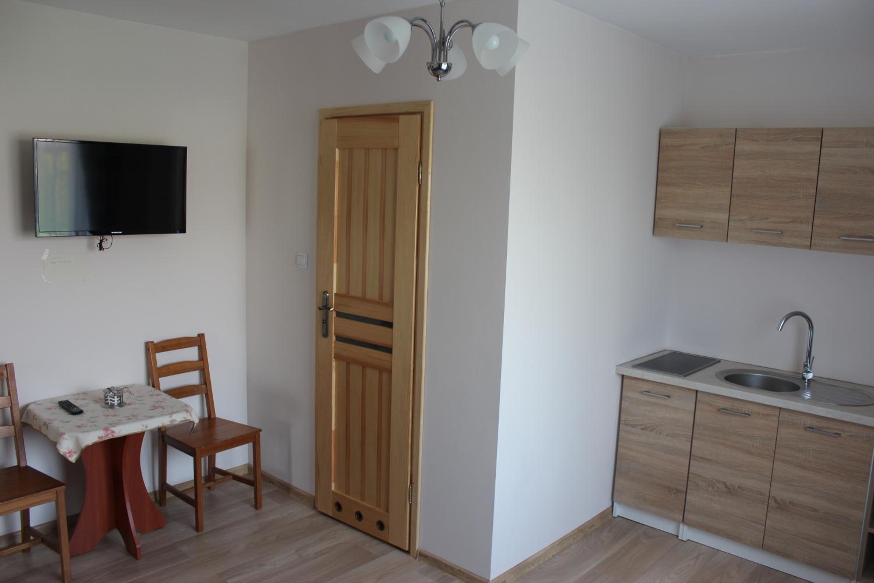 Comfortable apartment for families ( mine was 2+3 ). The kitchen is equipped with basic kitchen items ( pots, pans, cutlery, kettle, plates ) + microwave oven in the corridor. There is a room for leaving ski equipment to dry. Close to Kotelnica ski lift + ski-bus stop nearby.