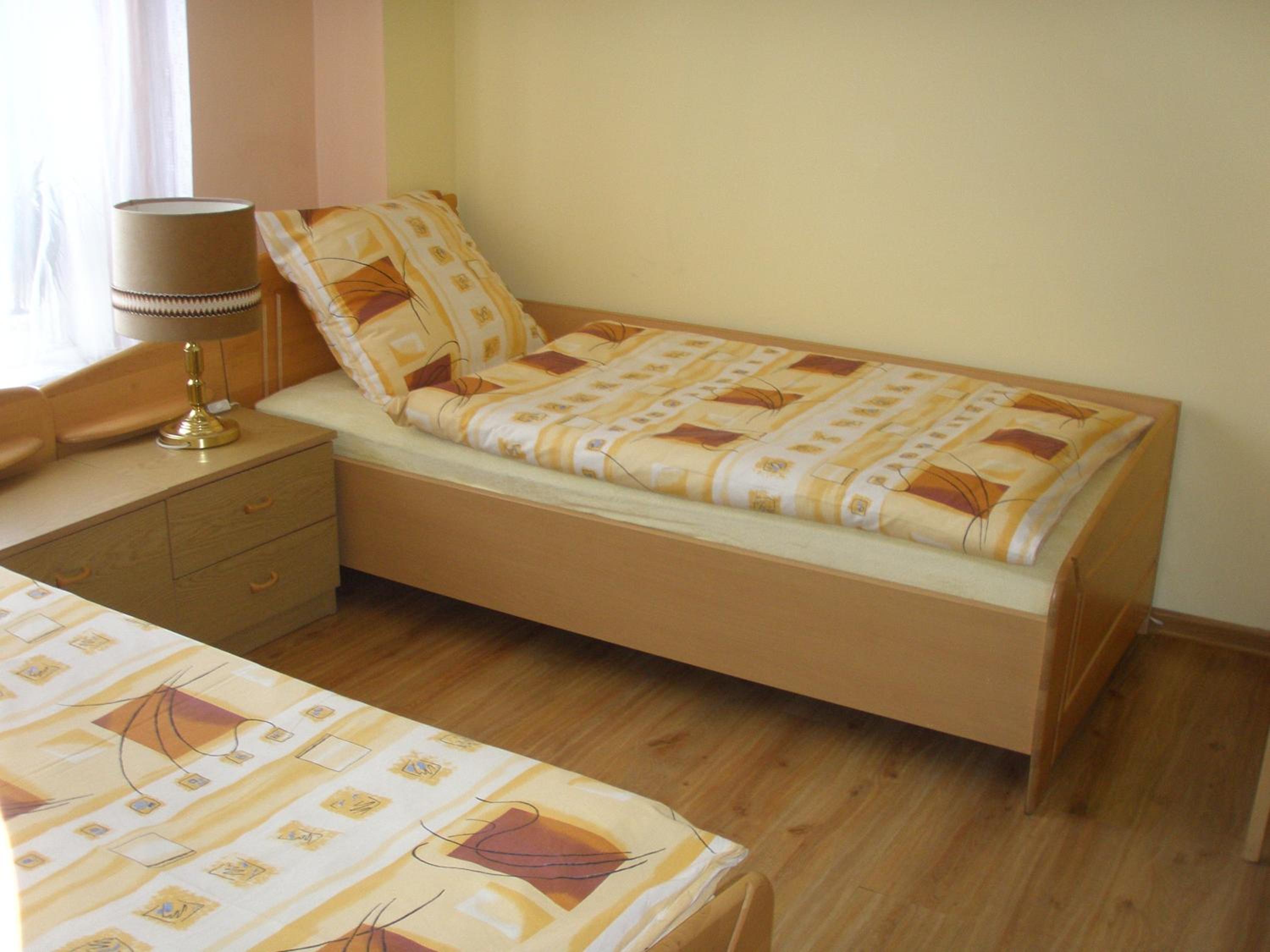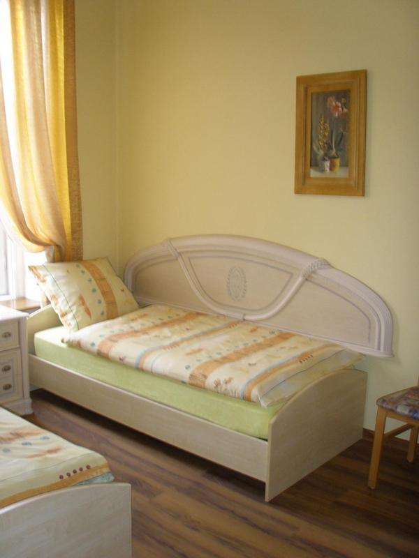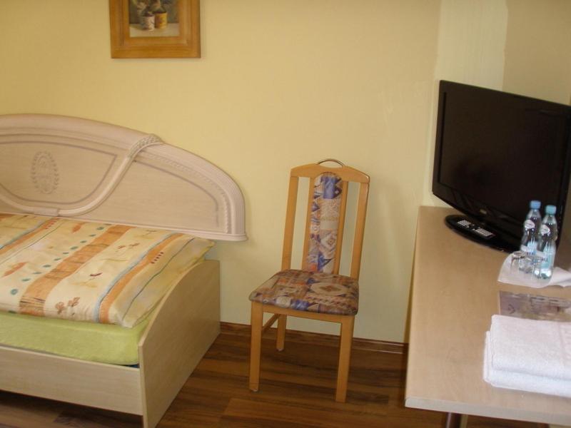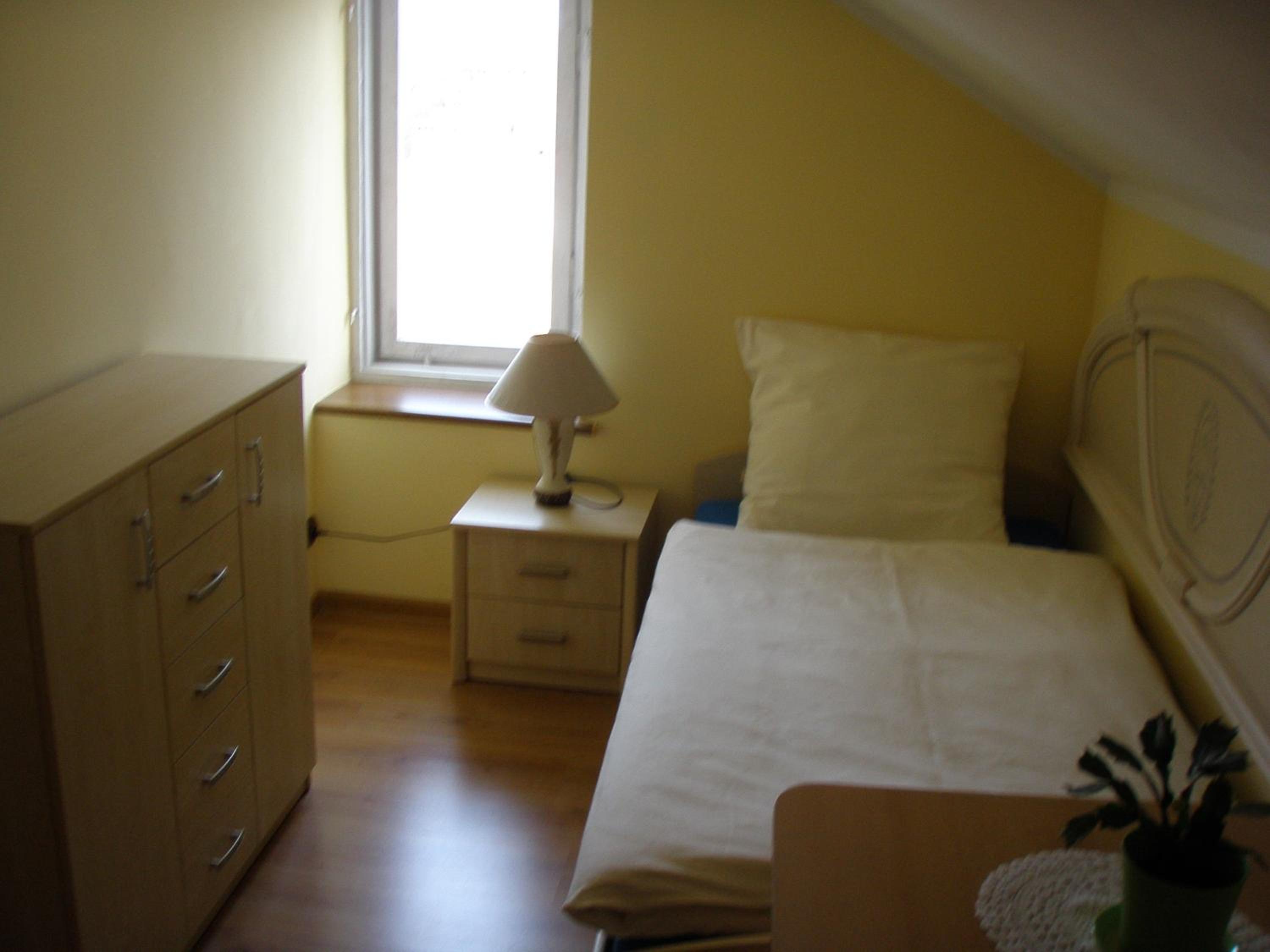 Zimmer groß, sauber und zweckmäßig eingerichtet. Kostenloser Parkplatz vor der Tür. Zentrum fußläufig zu erreichen.