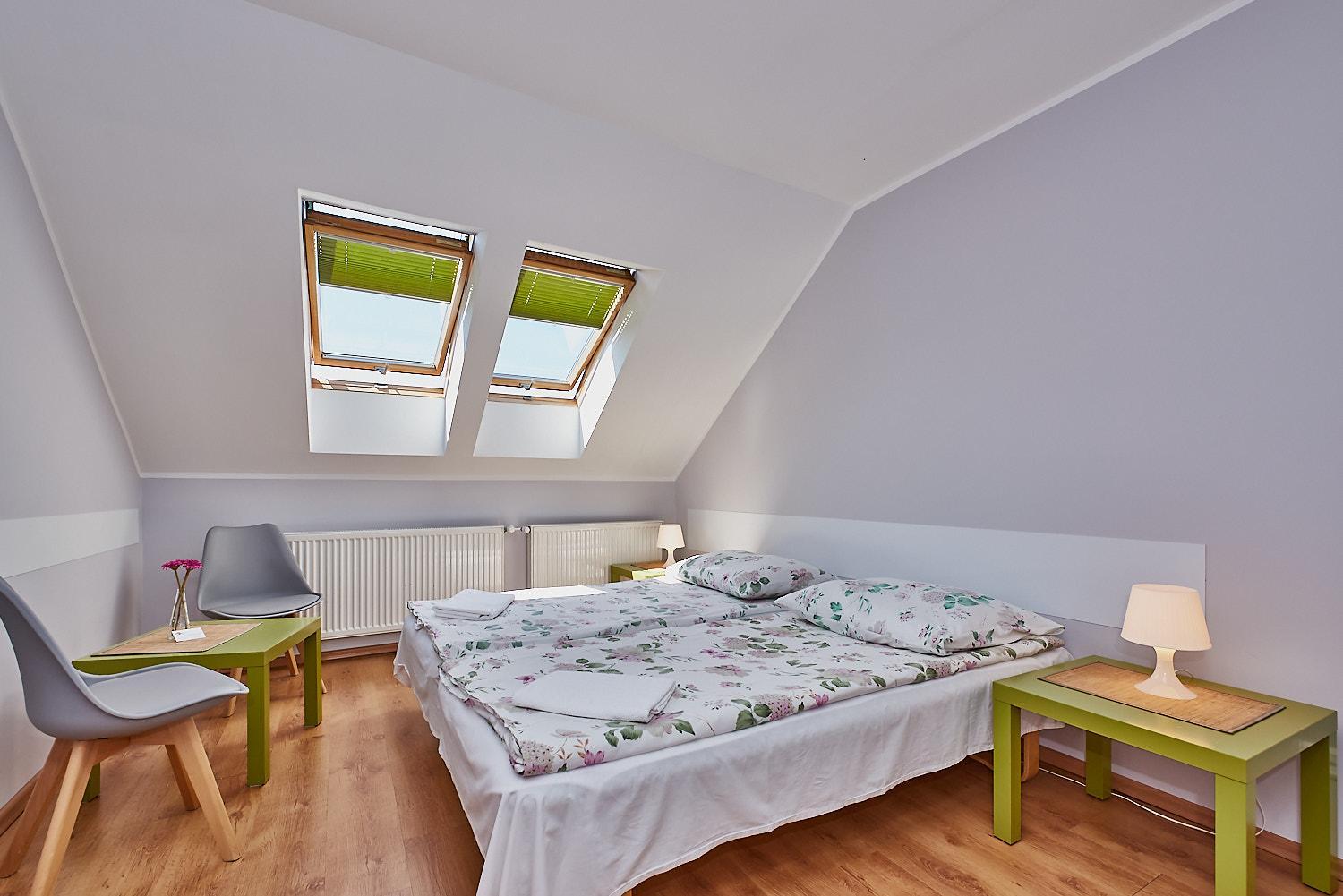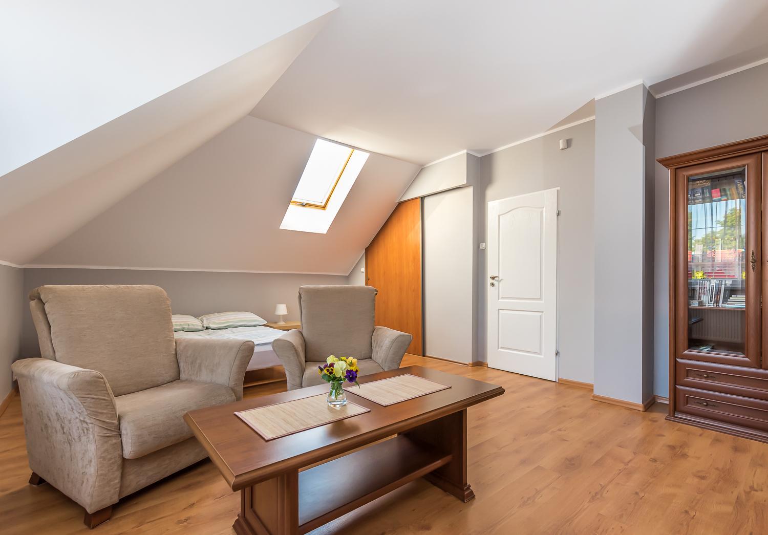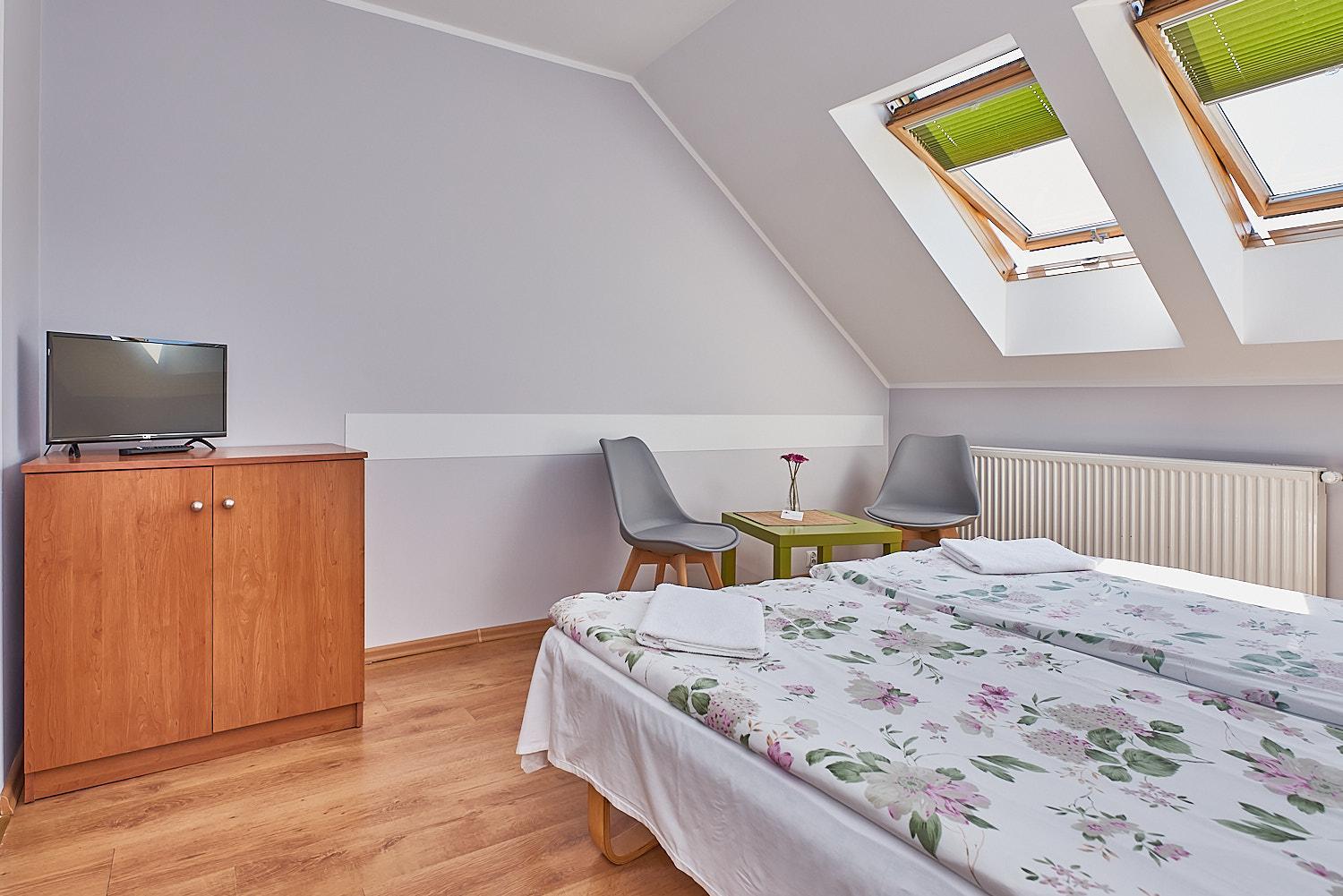 Oddzielne wejście do pokoju, duże okna dachowe, lokalizacja, bardzo miła gospodyni obiektu