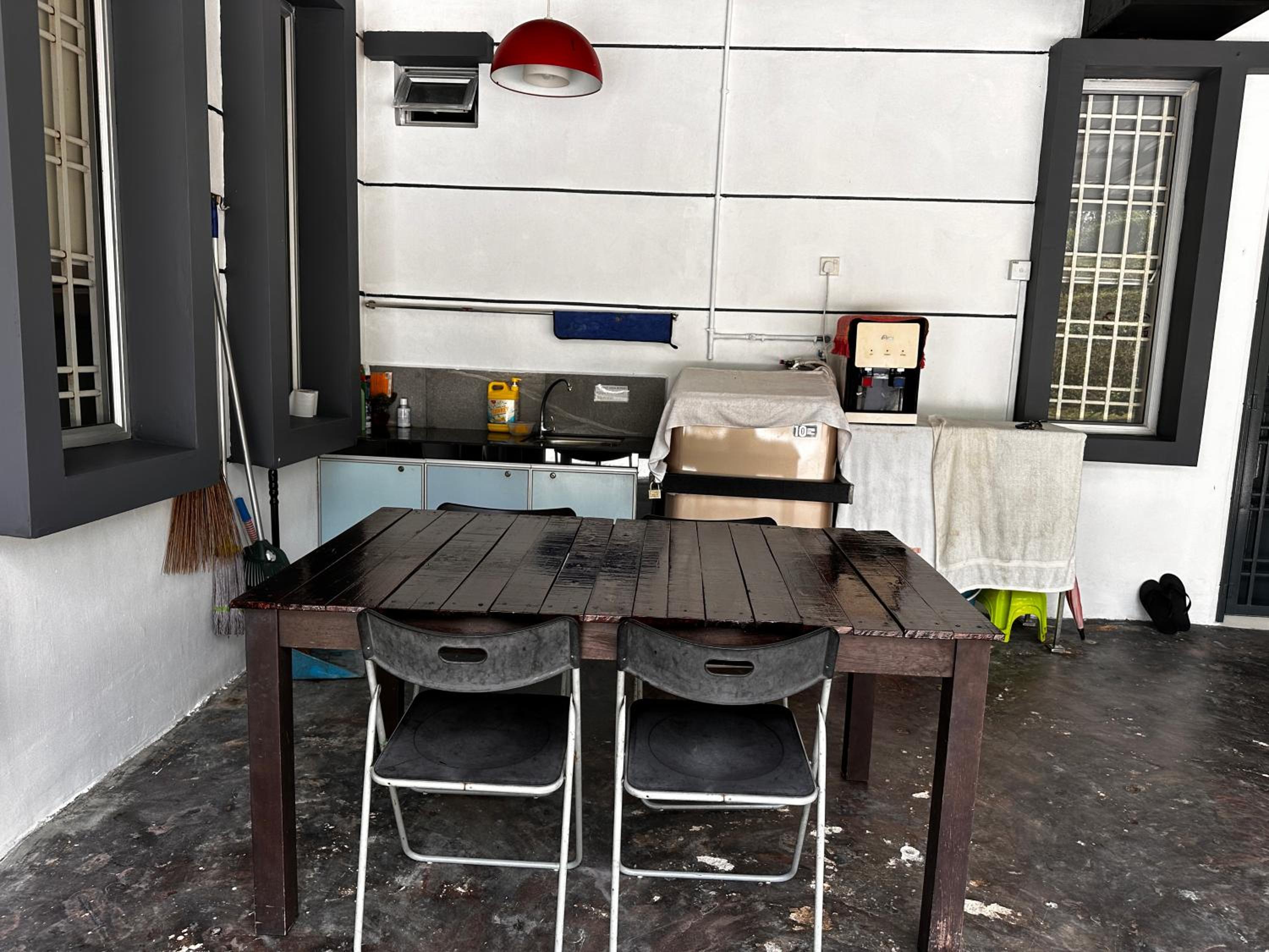 Relaxing Environment: Enjoy the garden, outdoor dining area, and shared lounge for a peaceful stay.