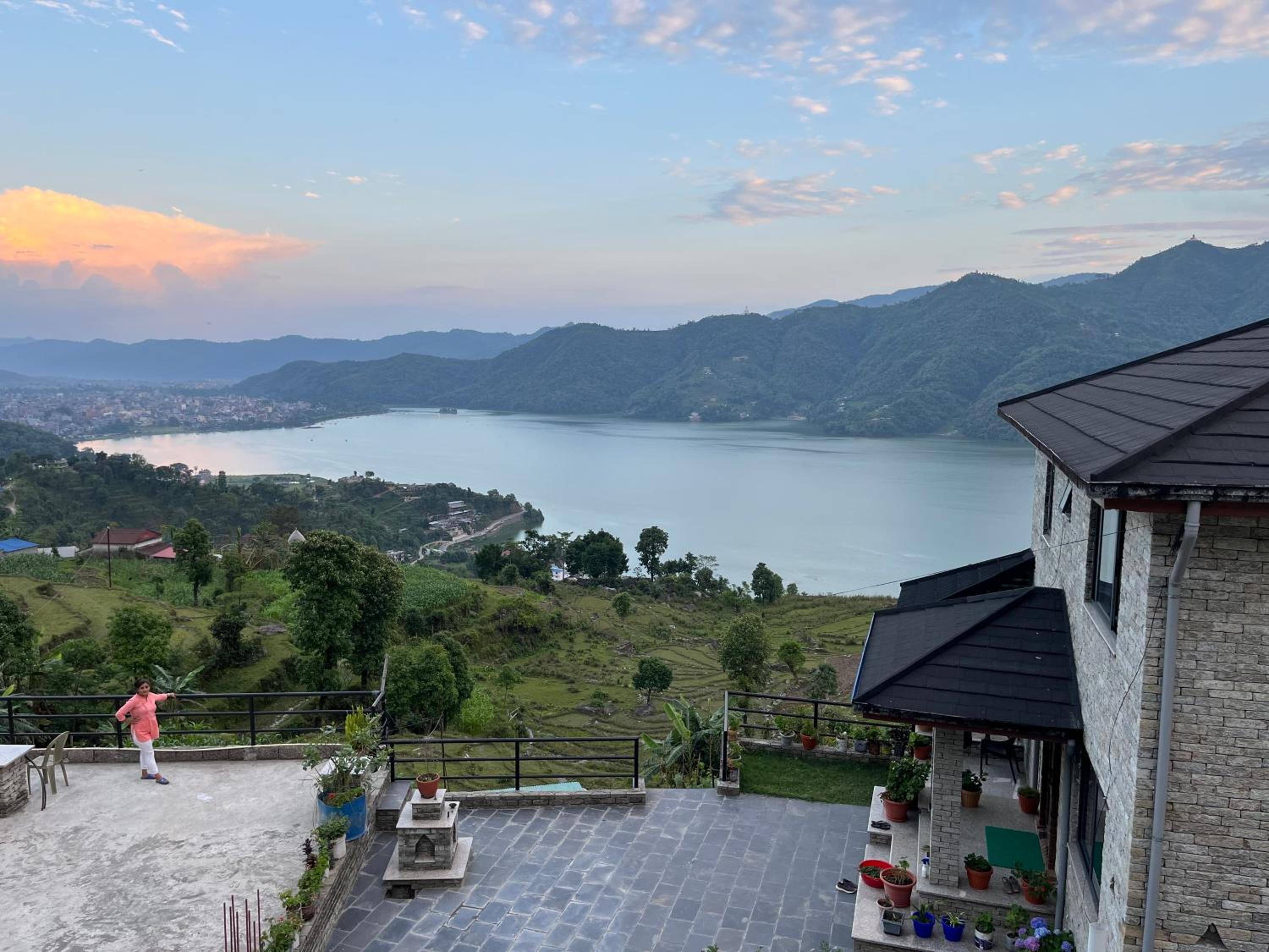 Peaceful and quiet location with fantastic views of Phewa lake and the surroundings of Pokhara. Beautiful house and garden with high quality installations, delicious home cooked organic food. More importantly, pure and genuine Nepalese hospitality and generosity from warm hearted Raju and Sharada.