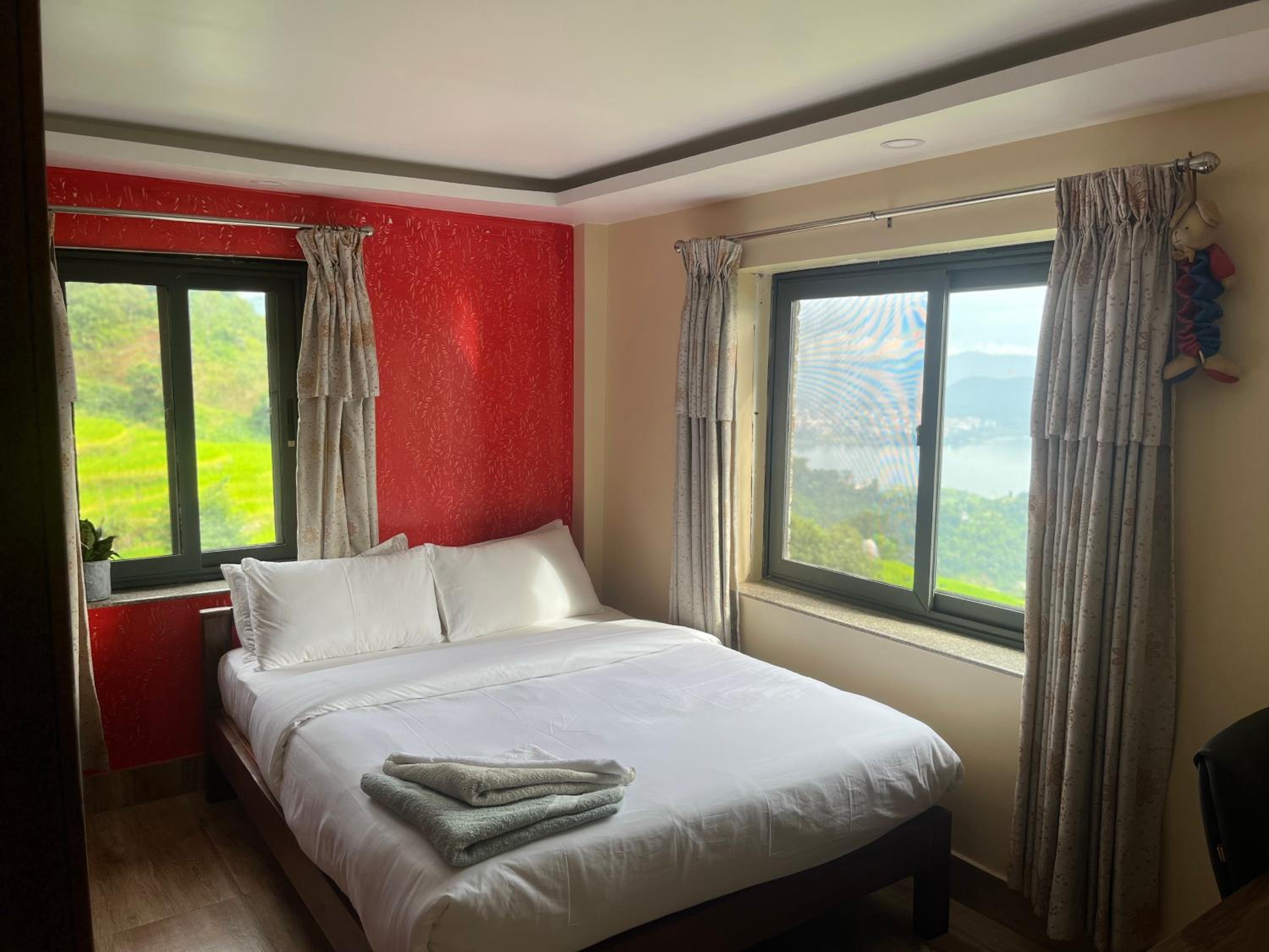 If you've ever wondered what paradise looks like, you can experience it here! This place is exceptionally beautiful and peaceful—a perfect escape from the hustle and bustle of the city, making you feel as if you've stepped into another dimension. Every morning begins with a breathtaking view of Phewa Lake, the mountains, and the city of Pokhara. ❤️