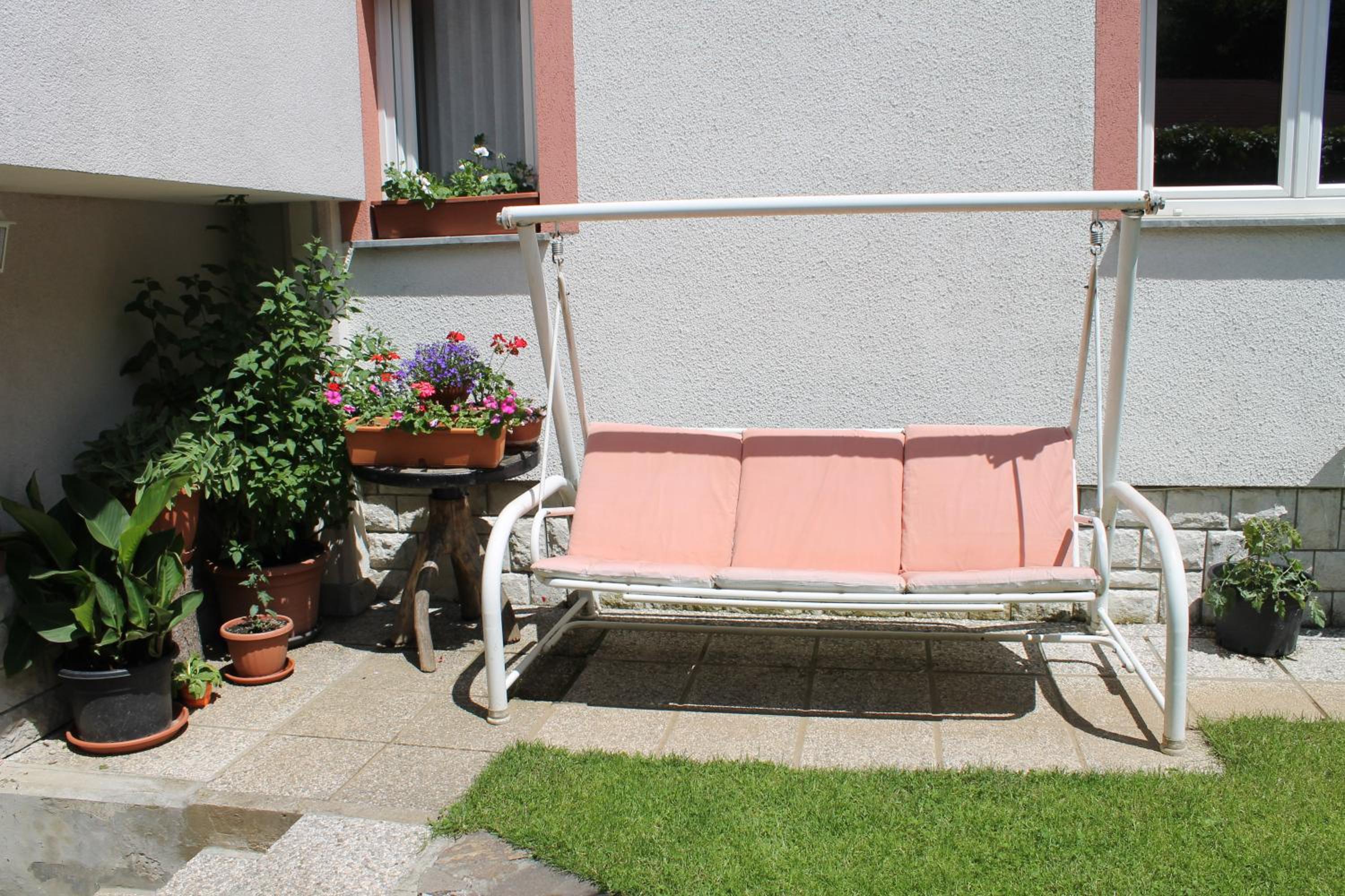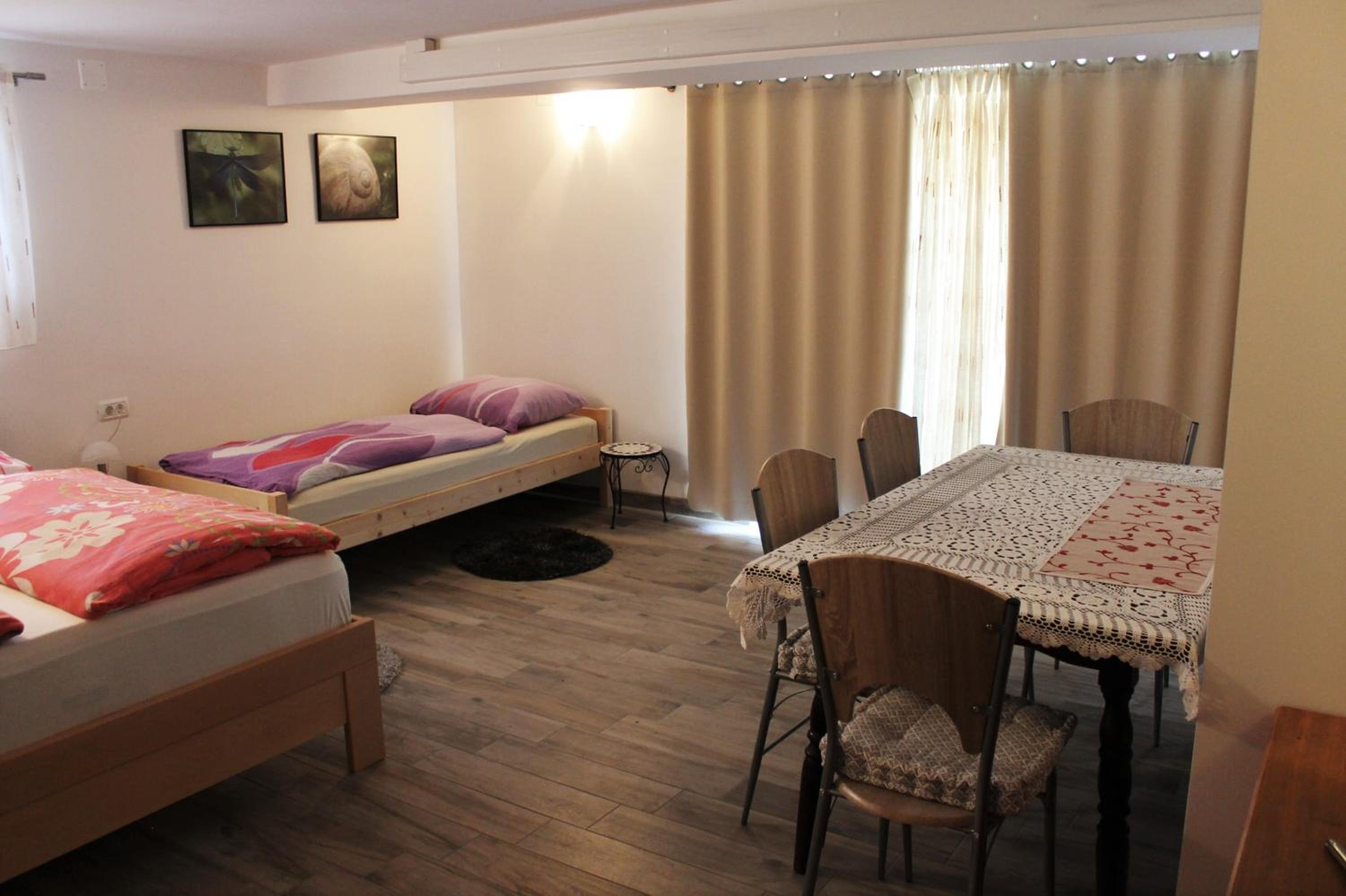 Serene Garden Setting: Escape to Rooms Jurca, a peaceful retreat just steps away from the bustling center of Postojna. Relax in our lush garden, complete with a cozy seating area and convenient barbecue facilities.