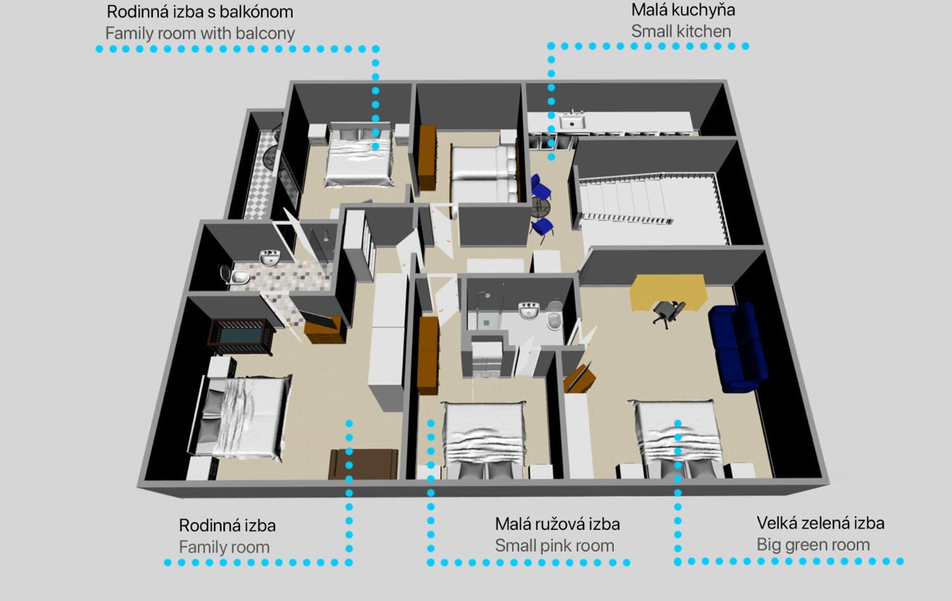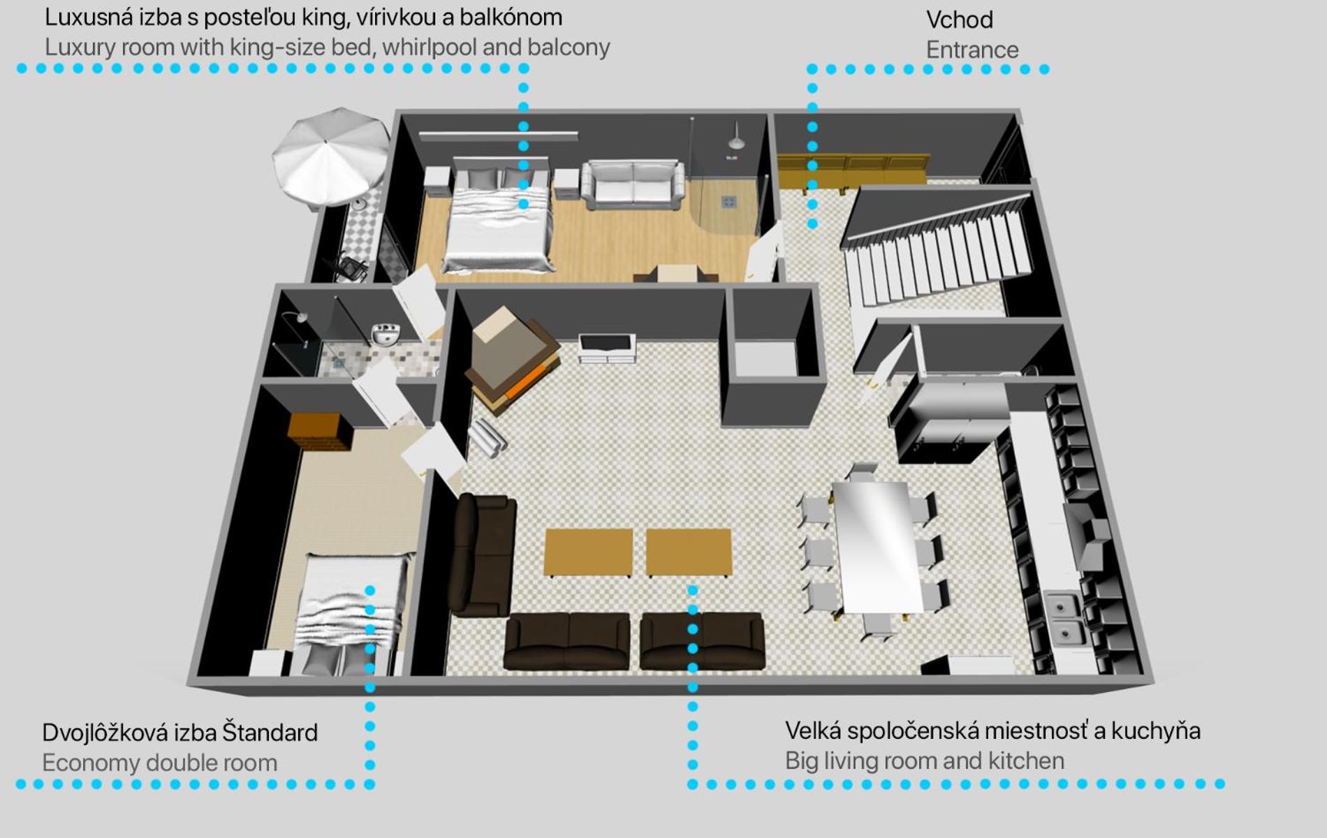 Majitelia boli veľmi milí, starostliví a ochotní. Ubytovanie odporúčam pre tých, ktorí cestujú ako jednotlivci (na služobnej ceste), ale aj pre skupiny - firemné, rodinné alebo priateľské stretnutia. Kuchyňa s obývačkou sú priestranné, vmestí sa tam kopec ľudí, dá sa využiť aj vonkajší areál. Ubytovanie veľmi pekné, cítila som sa tam veľmi dobre.