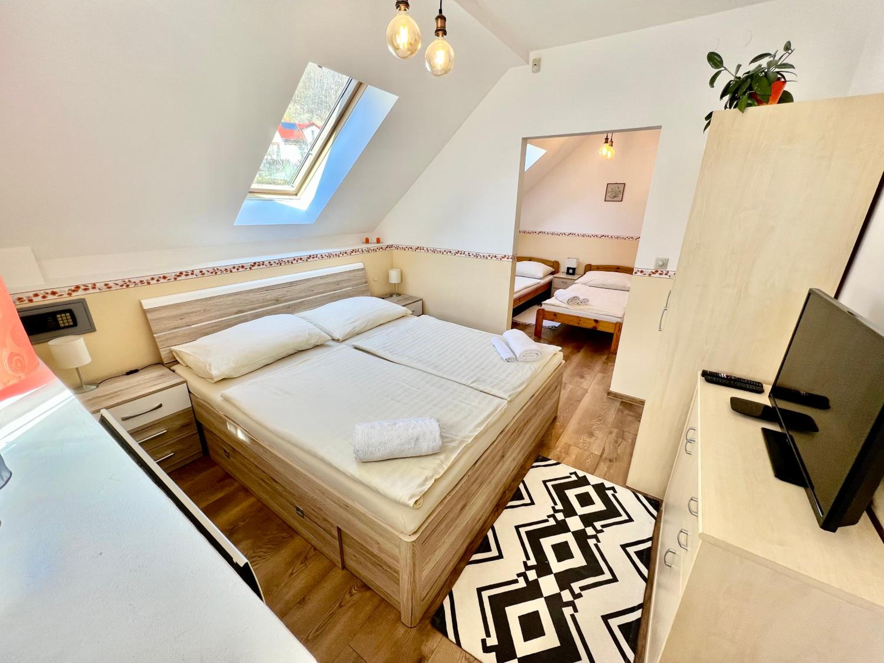 Privát Adriana, nestled in the historical town of Kremnica, offers a picturesque retreat surrounded by the stunning Kremnicke Mountains.