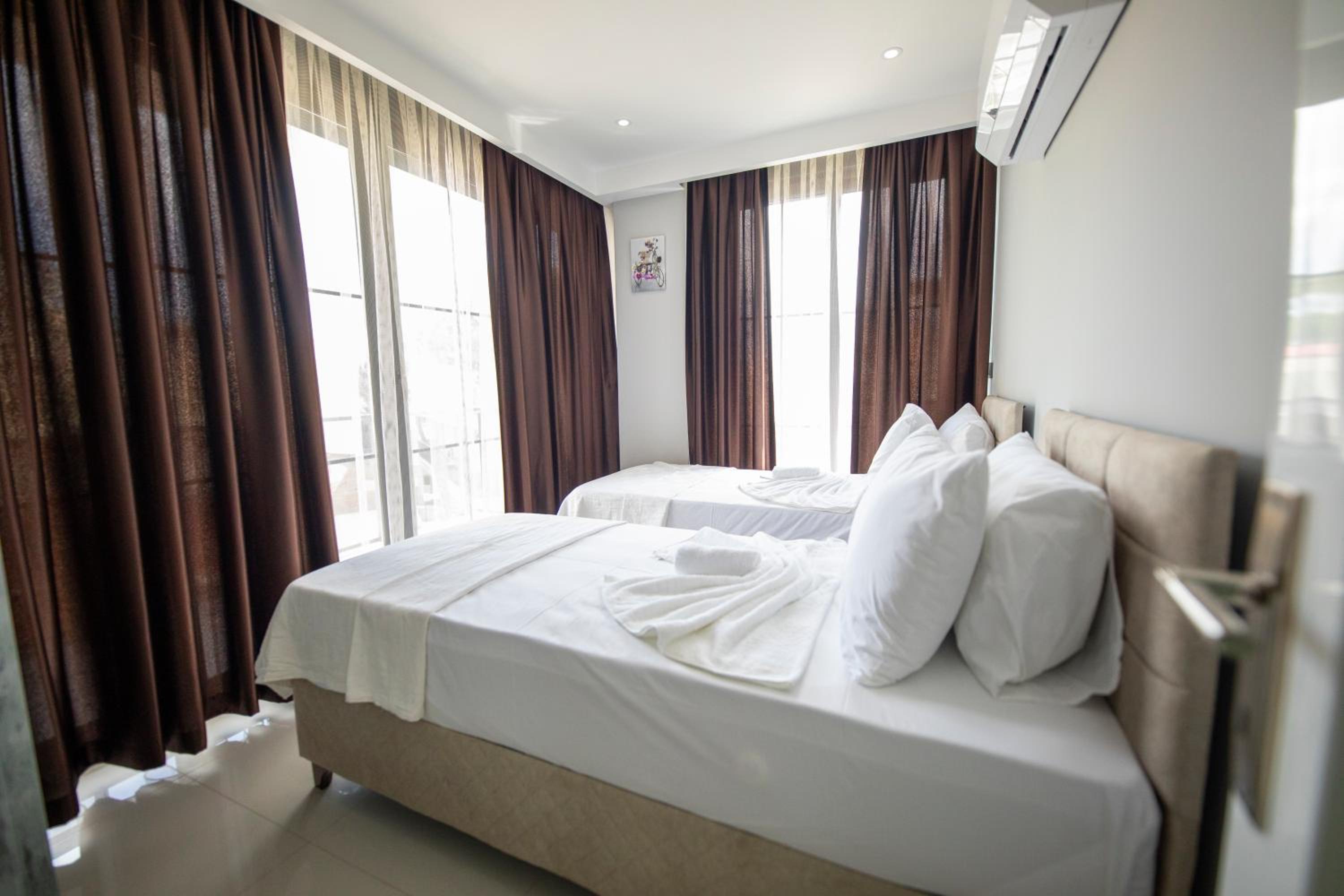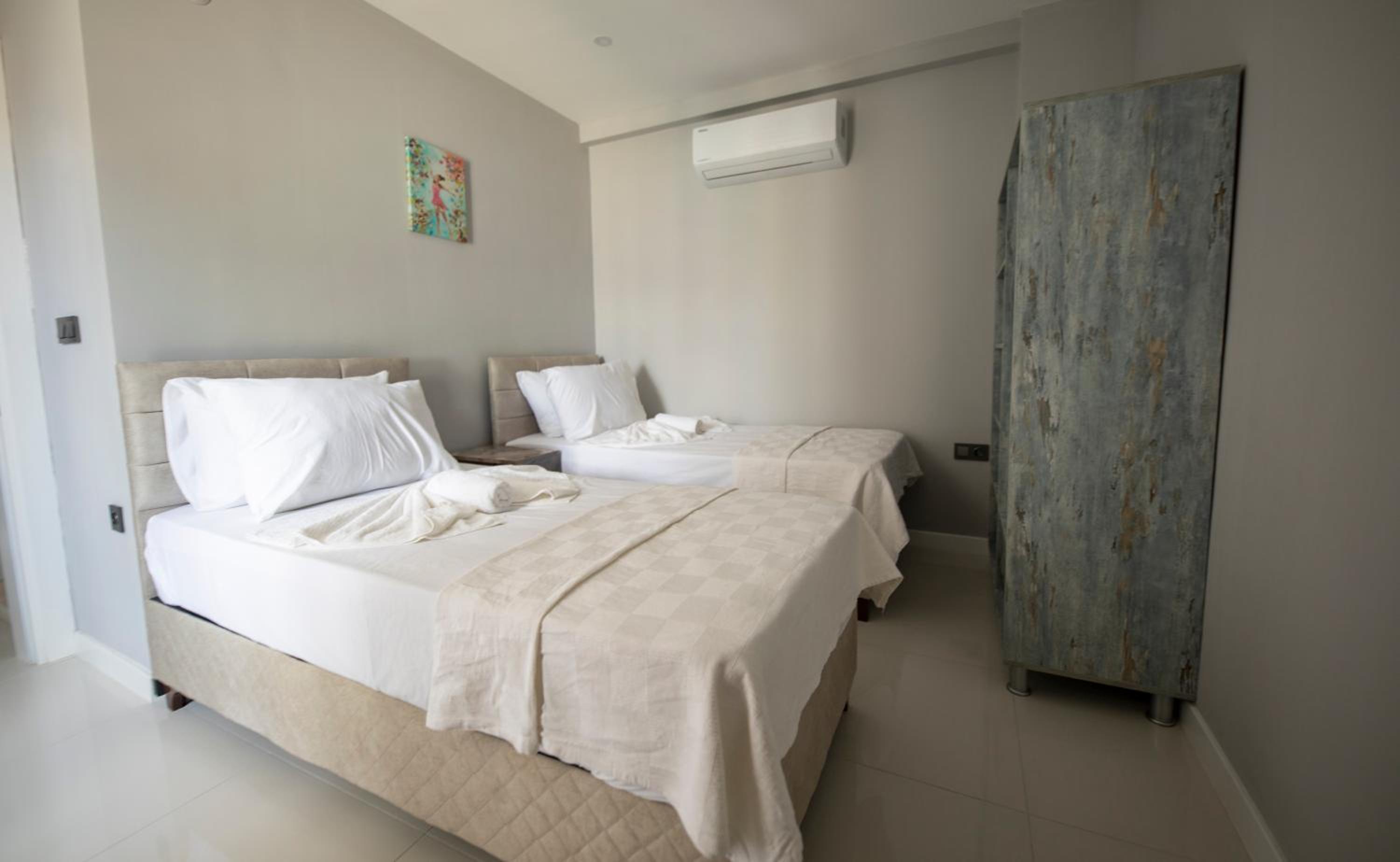 Location was excellent. The owner yener, a very nice man, was always on hand to help and answer any questions (by the way, he likes a whiskey lol} The apt was very clean. The air con in every room was very good. Towels and bedding was changed as and when required. The beds were comfortable. His office girl/cleaner was a little treasure. She came in every day and cleaned up, even putting our dirty laundry in the wash. The area was very quiet and we were never disturbed by any noise. Would I come back. Definitely