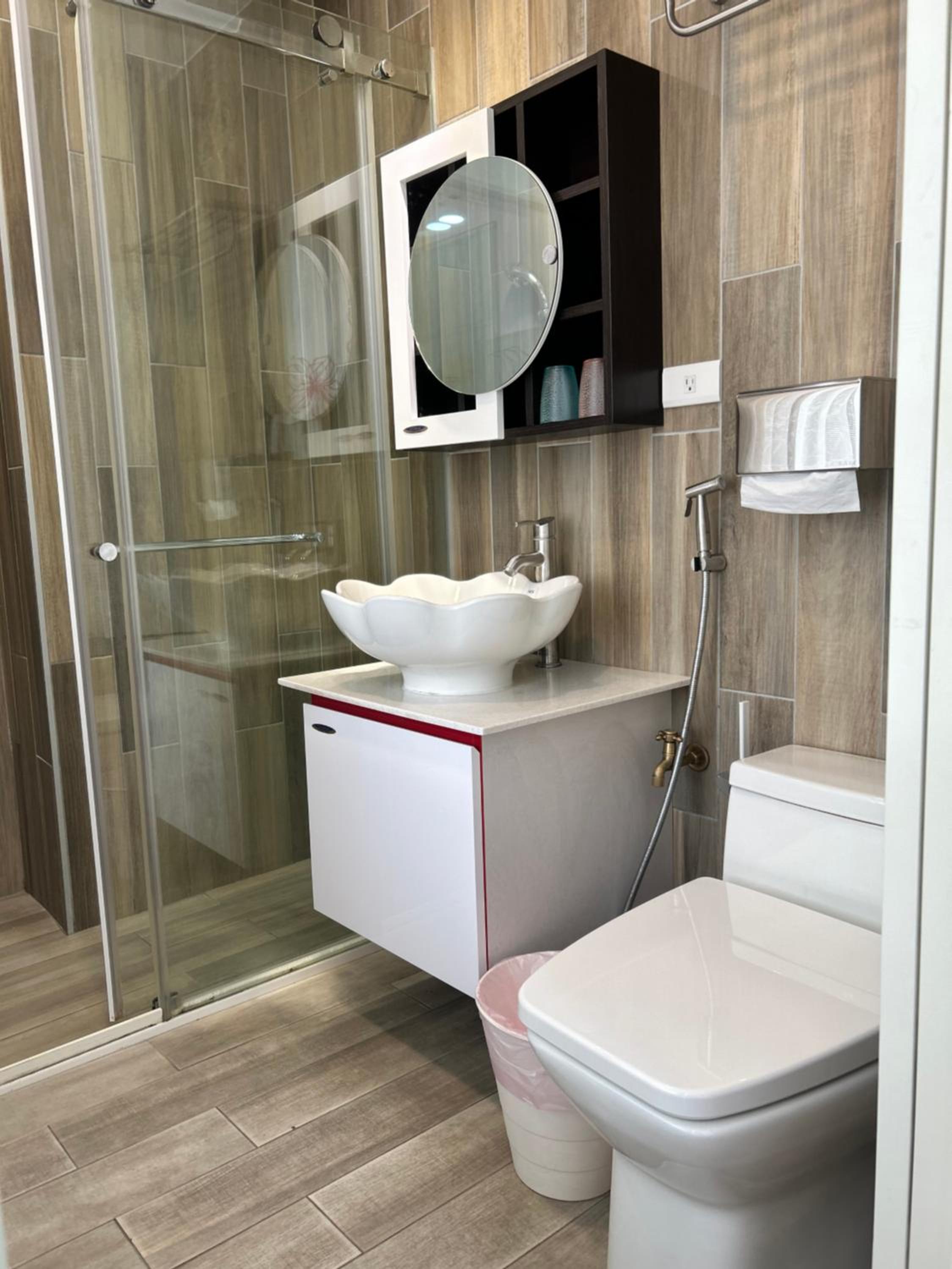 The space of Shower room is kind of compact.
