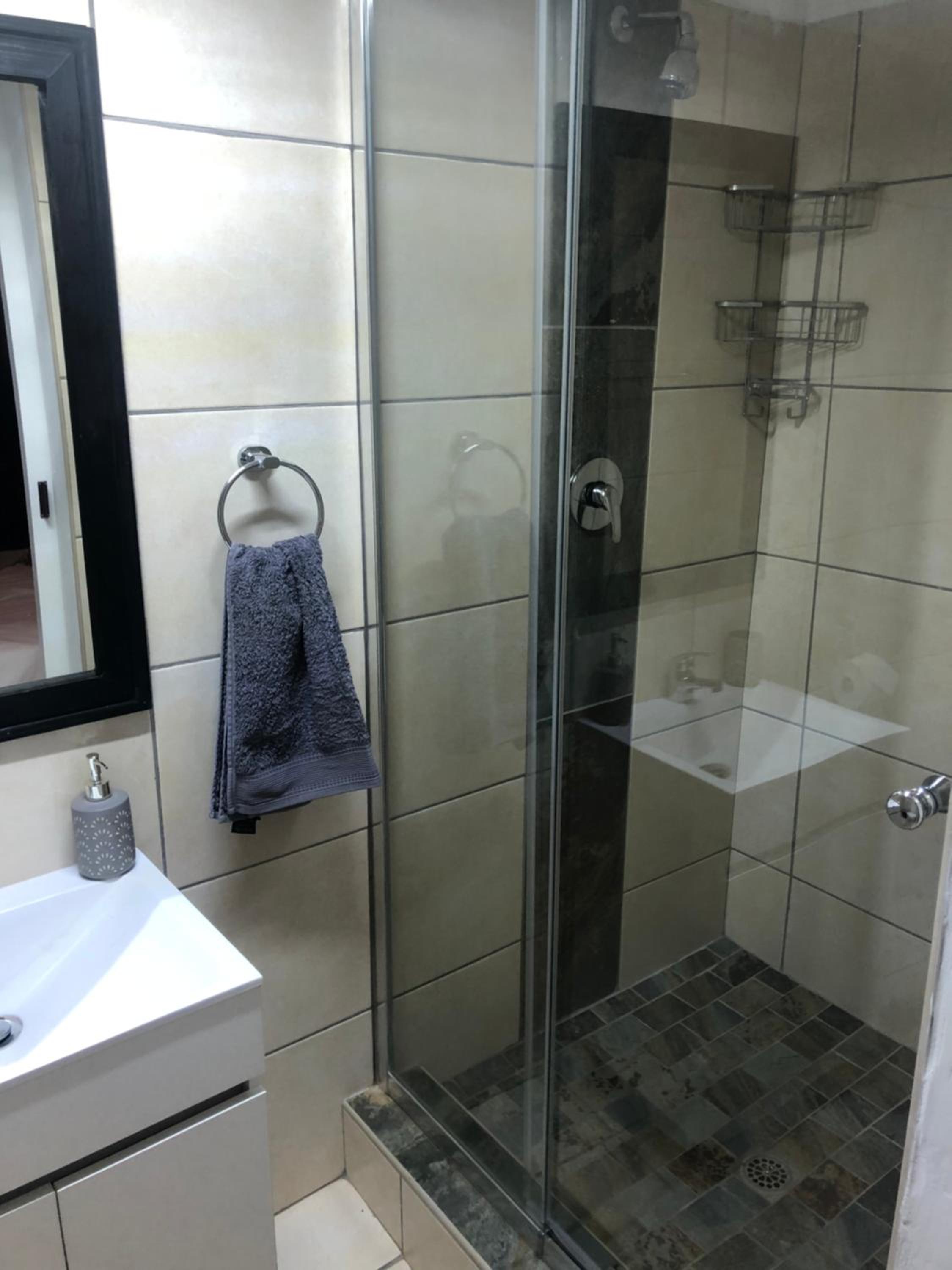A little cramped and short on shelf space for 2 people. A shelf near the basin for toiletries would be useful.