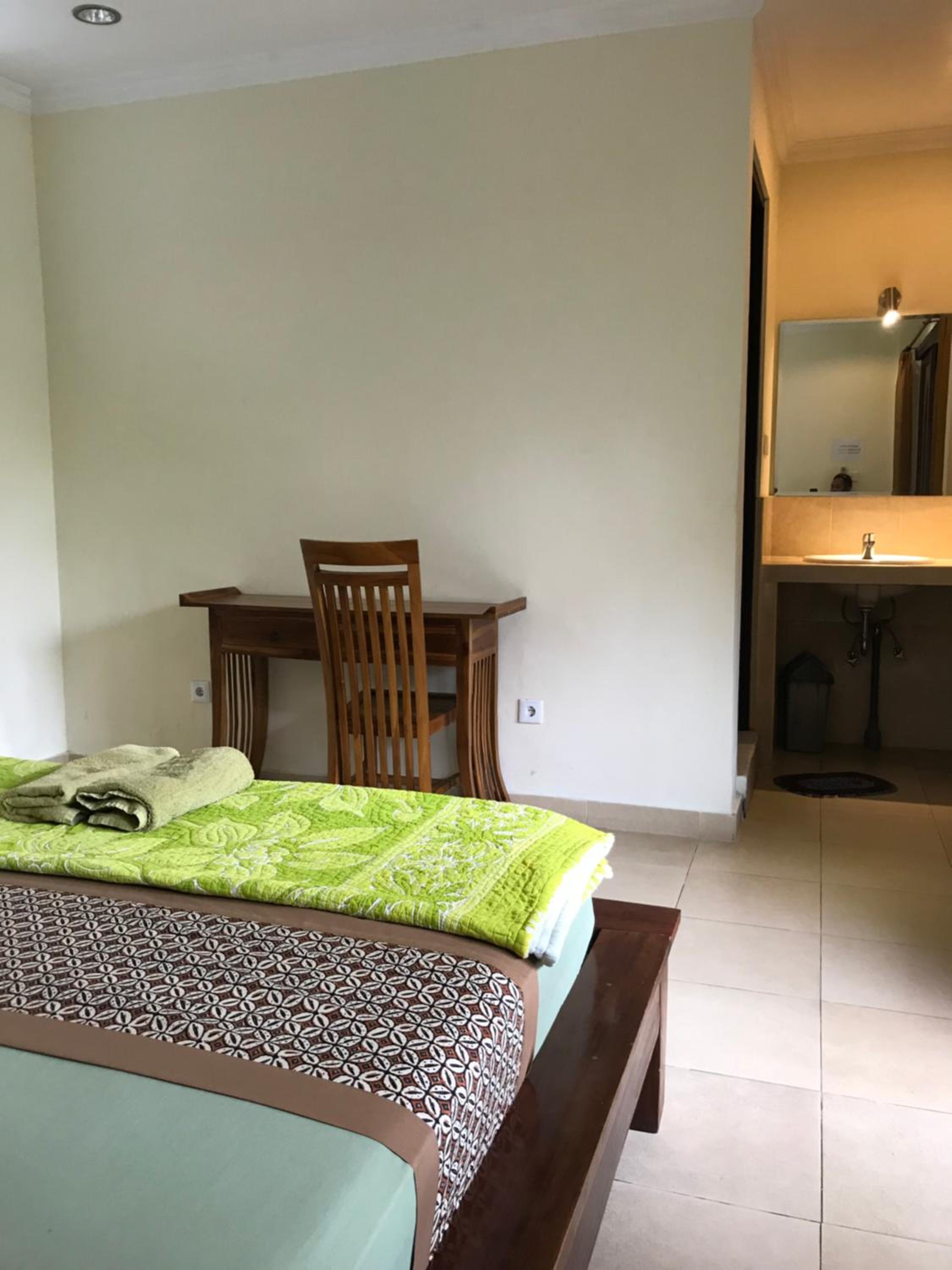 Room was very large and clean. There was AC in the room which worked very well. The bungalow was located in an enclosed villa, giving privacy from the traffic of Ubud. Location was near many of the popular spots in central Ubud.